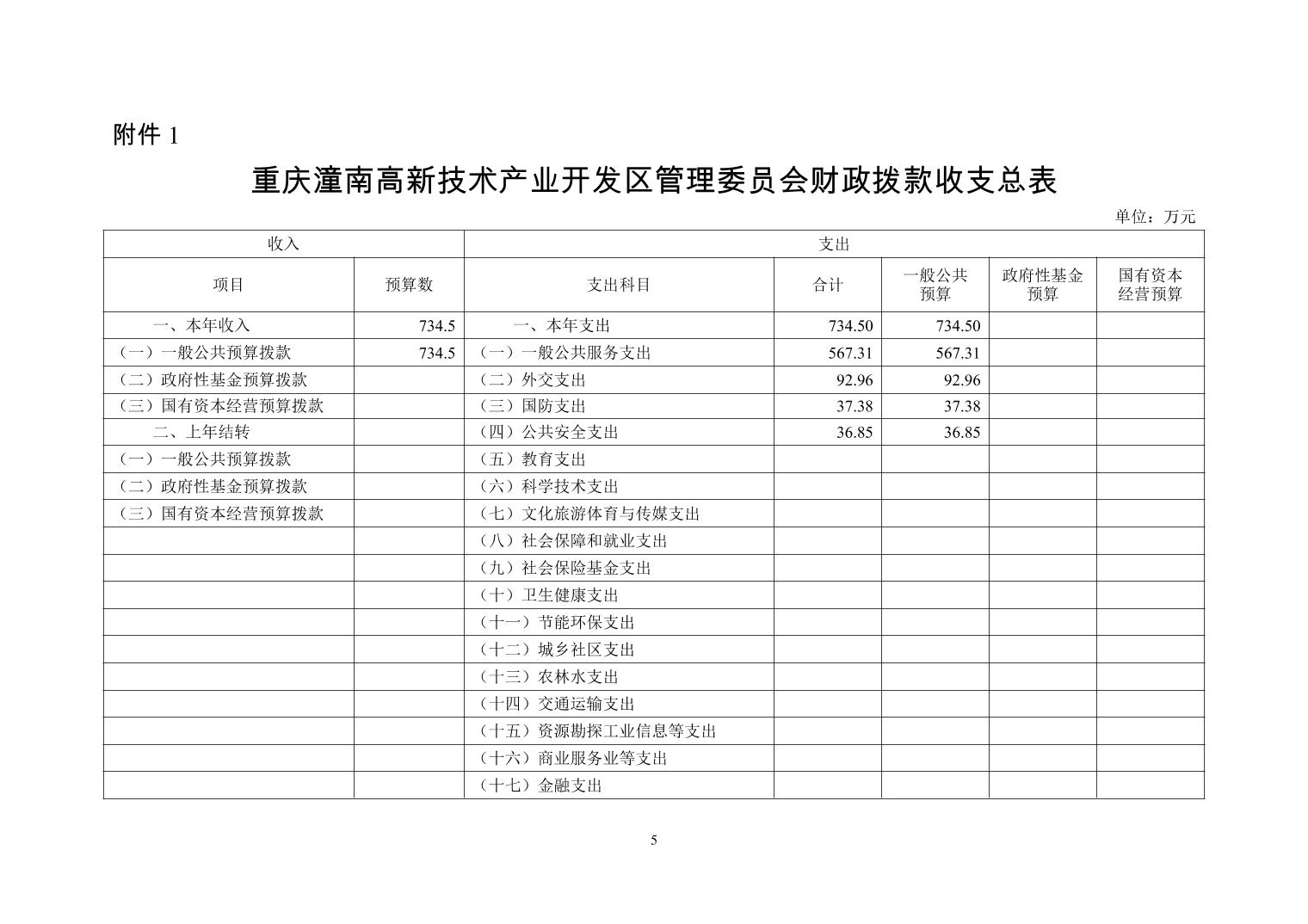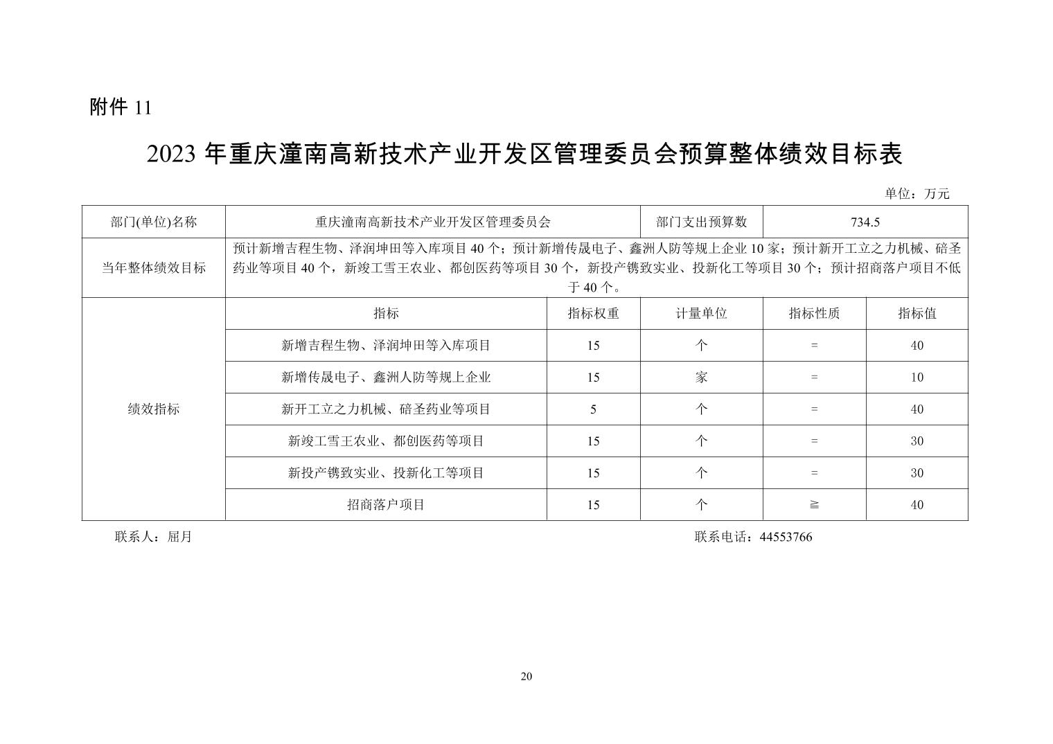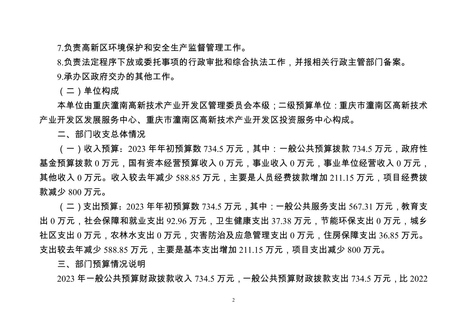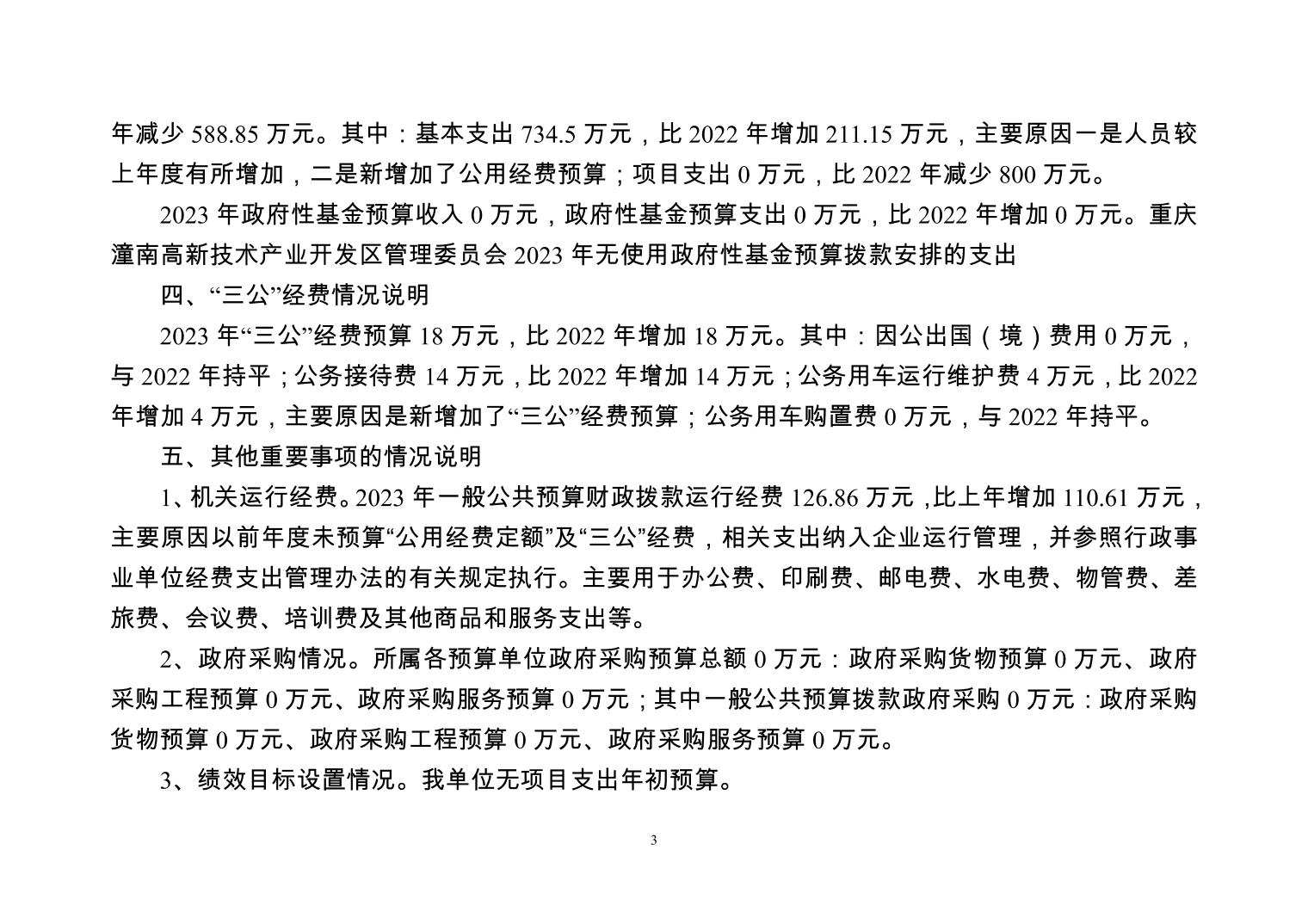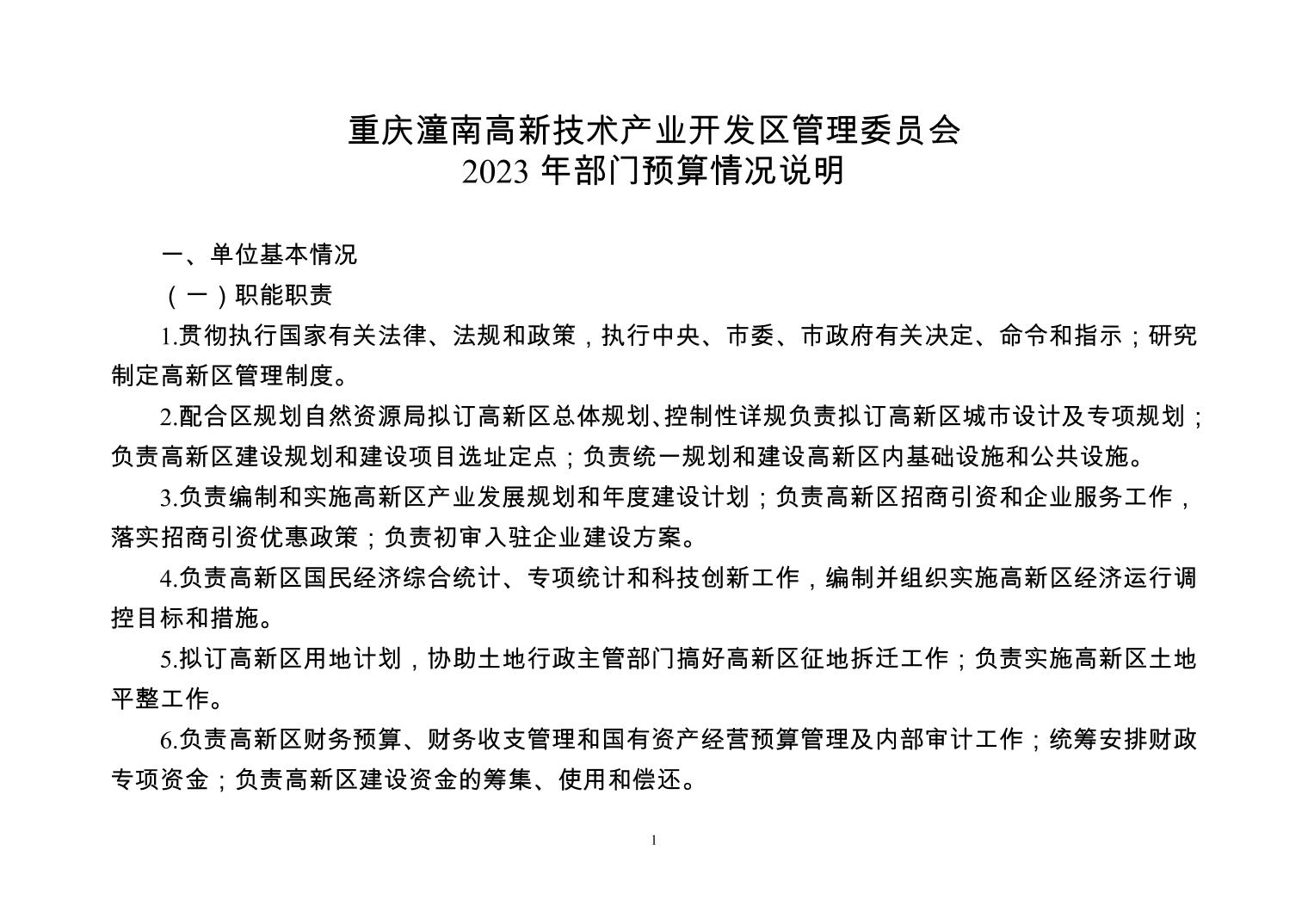 重庆潼南高新技术产业开发区管理委员会2023年部门预算公开