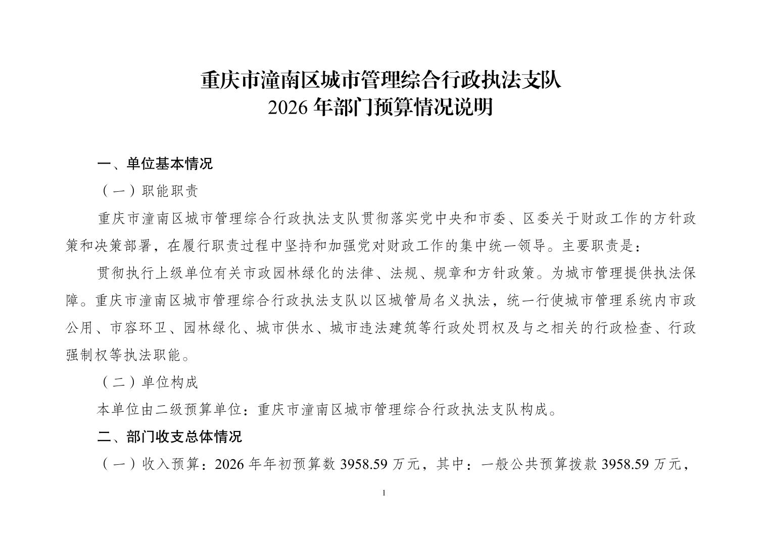 重庆市潼南区城市管理综合行政执法支队2026年单位预算情况说明.pdf