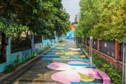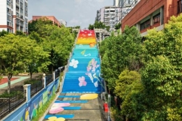 一是“美颜滤镜”下的最美上学路。连日来,16台冲洗车为城区中小学周边道路做足“深度清洁”,65名环卫工人不仅清走33公斤暴露垃圾、50余处“牛皮癣”,更把果皮箱、公交站台擦得锃亮。园林师傅们则化身“理发师”:修剪8.6万平方米草坪、清理2400平方米杂草,为680余株行道树“理发”,并细心拔掉树干上的铁钉120处——让这些可能划伤孩童的隐患,化作树下安全的绿荫。但惊喜不止于此。在人民小学门口,原本灰扑扑的围墙与地面,被156平方米墙面彩绘、1500平方米地面彩绘覆盖。这些融合了学习、运动、梦想与潼南柠檬的图案,让这条“最美上学路”成了孩子们口中的“彩虹跑道”。