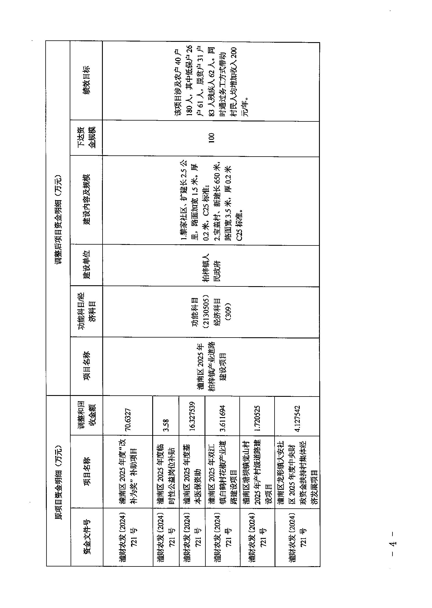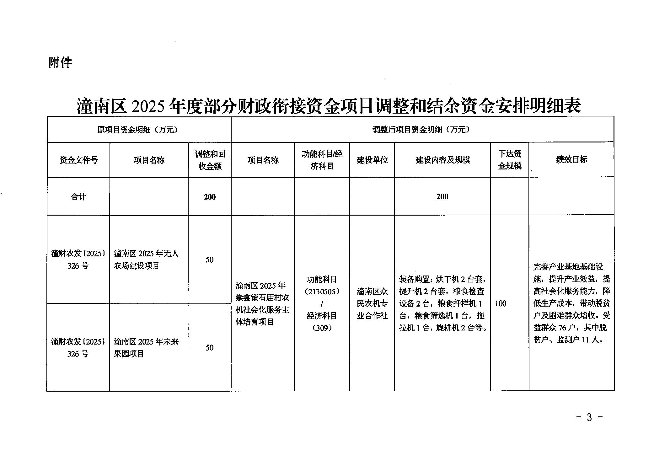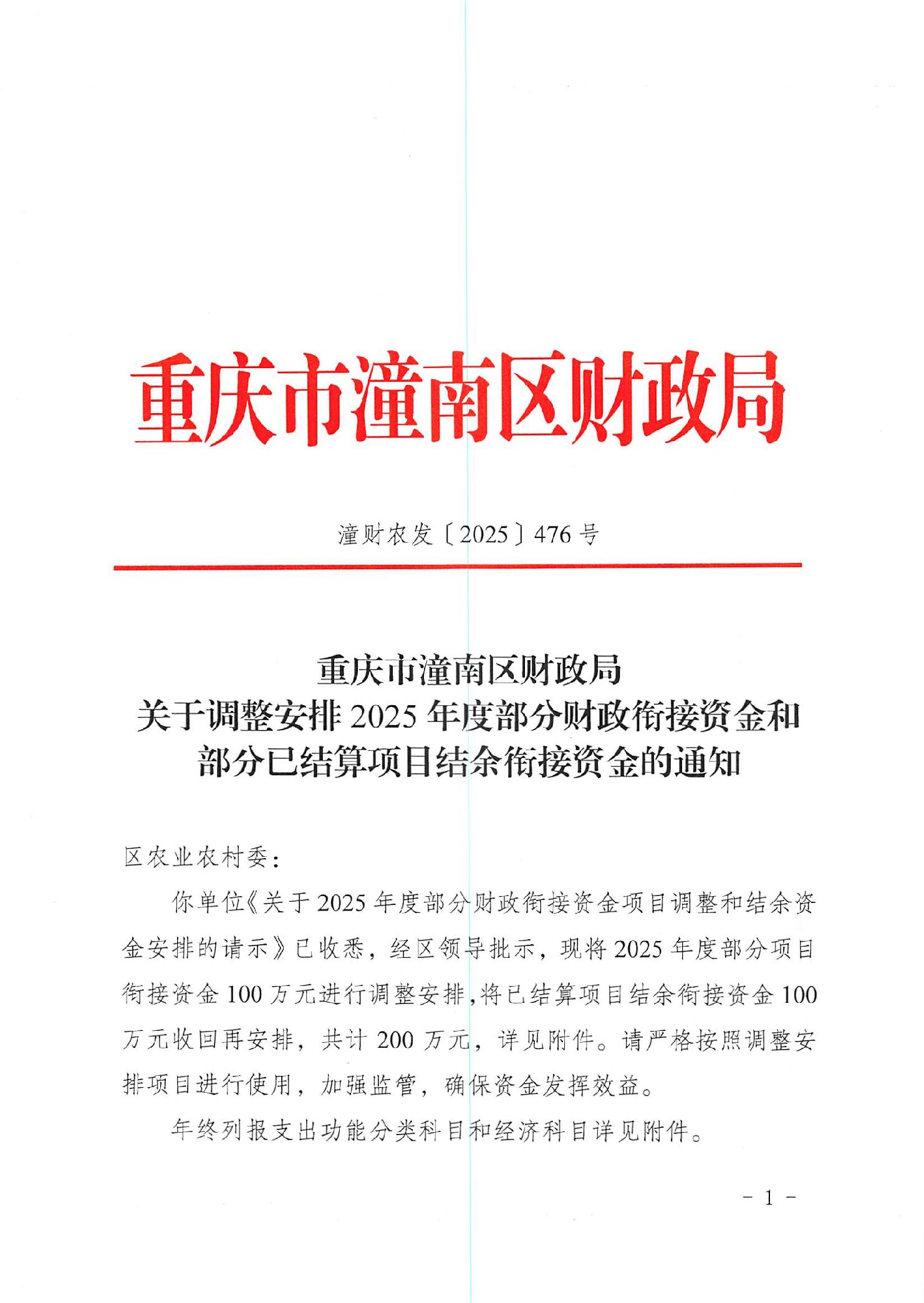 重庆市潼南区财政局关于调整安排2025年度部分财政衔接资金和部分已结算项目结余衔接资金的公示(潼财农发〔2025〕476号)