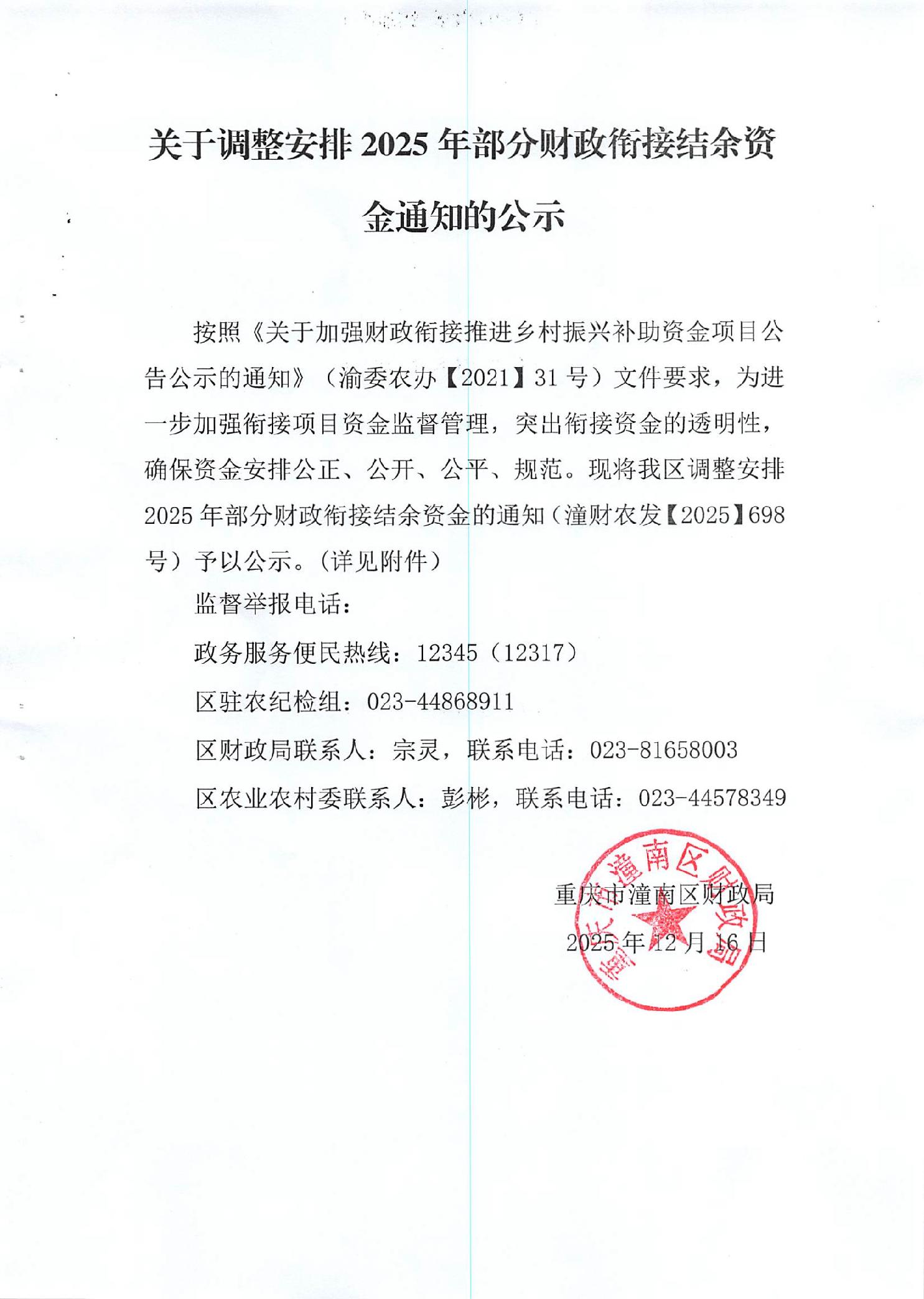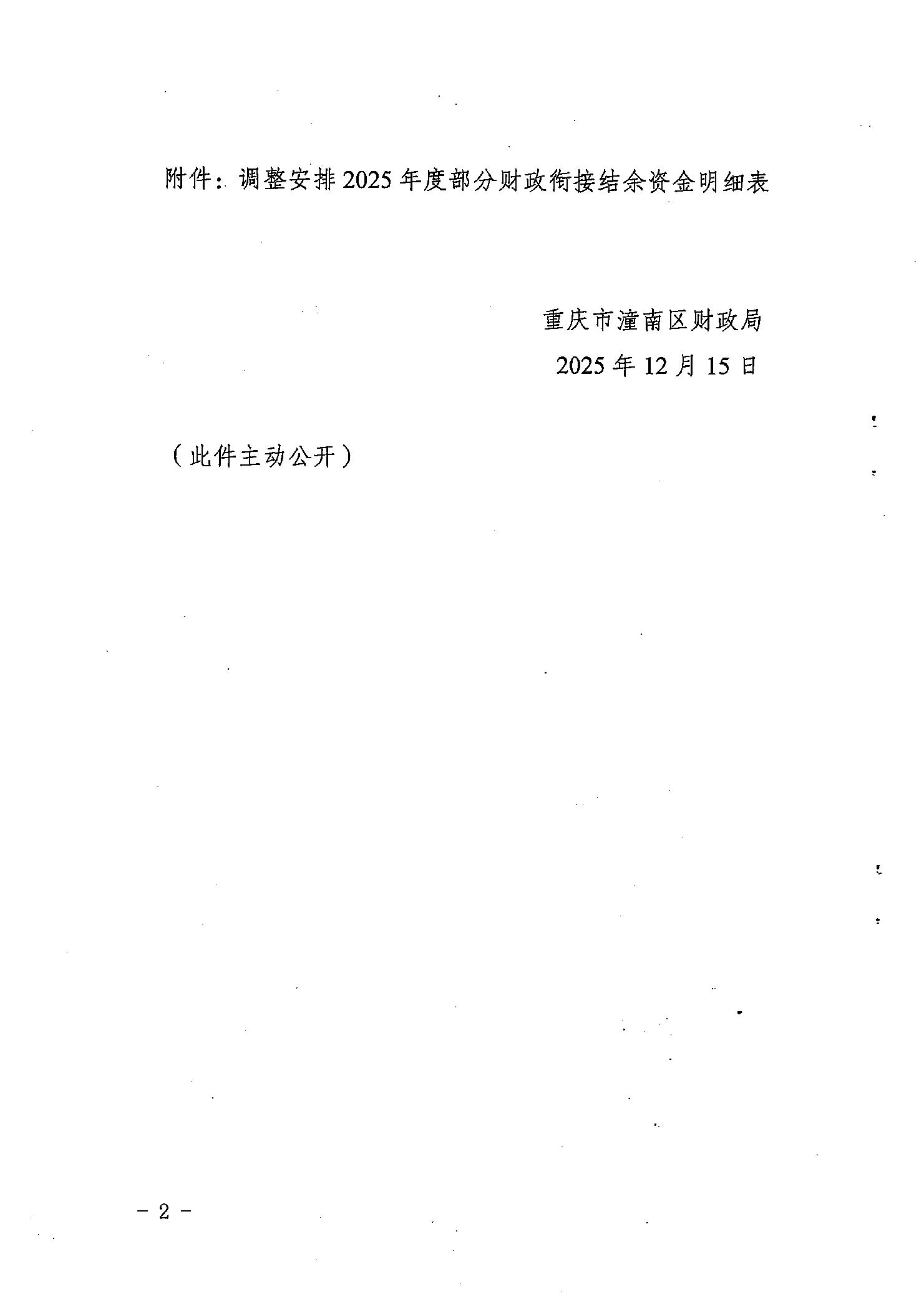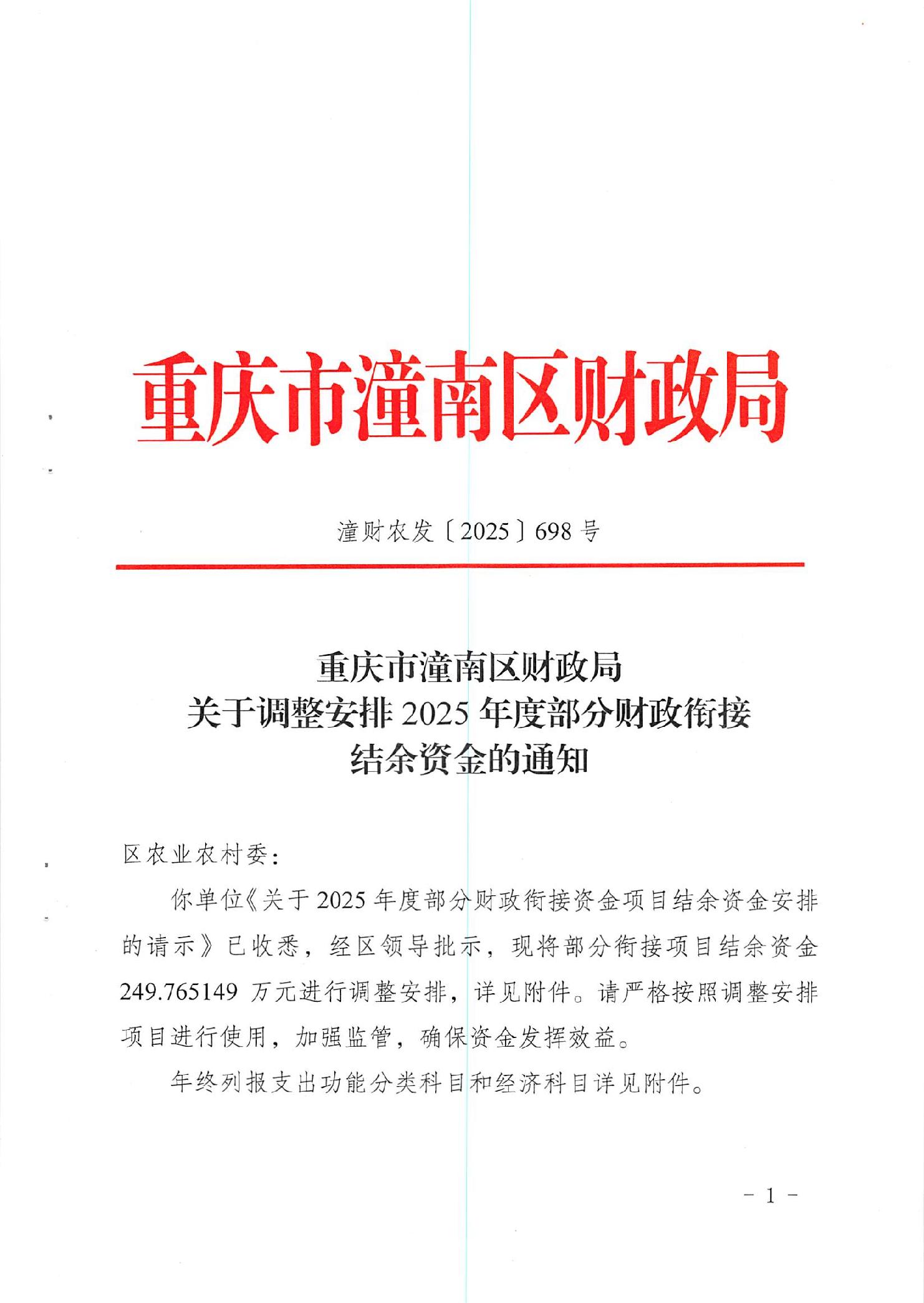 重庆市潼南区财政局关于调整安排2025部分财政衔接结余资金的通知(潼财农发〔2025〕698号).pdf