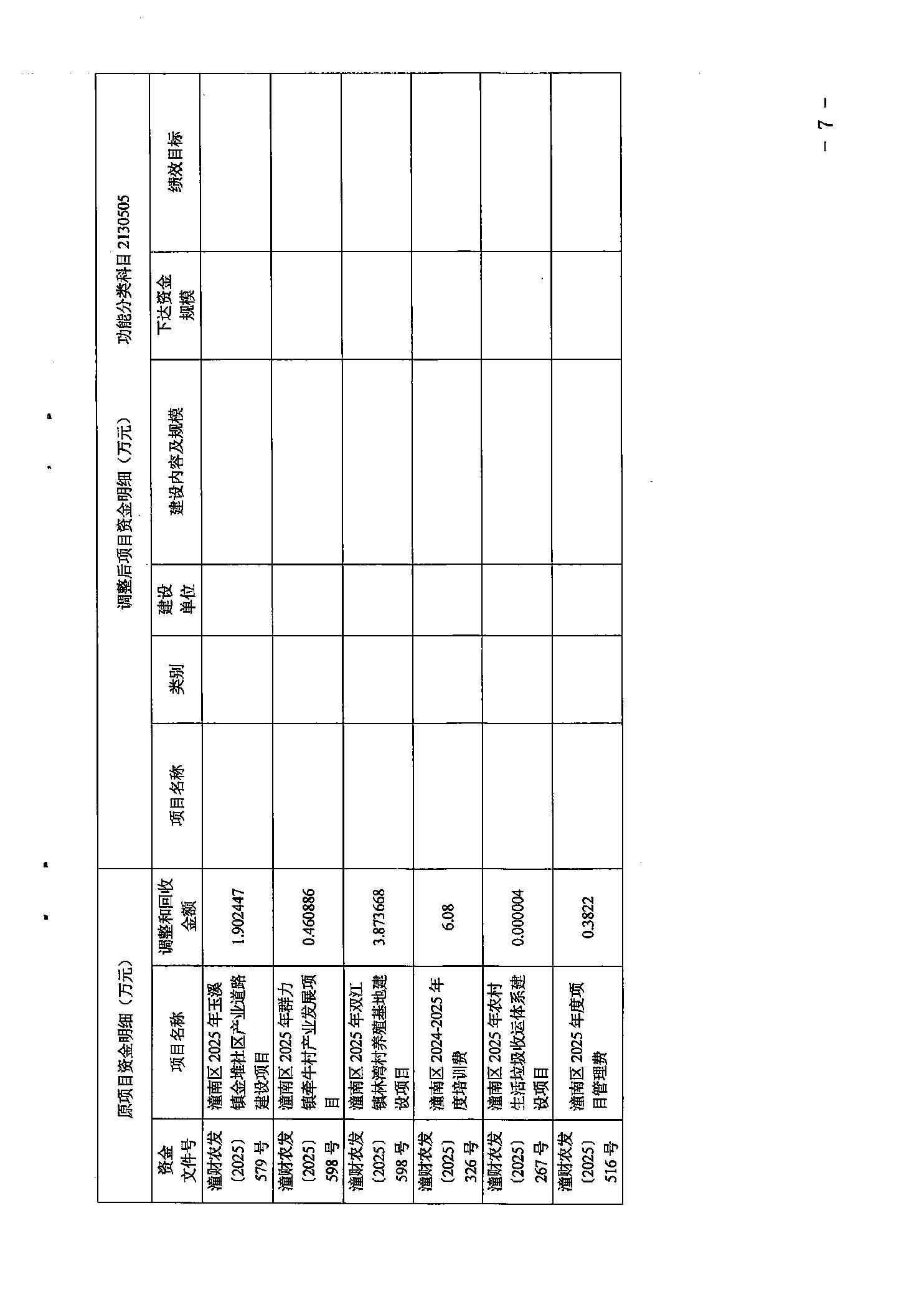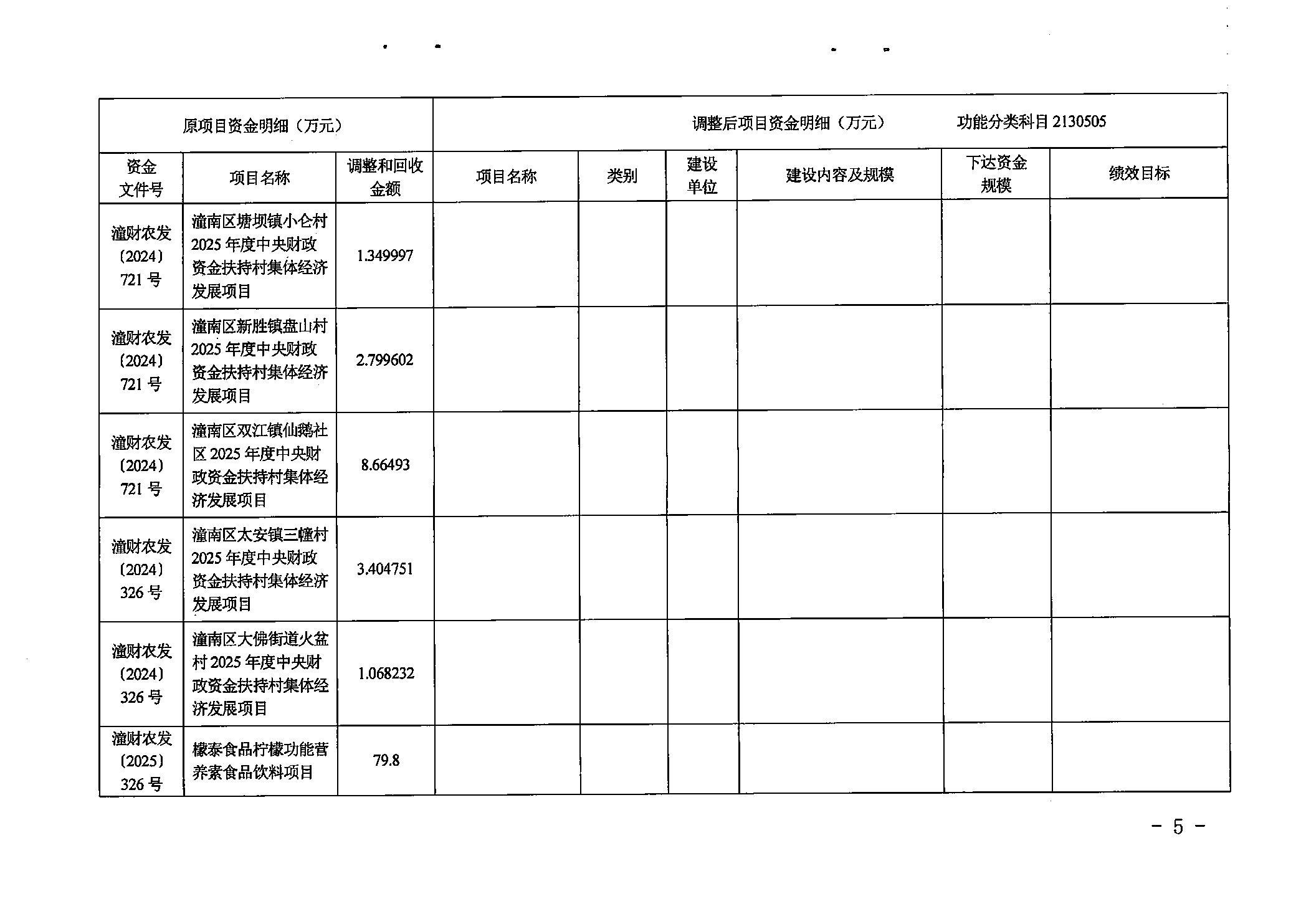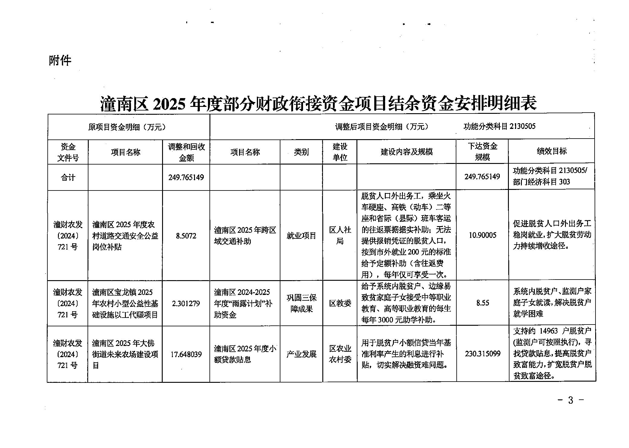 重庆市潼南区财政局关于调整安排2025部分财政衔接结余资金的通知(潼财农发〔2025〕698号)