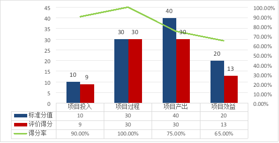 项目效益指标由1个二级指标和4个三级指标构成,标准分值20分,评价得分13分,得分率为65%。