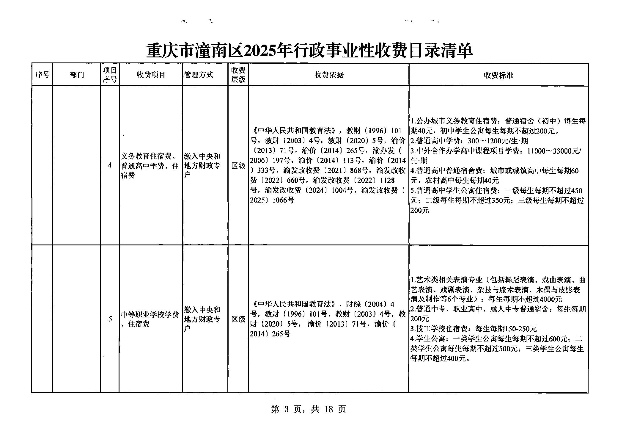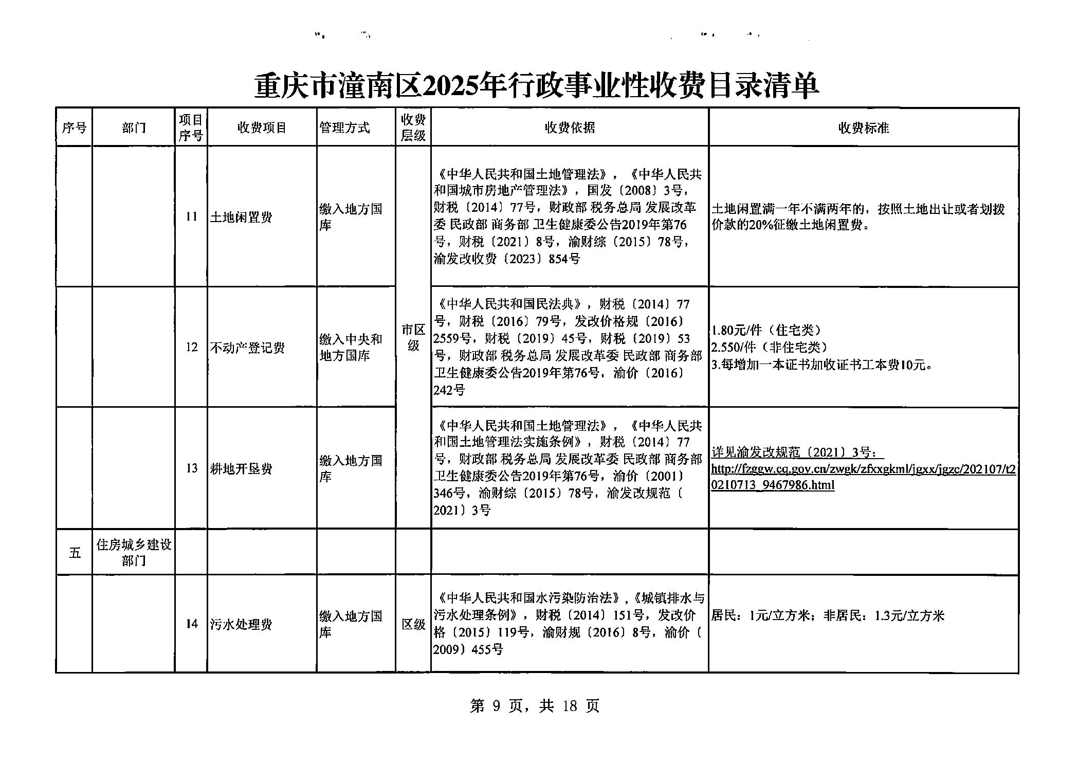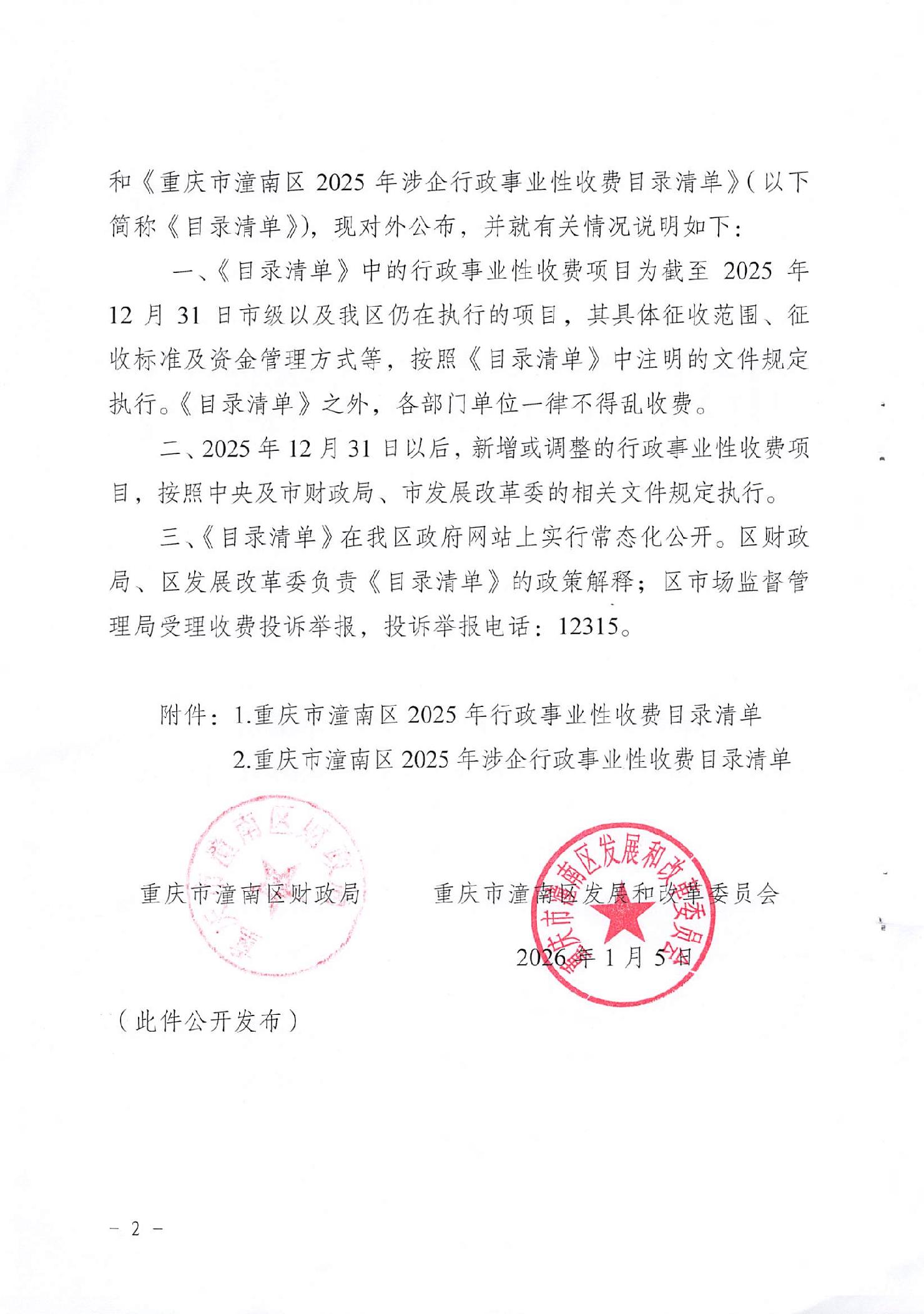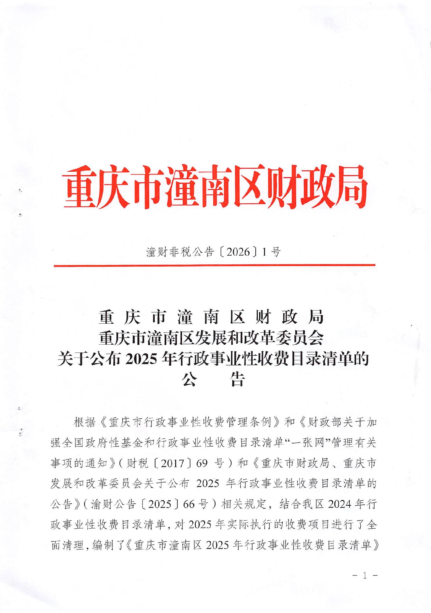 重庆市潼南区财政局 重庆市潼南区发展和改革委员会关于公布2025年行政事业性收费目录清单的公告