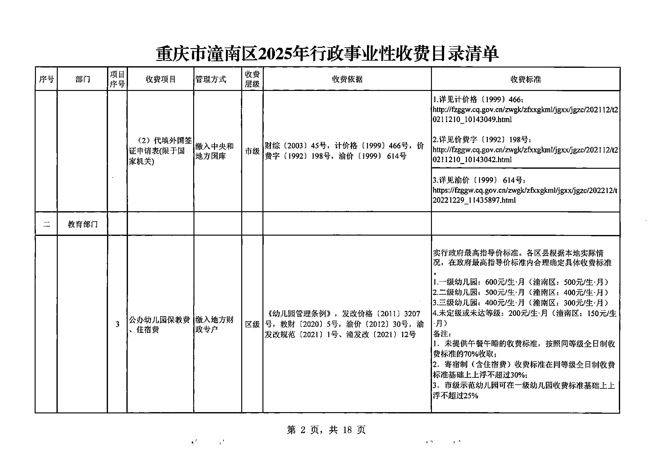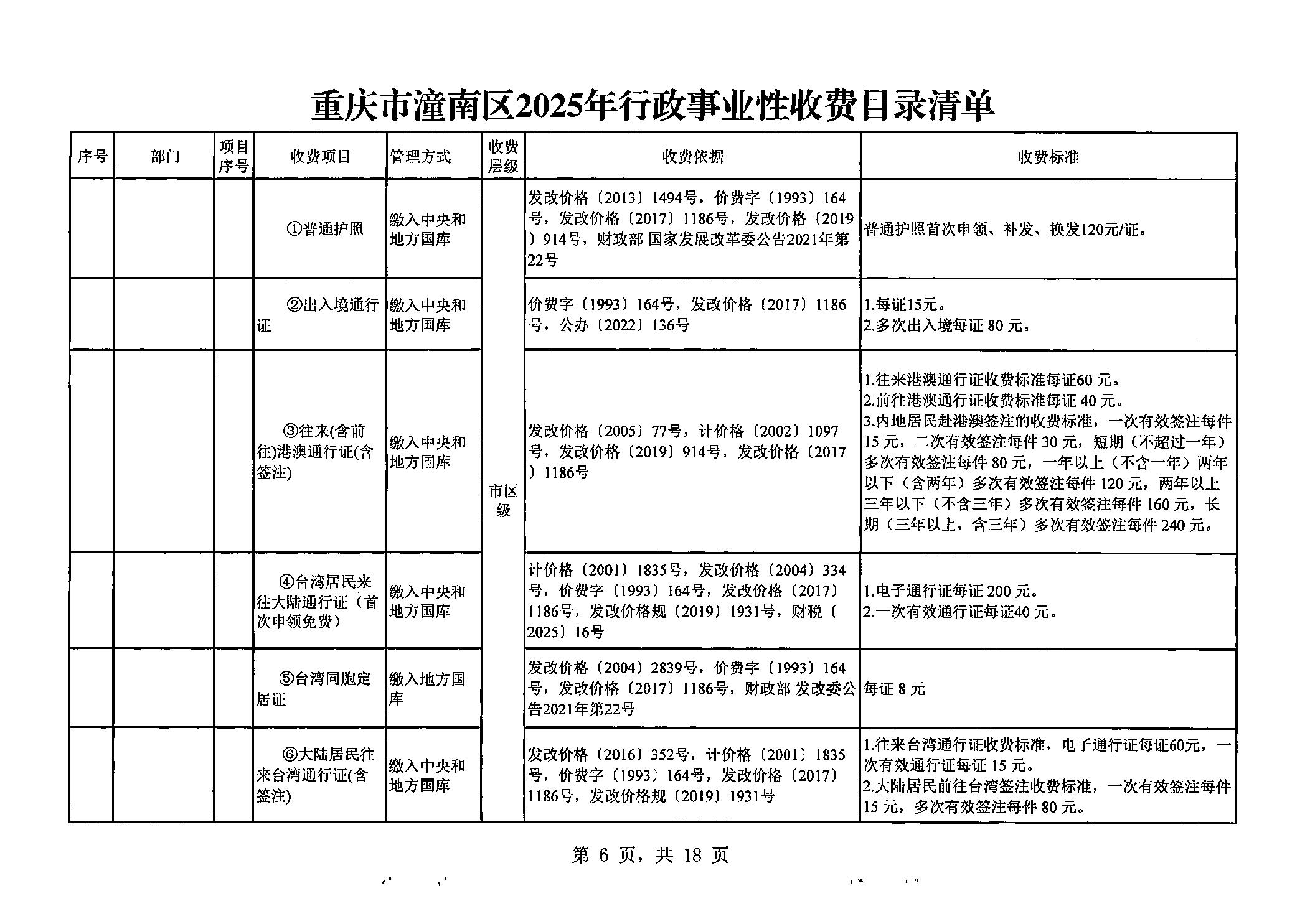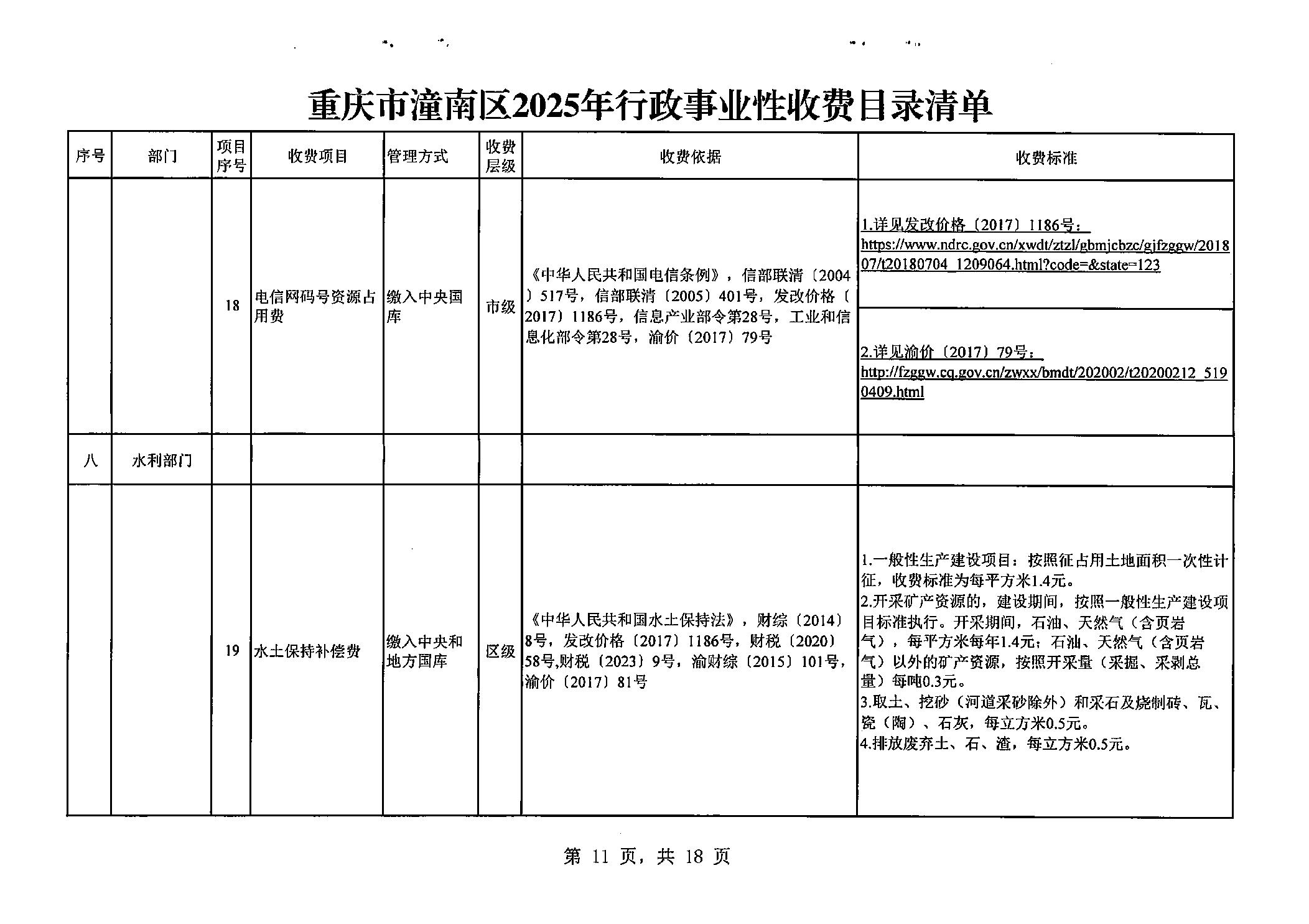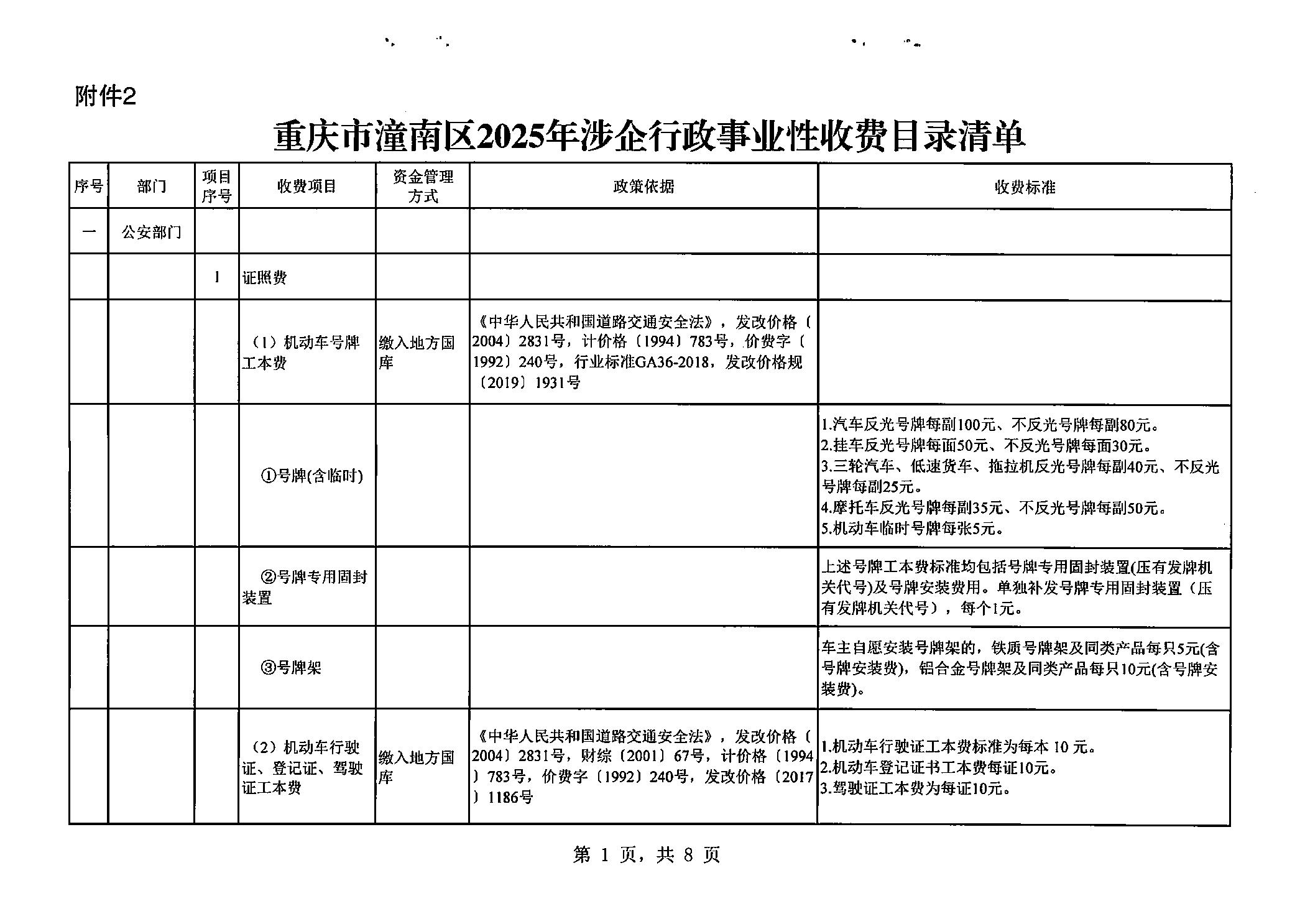重庆市潼南区财政局 重庆市潼南区发展和改革委员会关于公布2025年行政事业性收费目录清单的公告