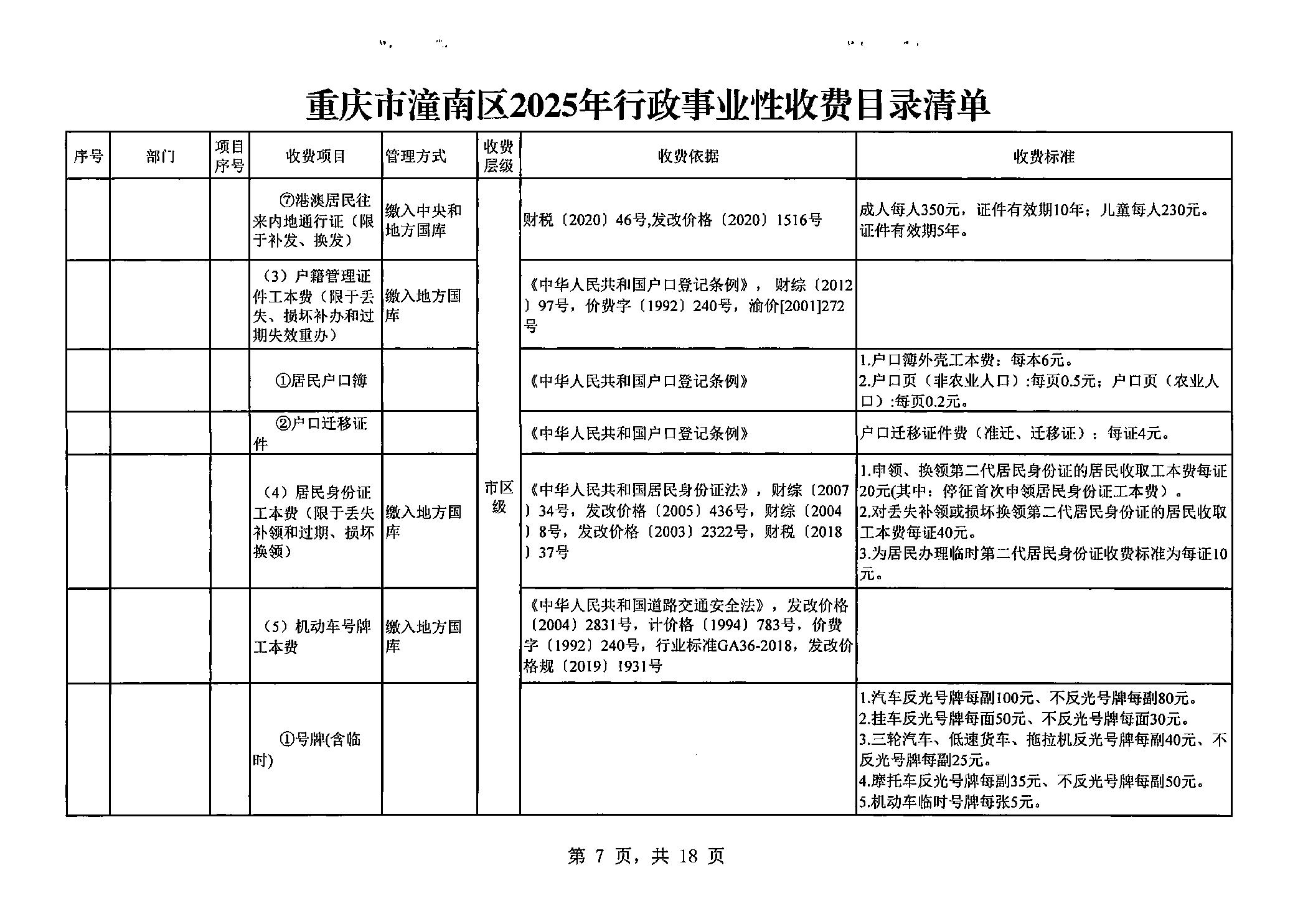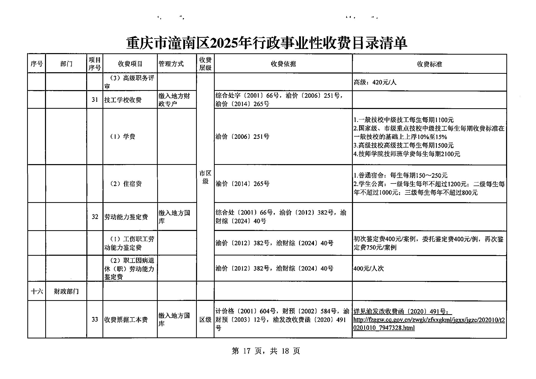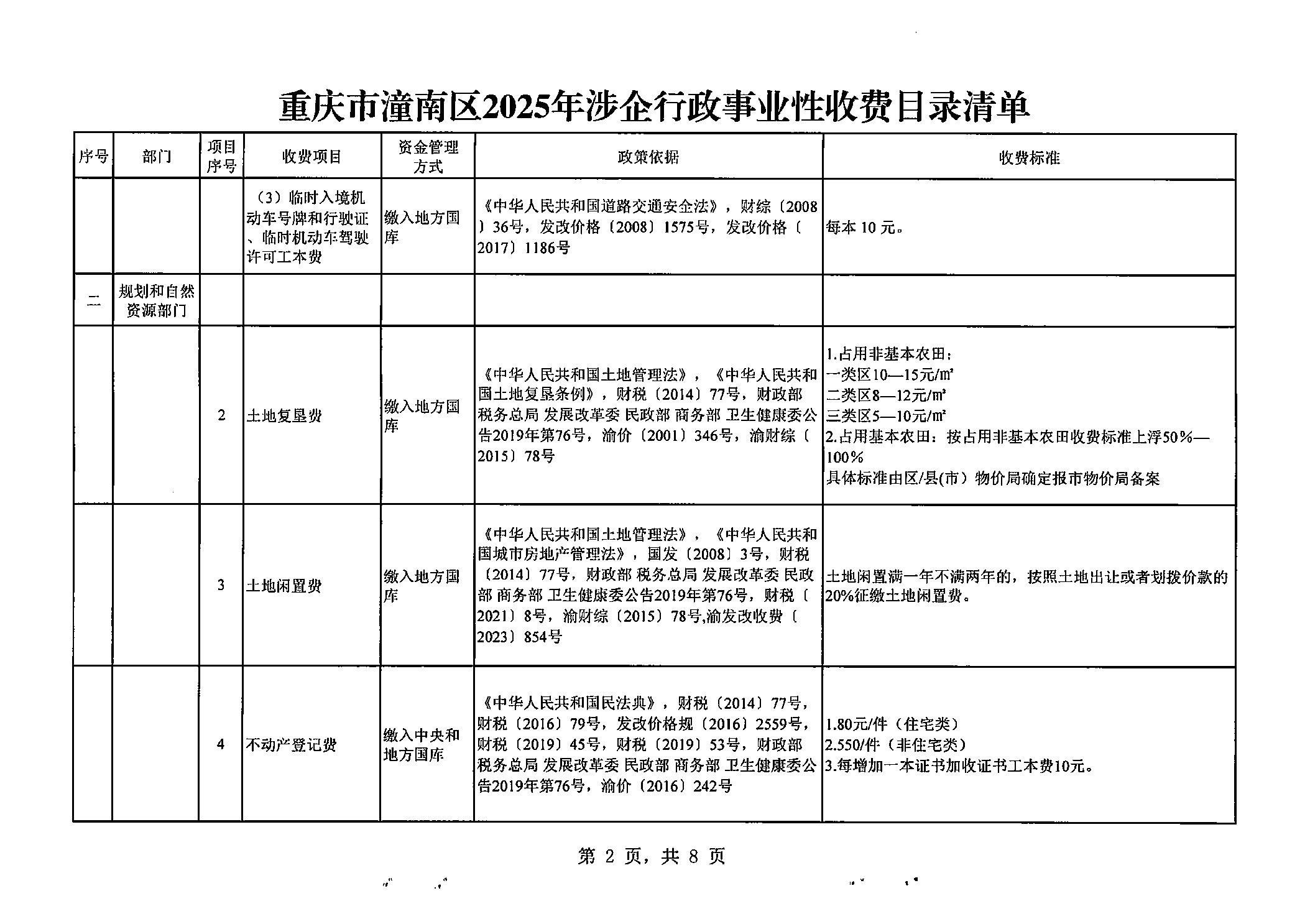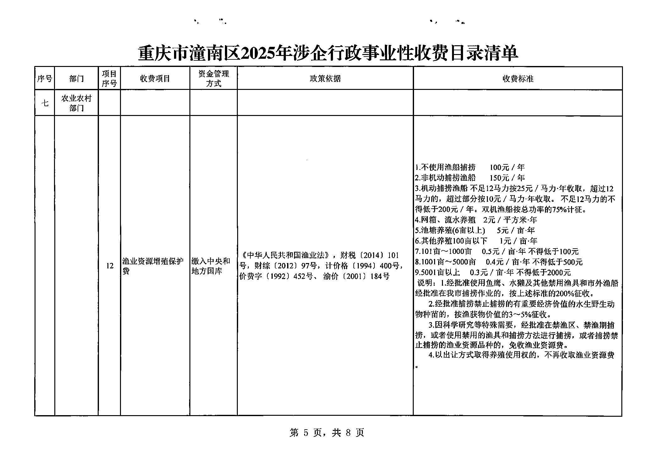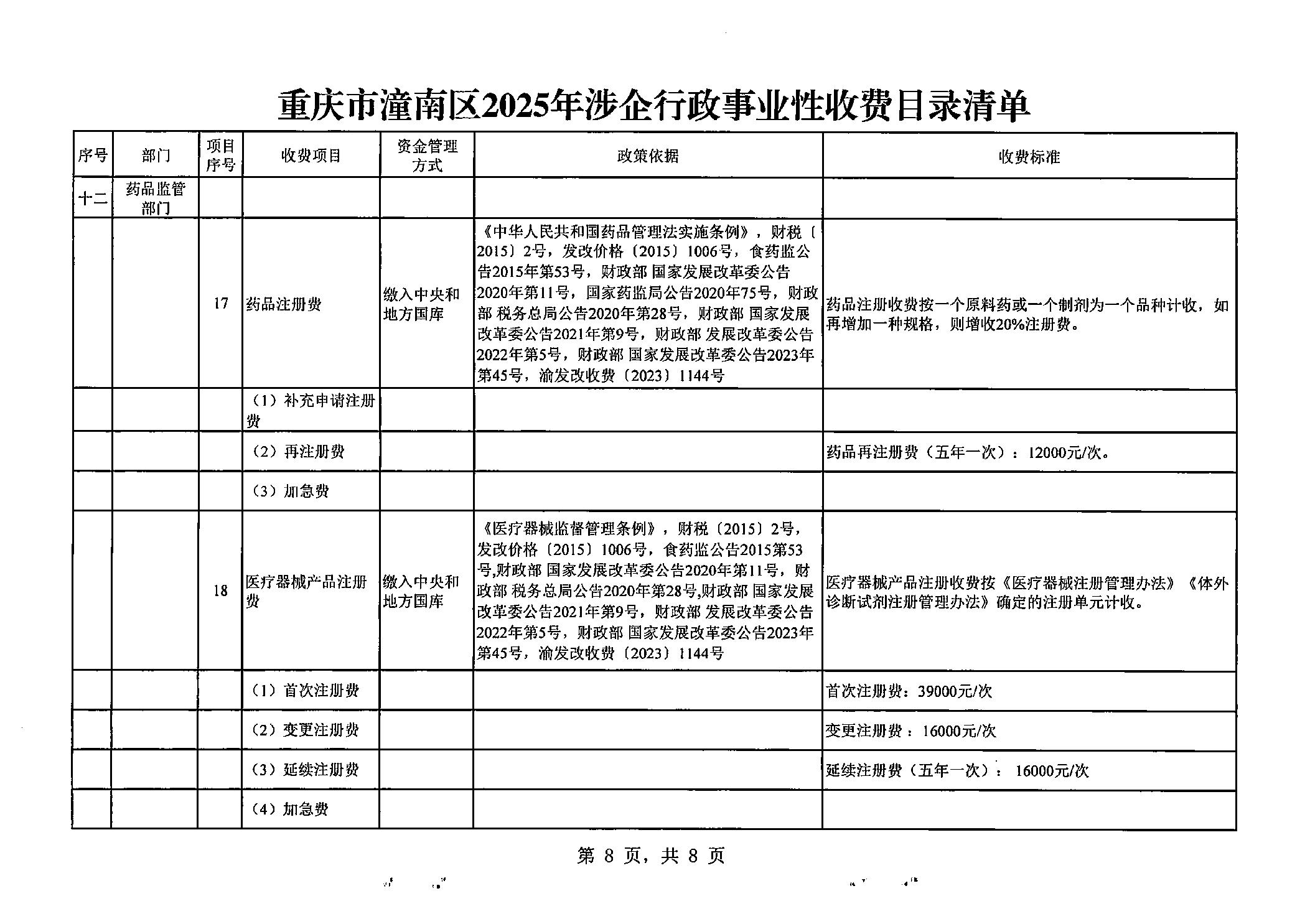 重庆市潼南区财政局 重庆市潼南区发展和改革委员会关于公布2025年行政事业性收费目录清单的公告