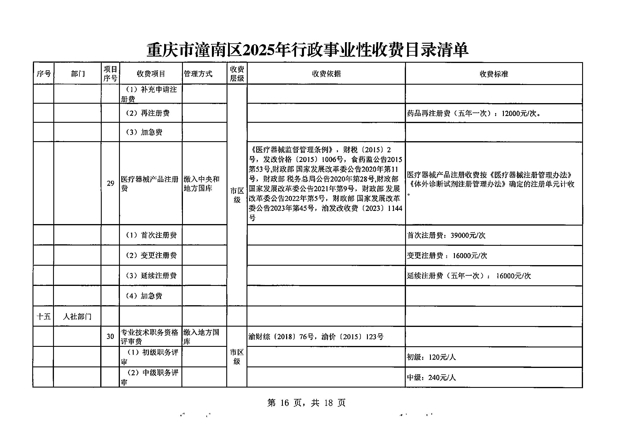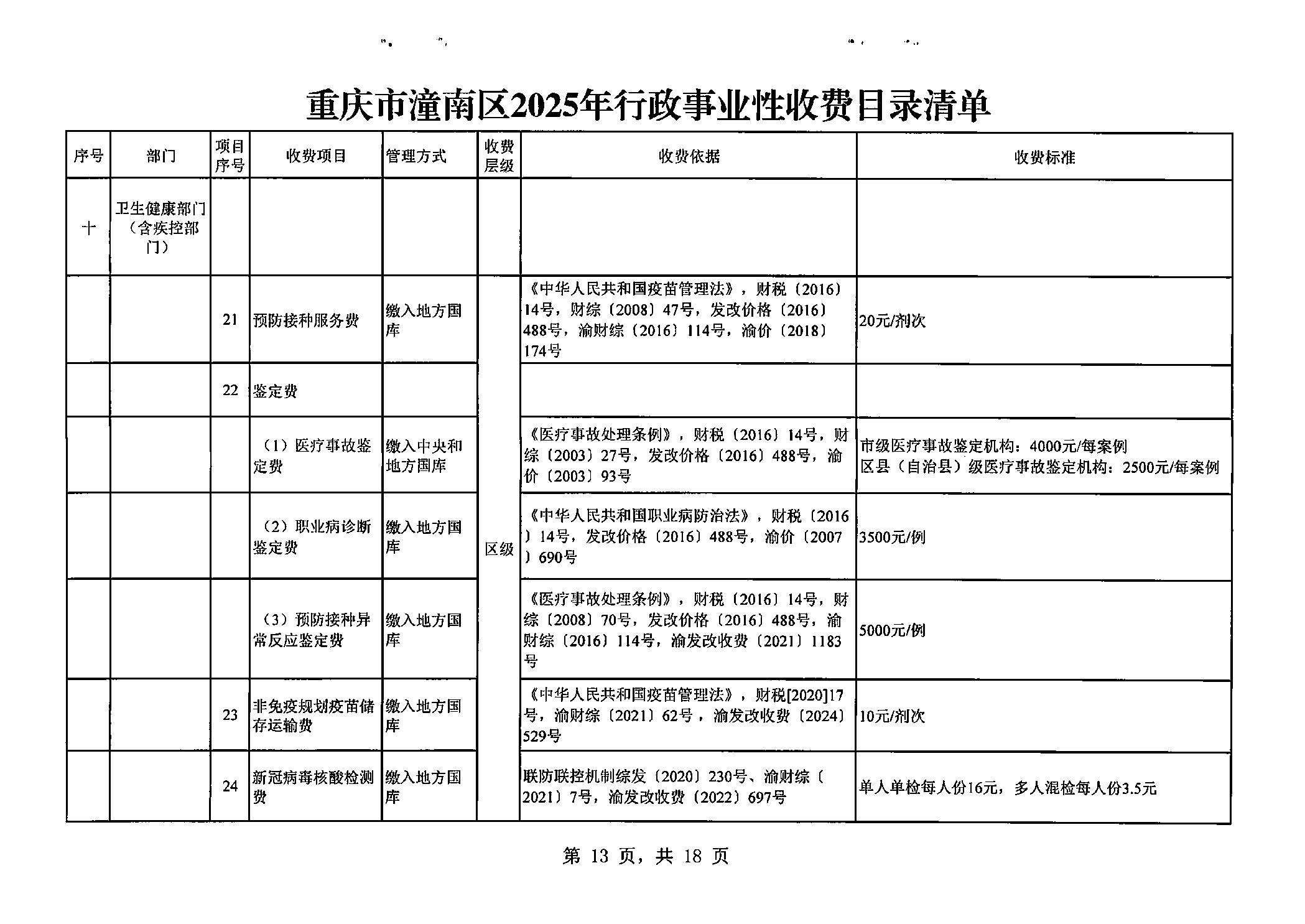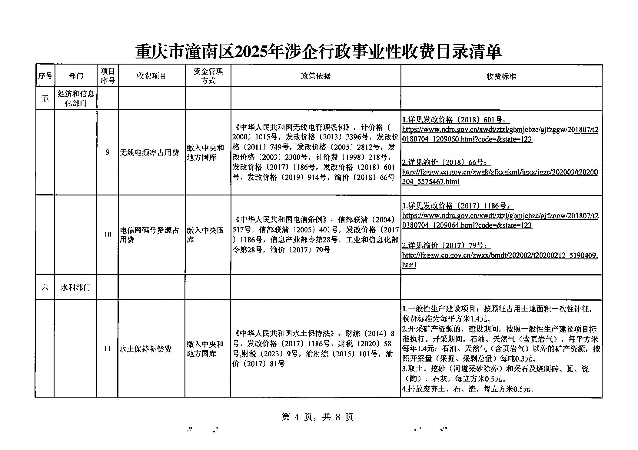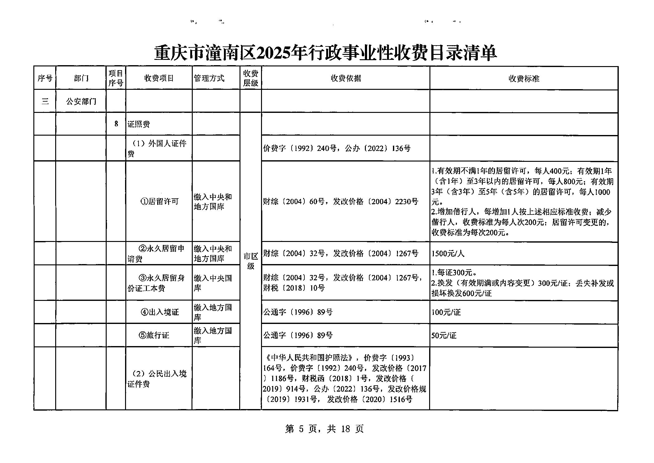 重庆市潼南区财政局 重庆市潼南区发展和改革委员会关于公布2025年行政事业性收费目录清单的公告