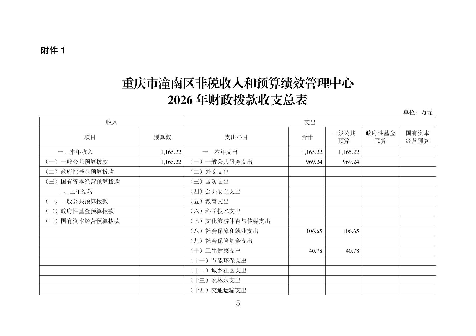 重庆市潼南区非税收入和预算绩效管理中心2026年预算公开.pdf
