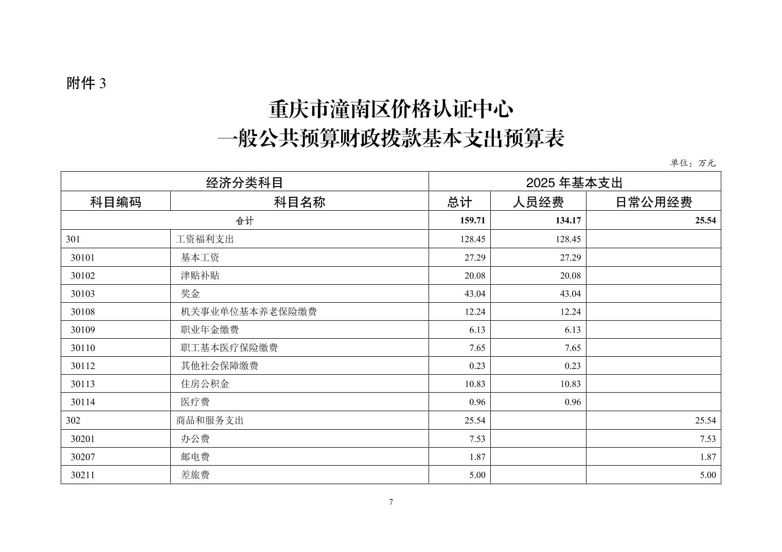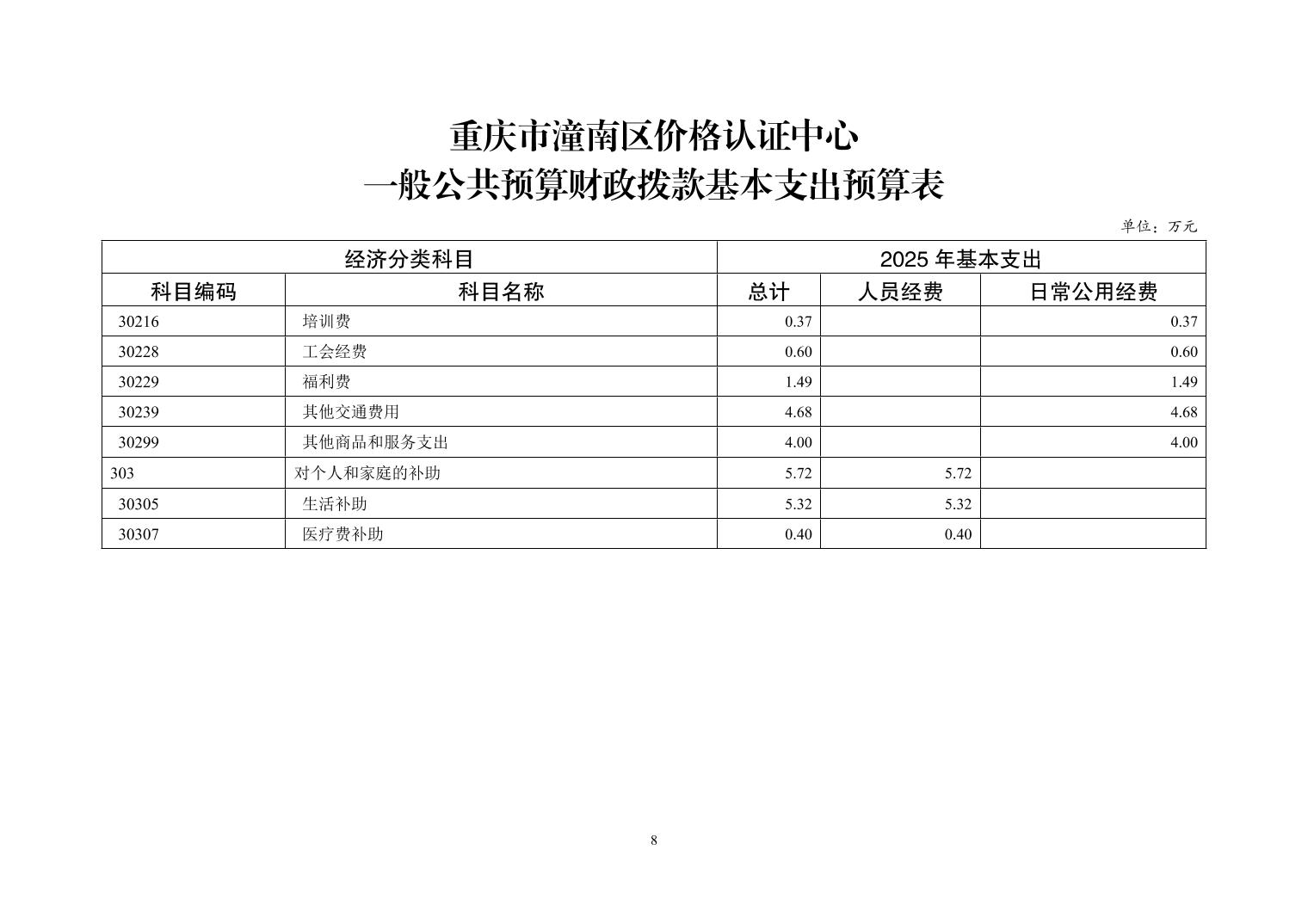 重庆市潼南区价格认证中心2025年部门预算情况说明