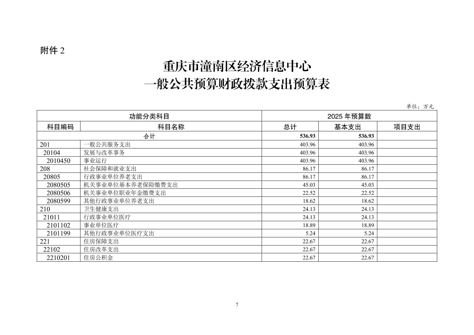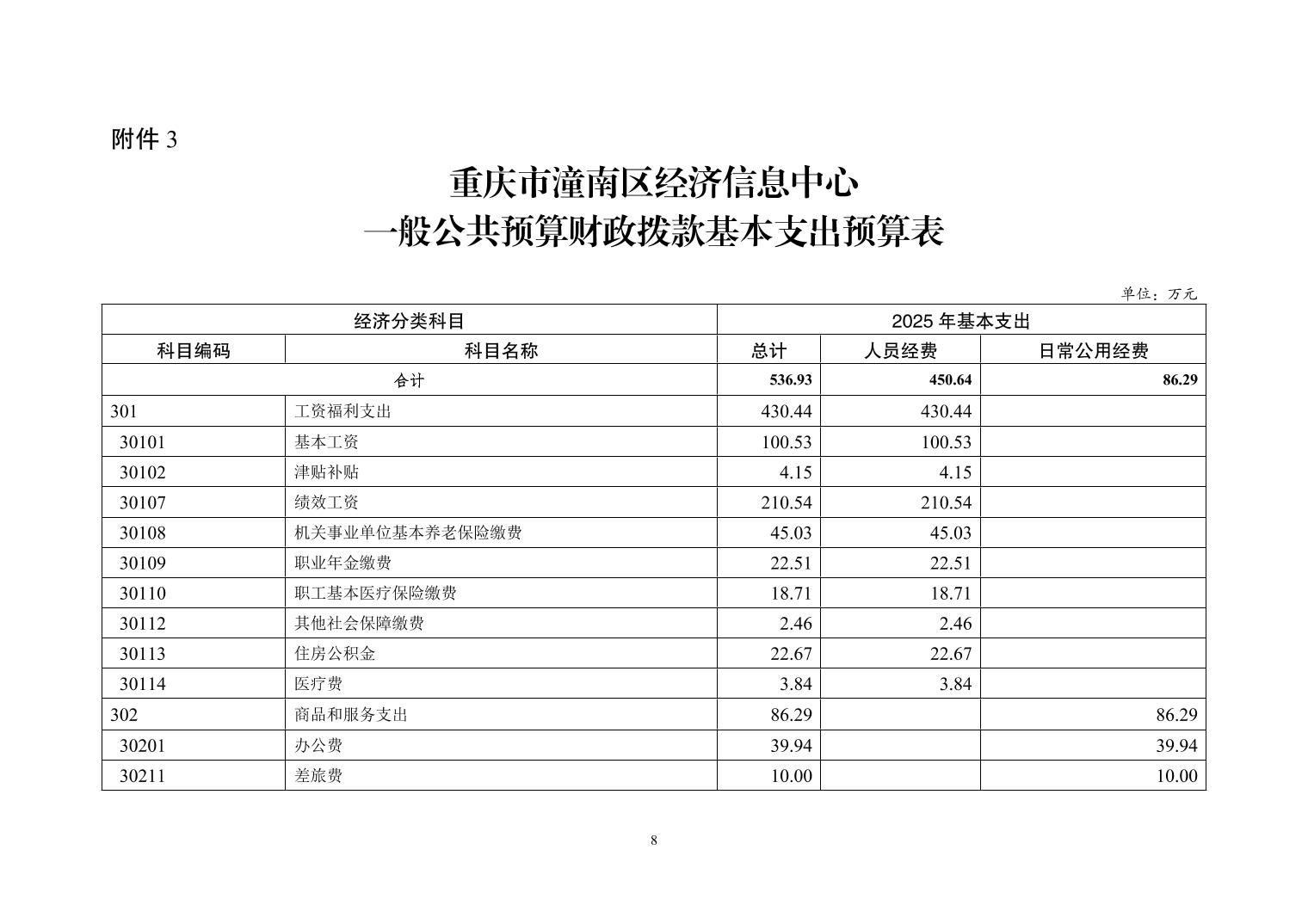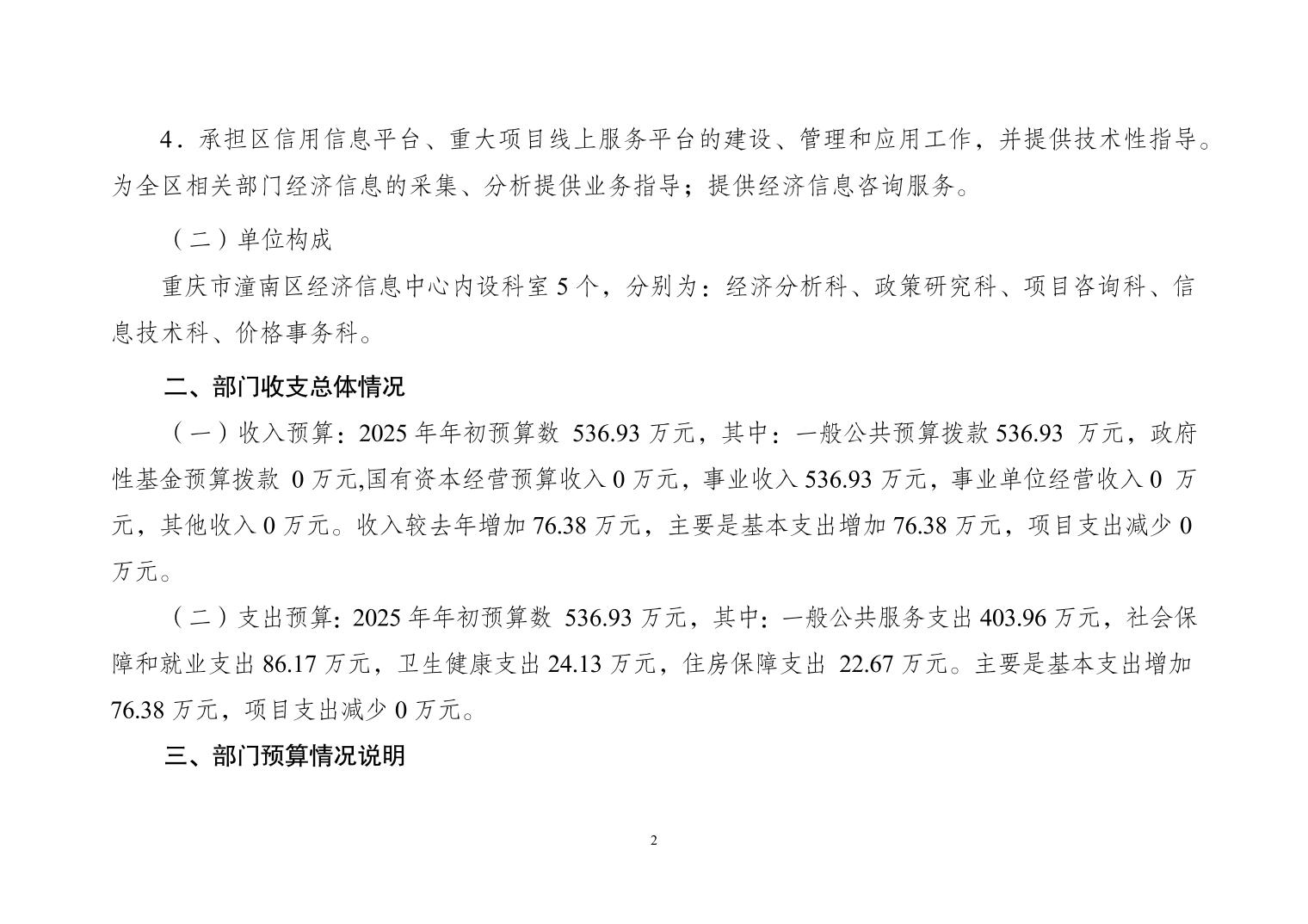 重庆市潼南区经济信息中心2025年部门预算情况说明