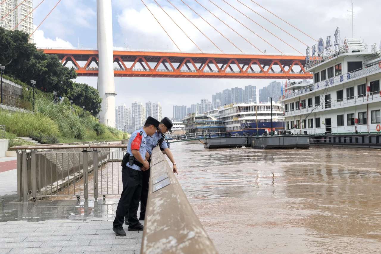 尽管江水上涨,水域沿线各处景点依然是市民游客争相打卡的热门地标。“请照看好老人和小孩,不要在江边危险区域逗留。”在渝中区滨江公园、江北区忠恕沱码头等处,南纪门派出所、牛角沱派出所的民警辅警一边巡逻,一边提醒劝导观景人流。