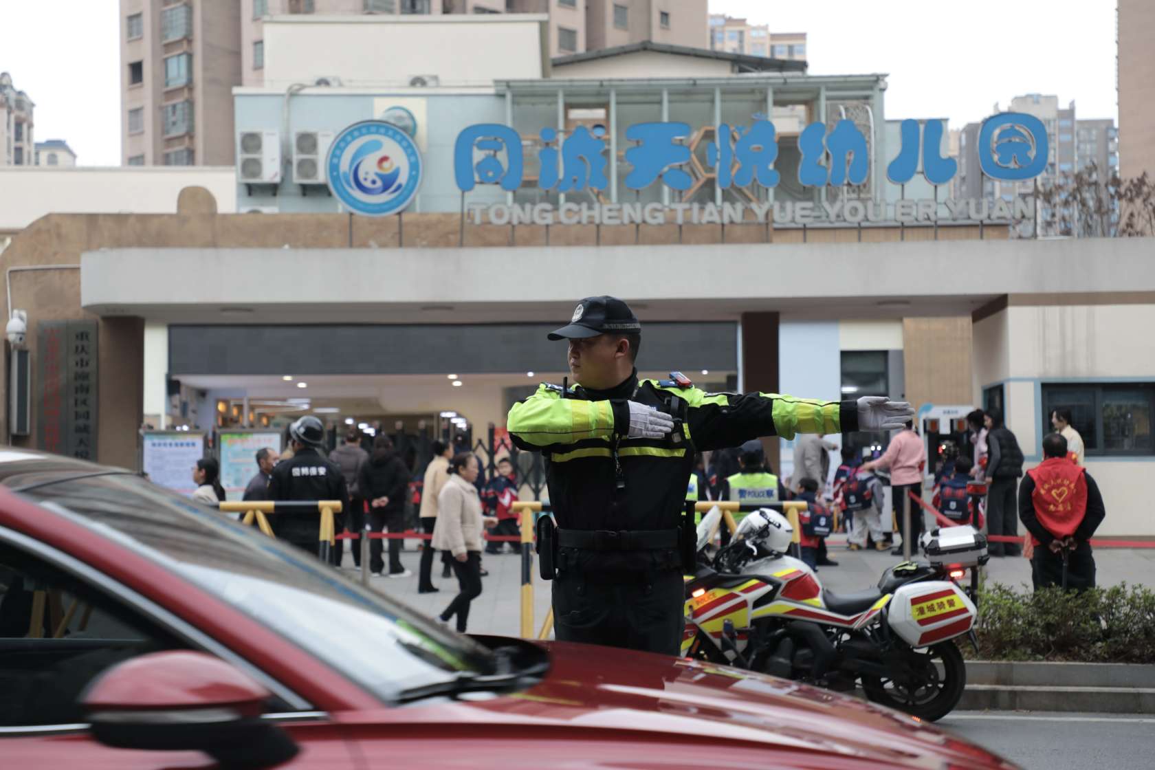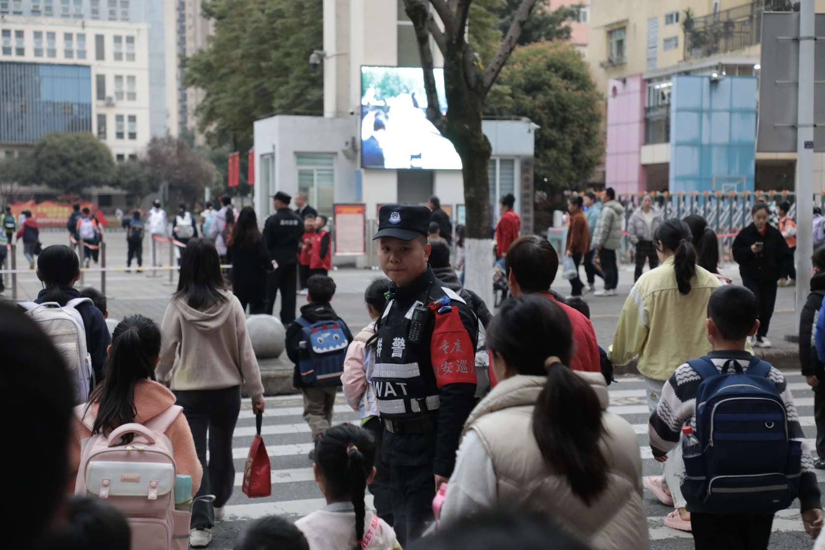 护学在岗,平安相伴。为给广大师生营造安全有序的校园环境,潼南公安采取"定人、定岗、定责"机制,科学布警、精准值守。