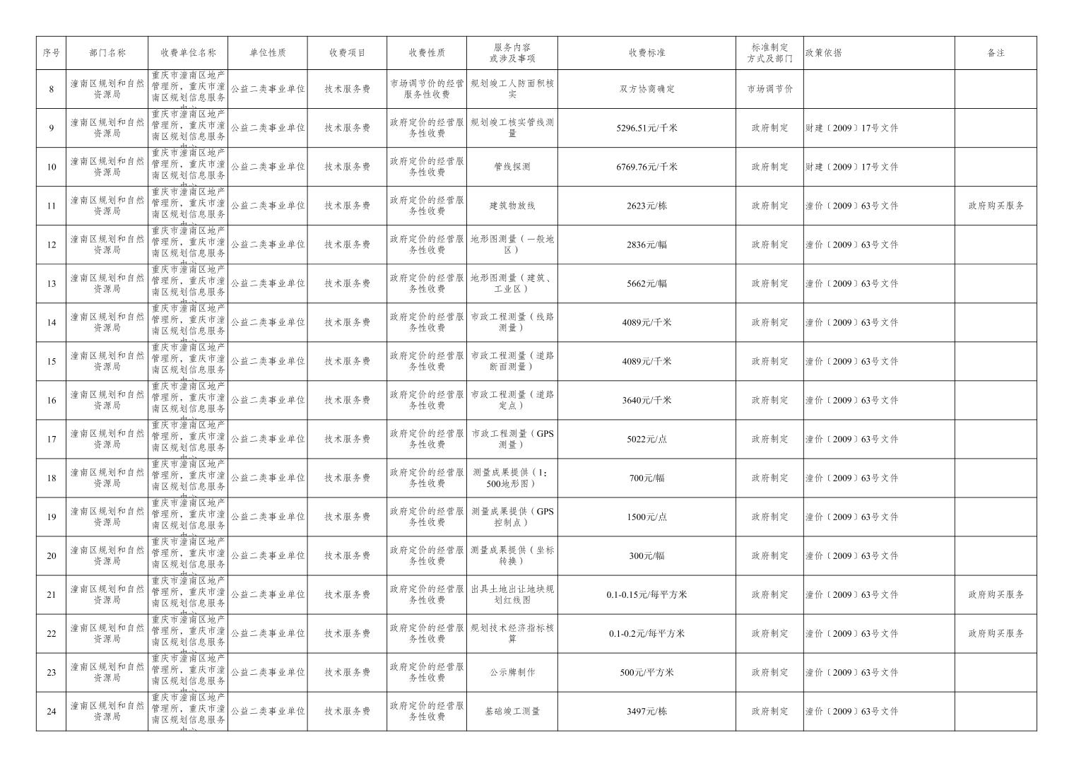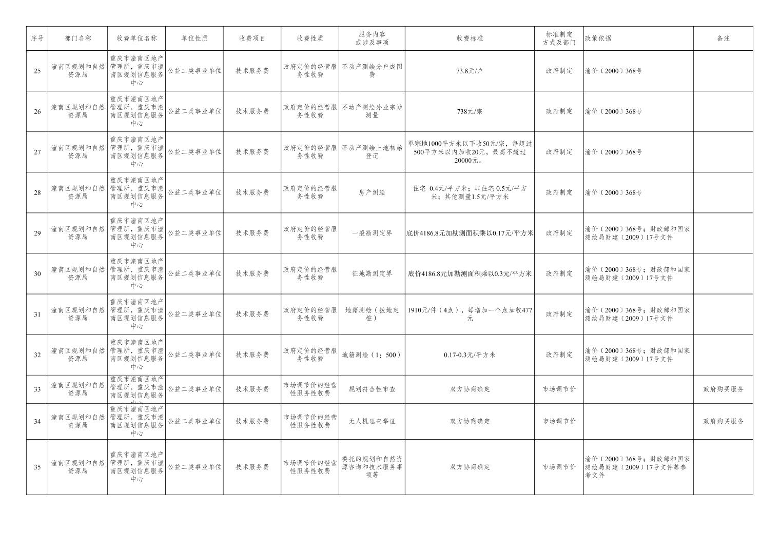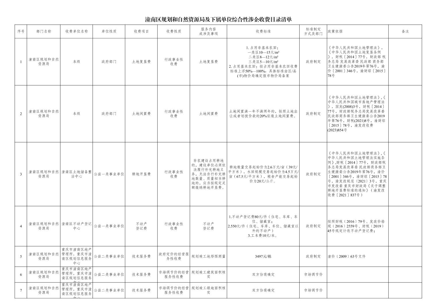 潼南区规划和自然资源局及下属单位综合性涉企收费目录清单