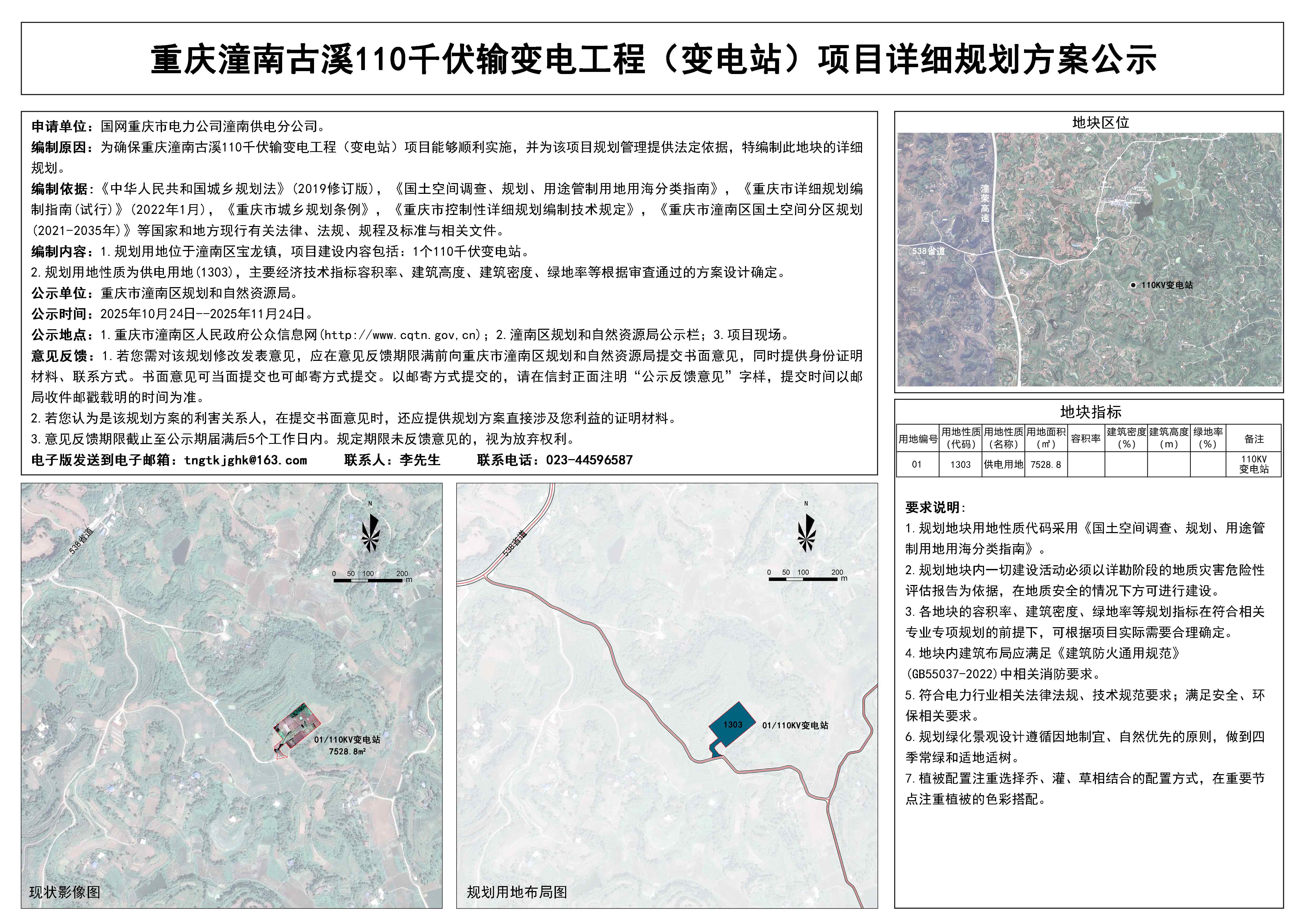 重庆市潼南区古溪(宝龙)110KV输变电站项目详细规划方案公示