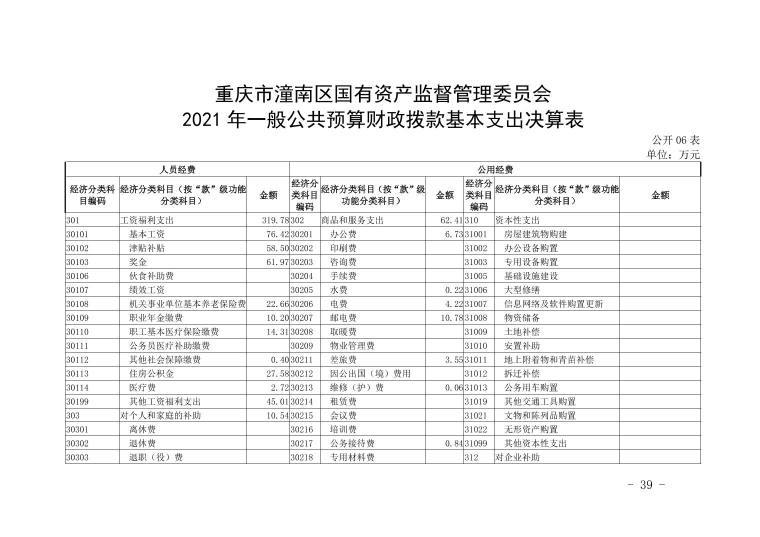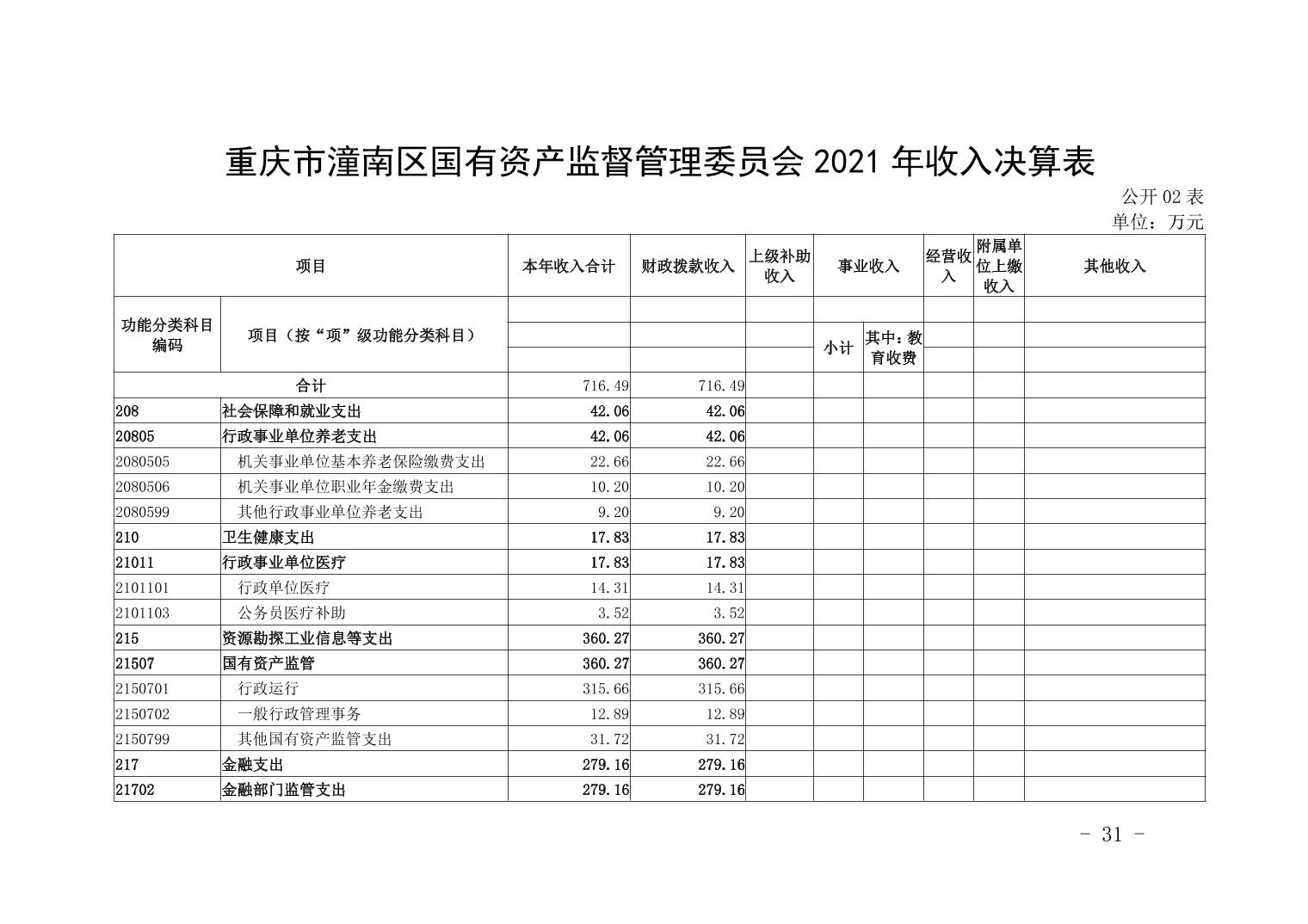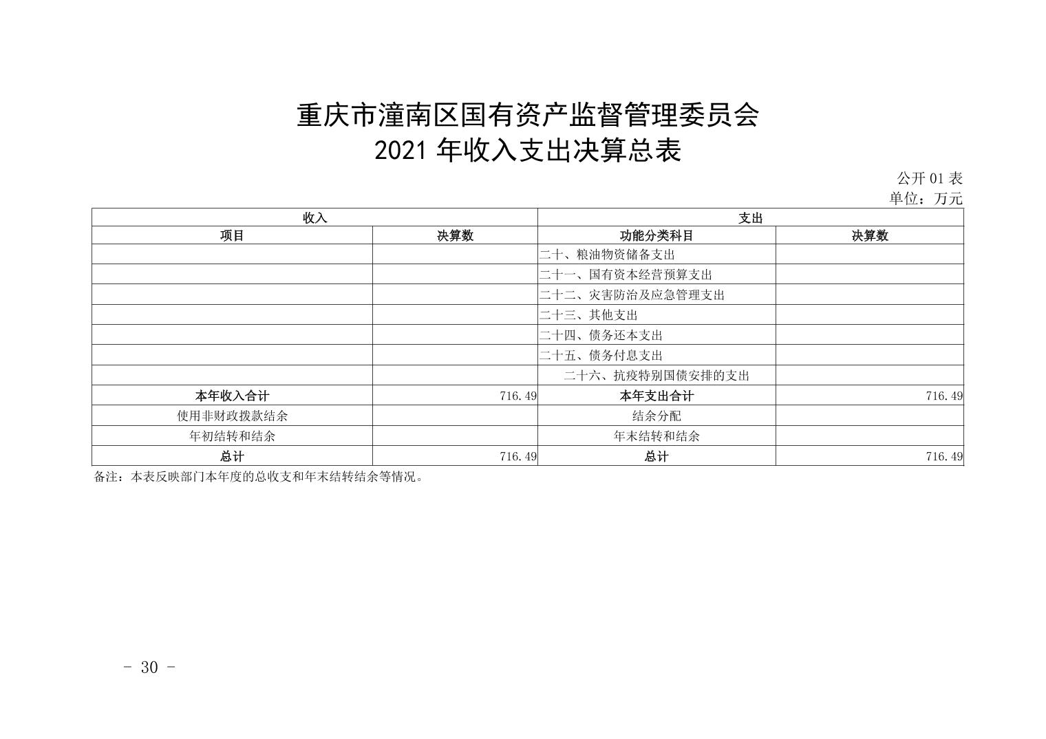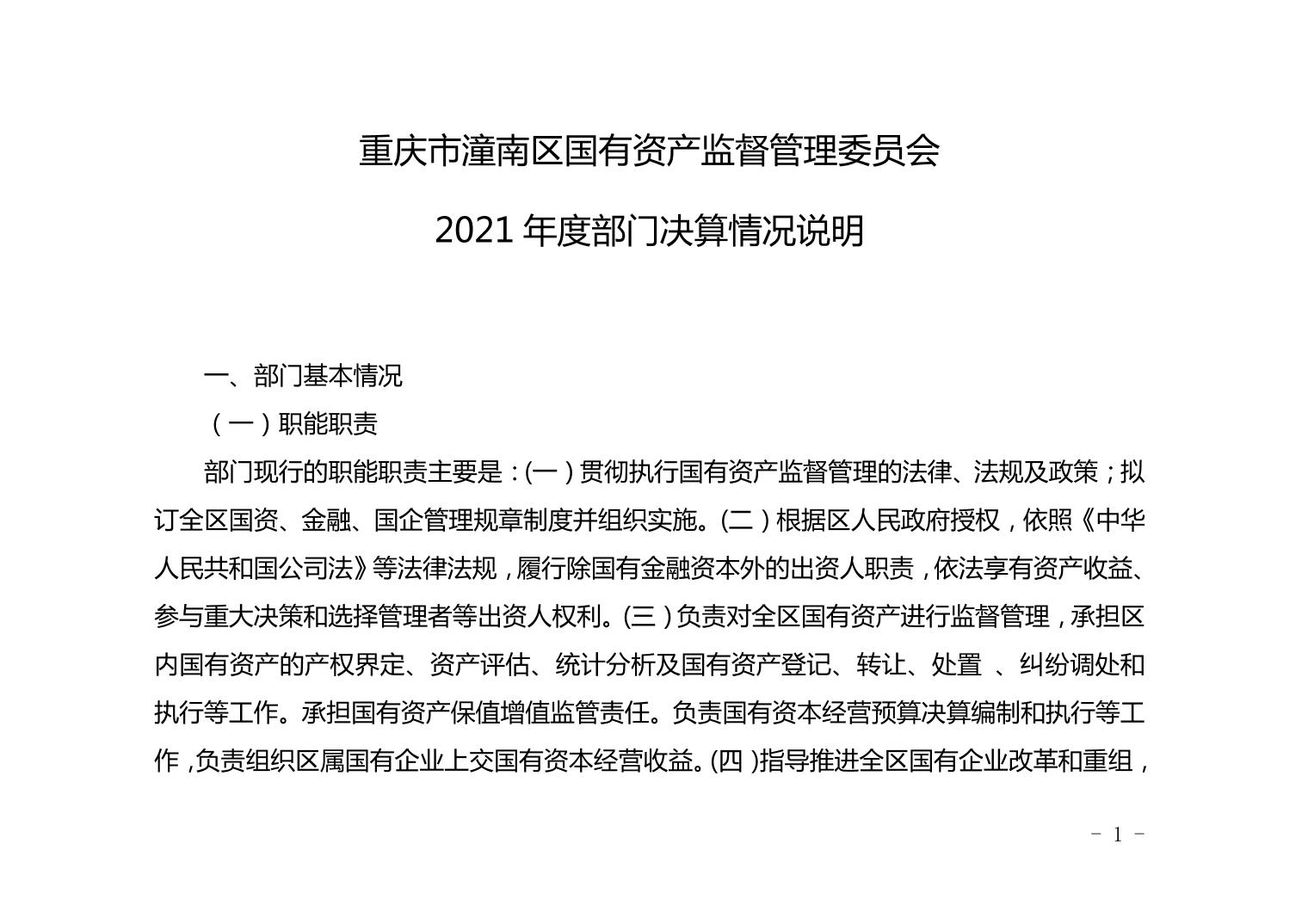 重庆市潼南区国有资产监督管理委员会2021年度部门决算公开