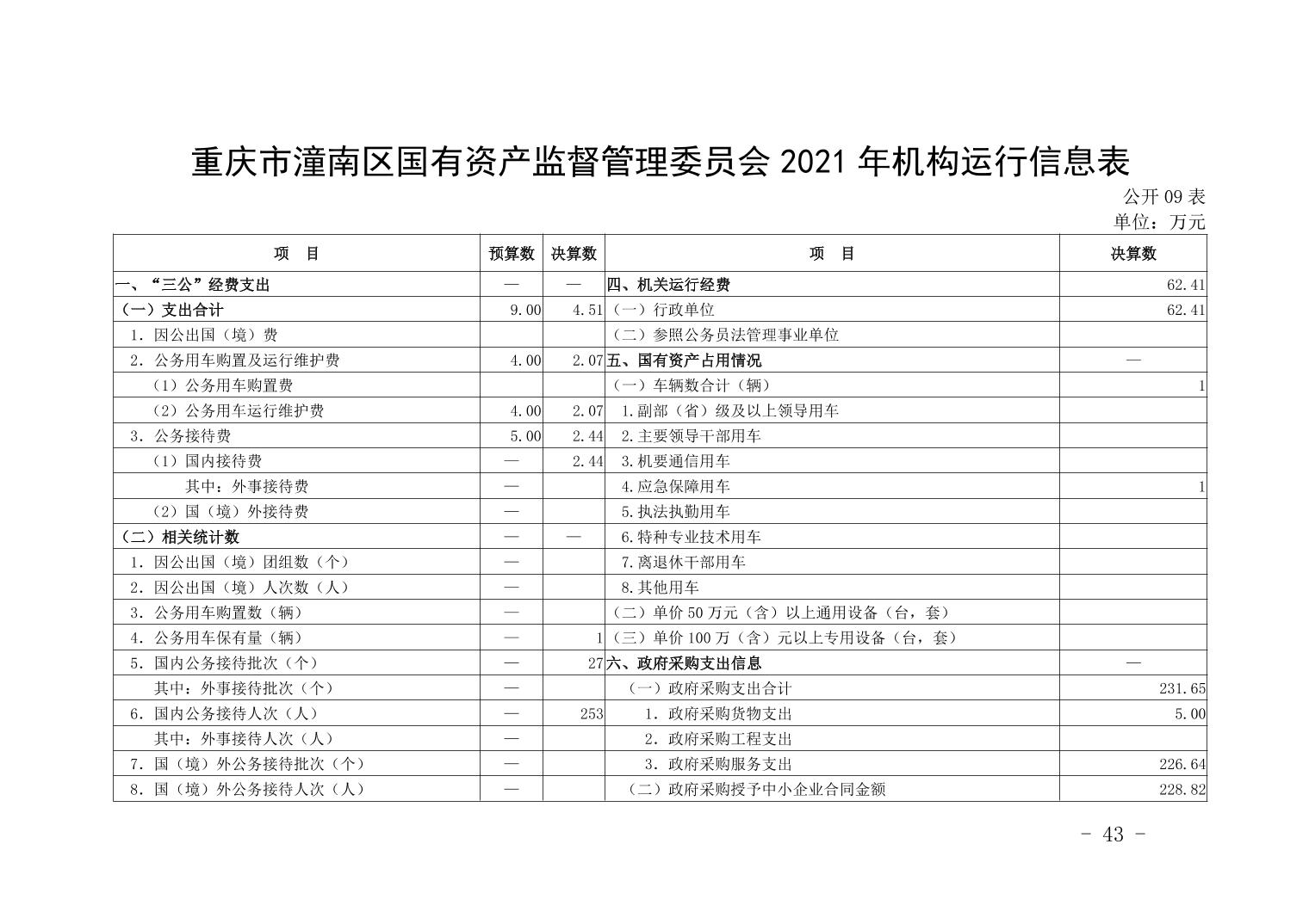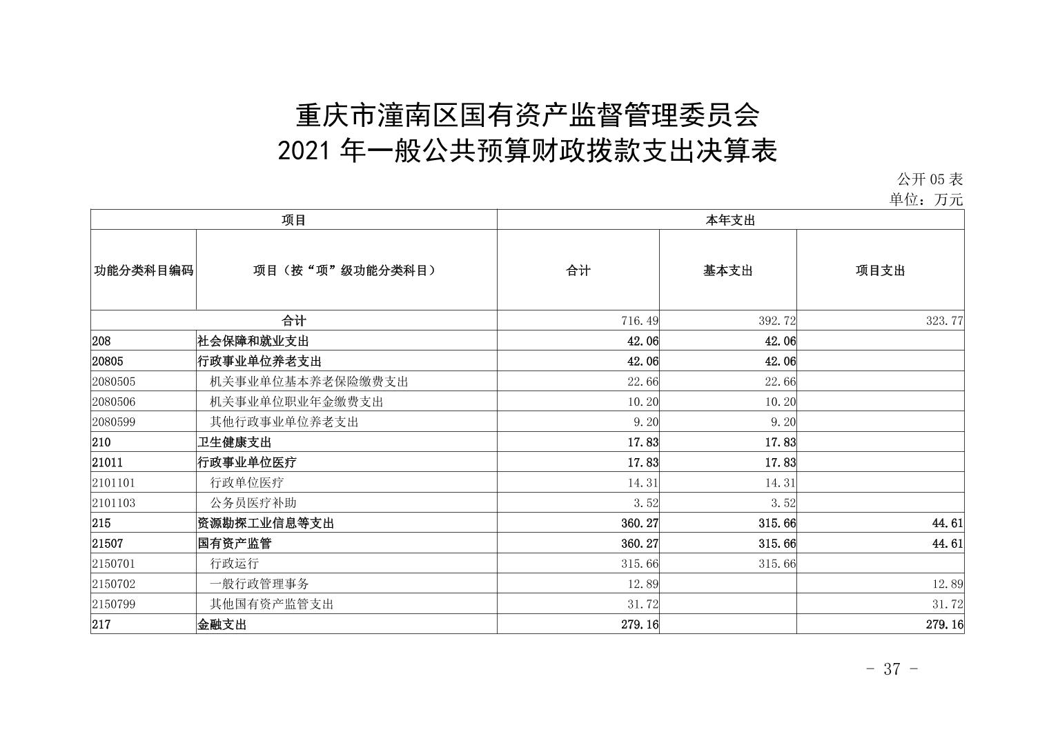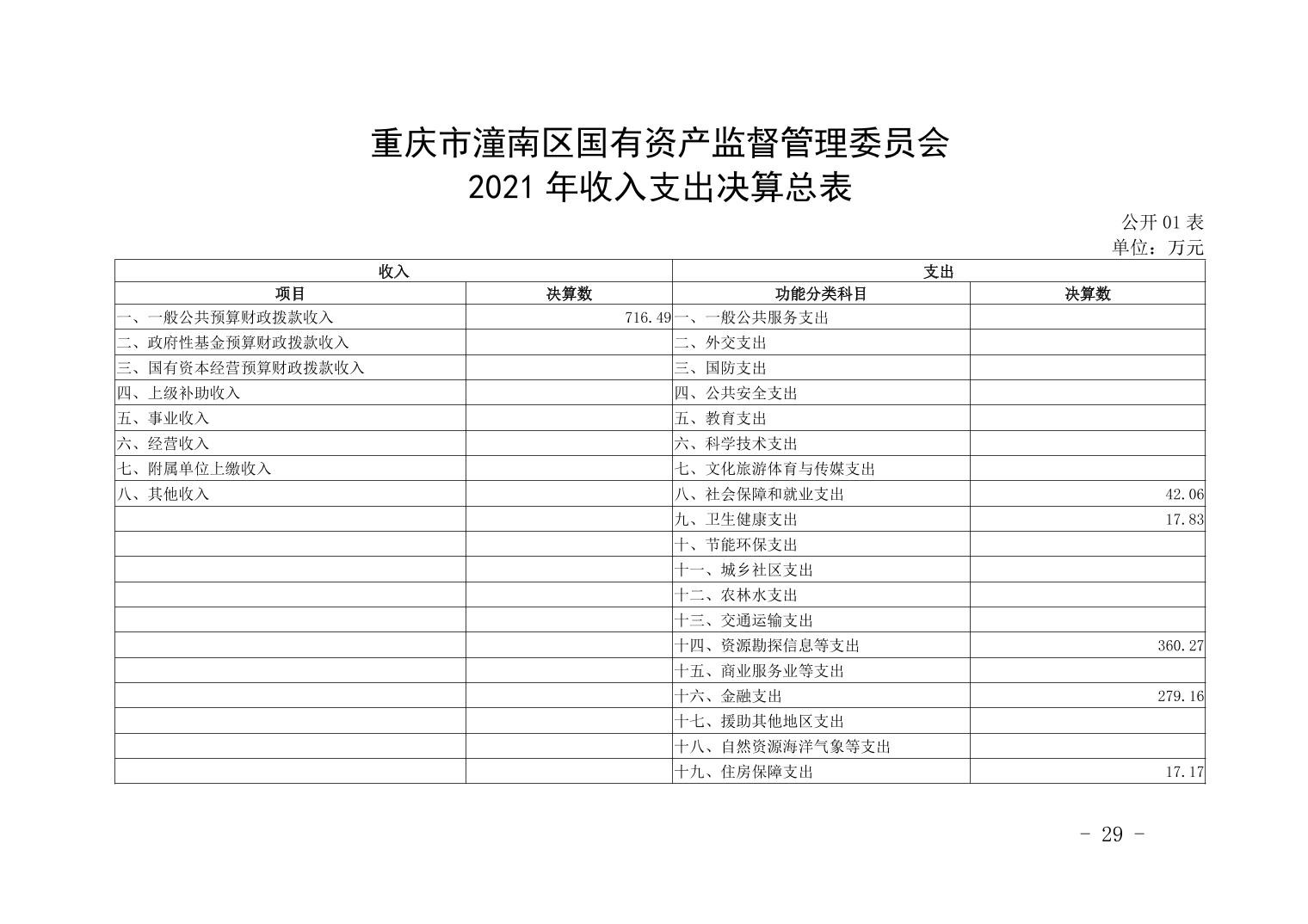 重庆市潼南区国有资产监督管理委员会2021年度部门决算公开