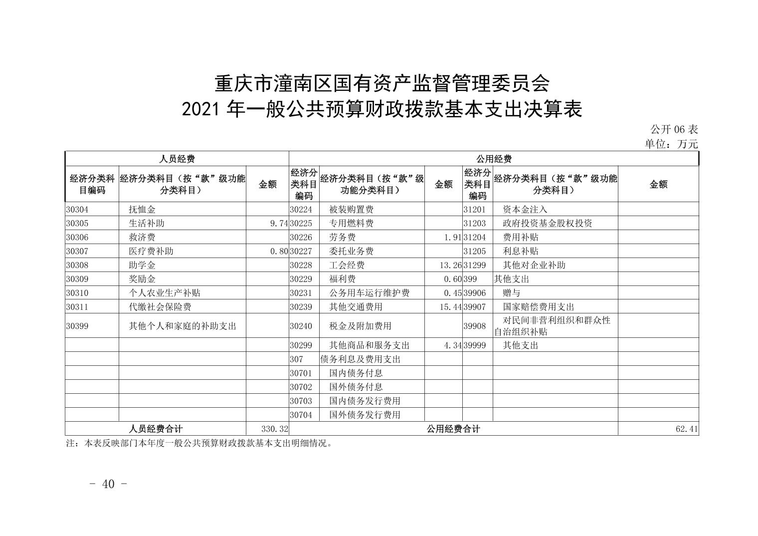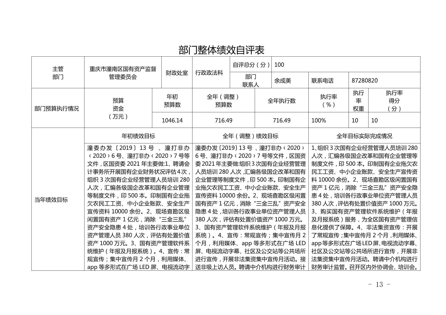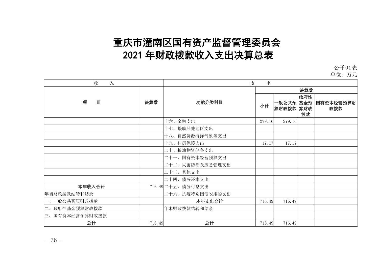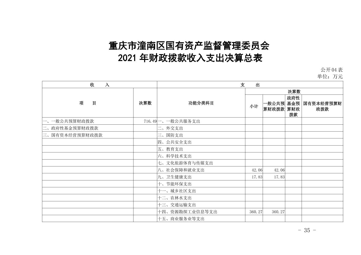 重庆市潼南区国有资产监督管理委员会2021年度部门决算公开