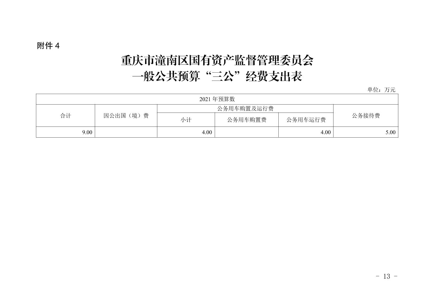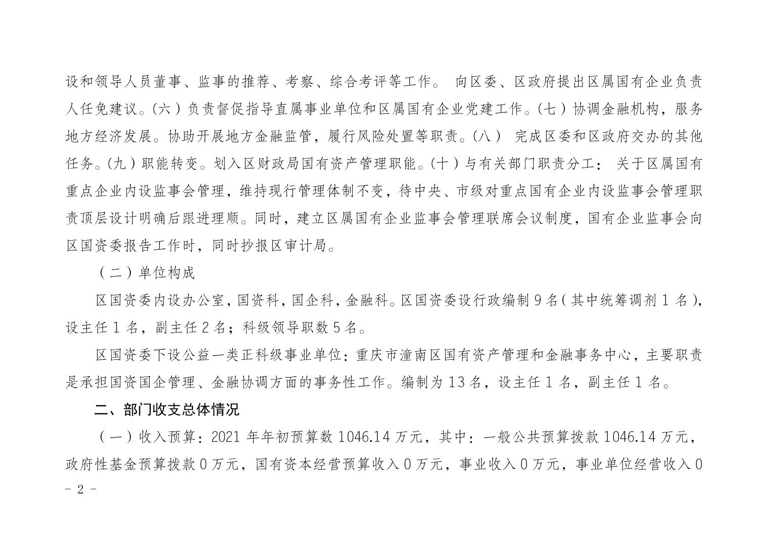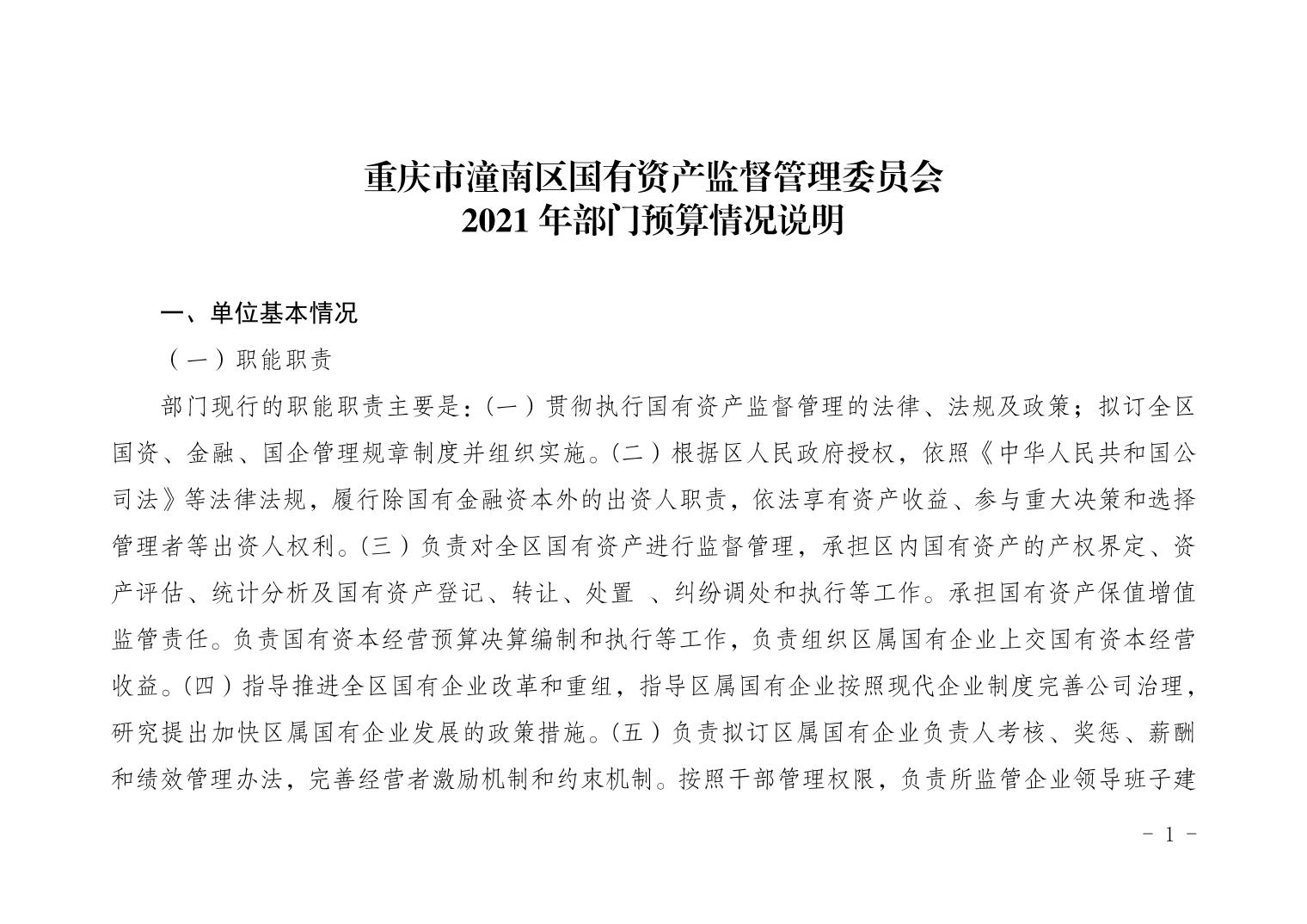 重庆市潼南区国有资产监督管理委员会2021年部门预算公开