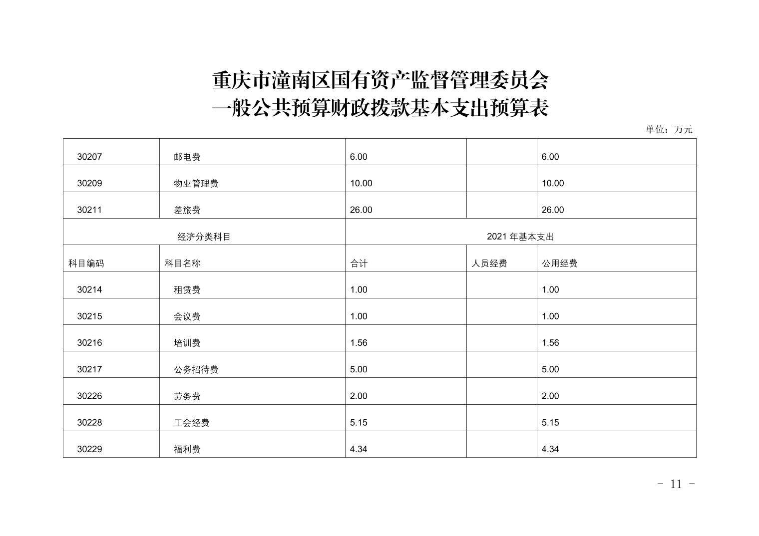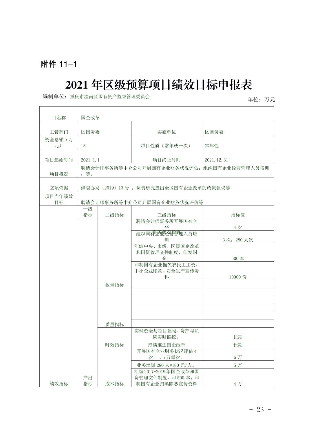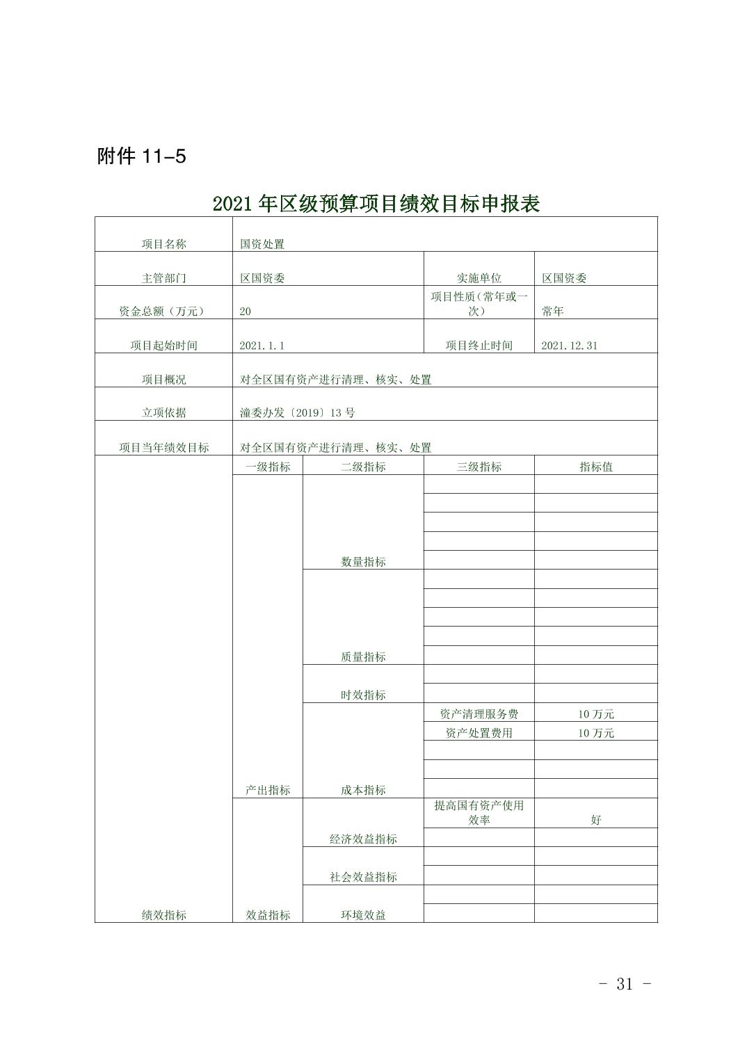 重庆市潼南区国有资产监督管理委员会2021年部门预算公开