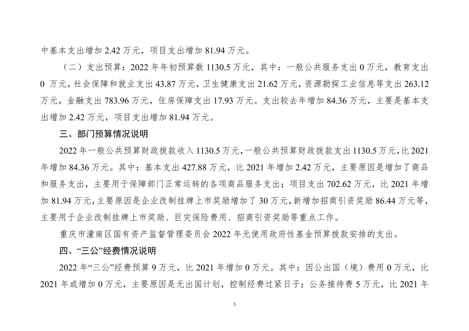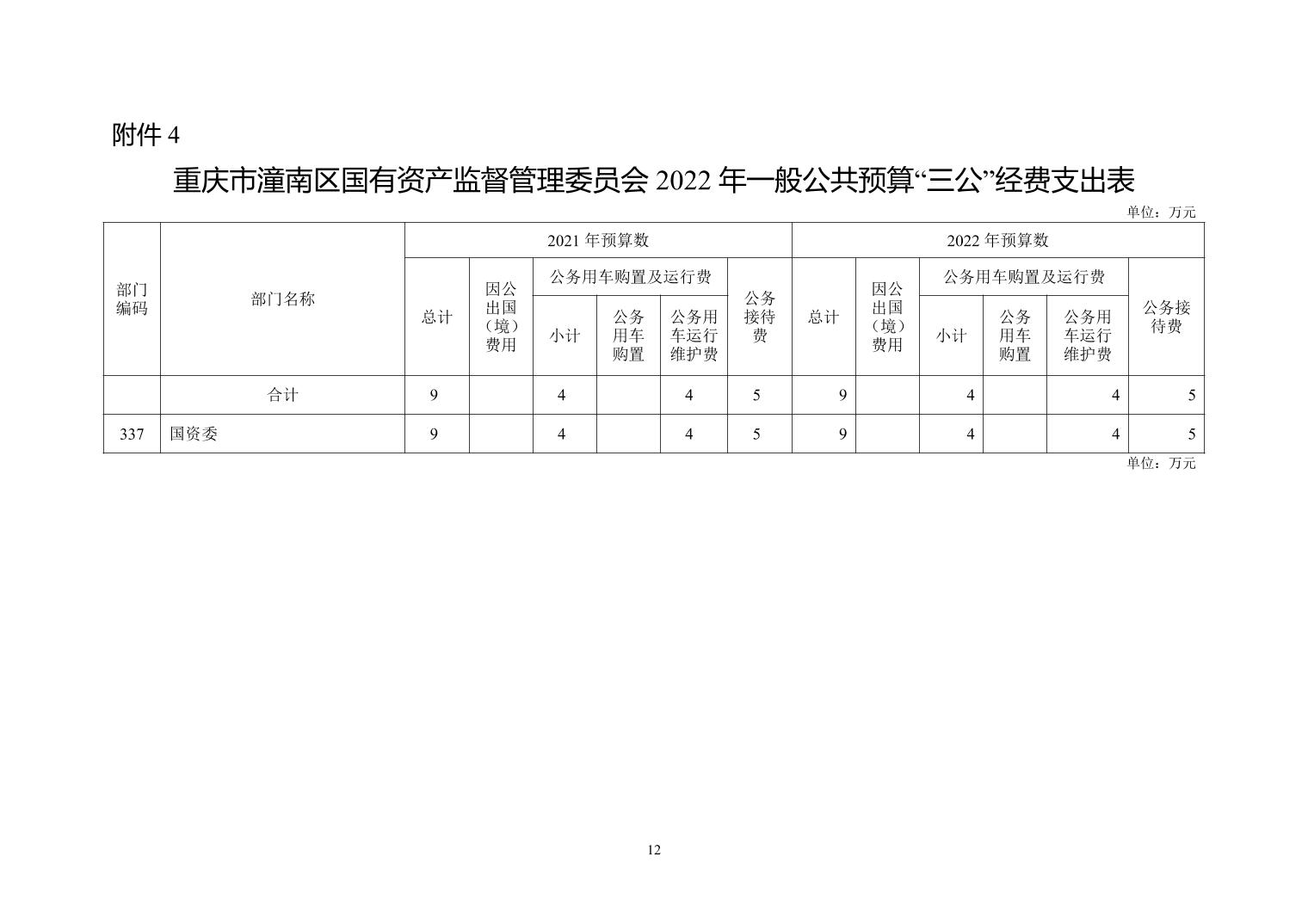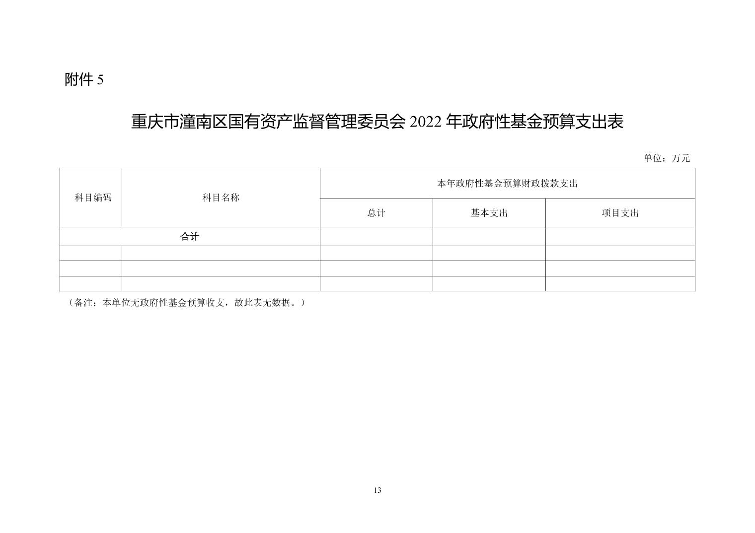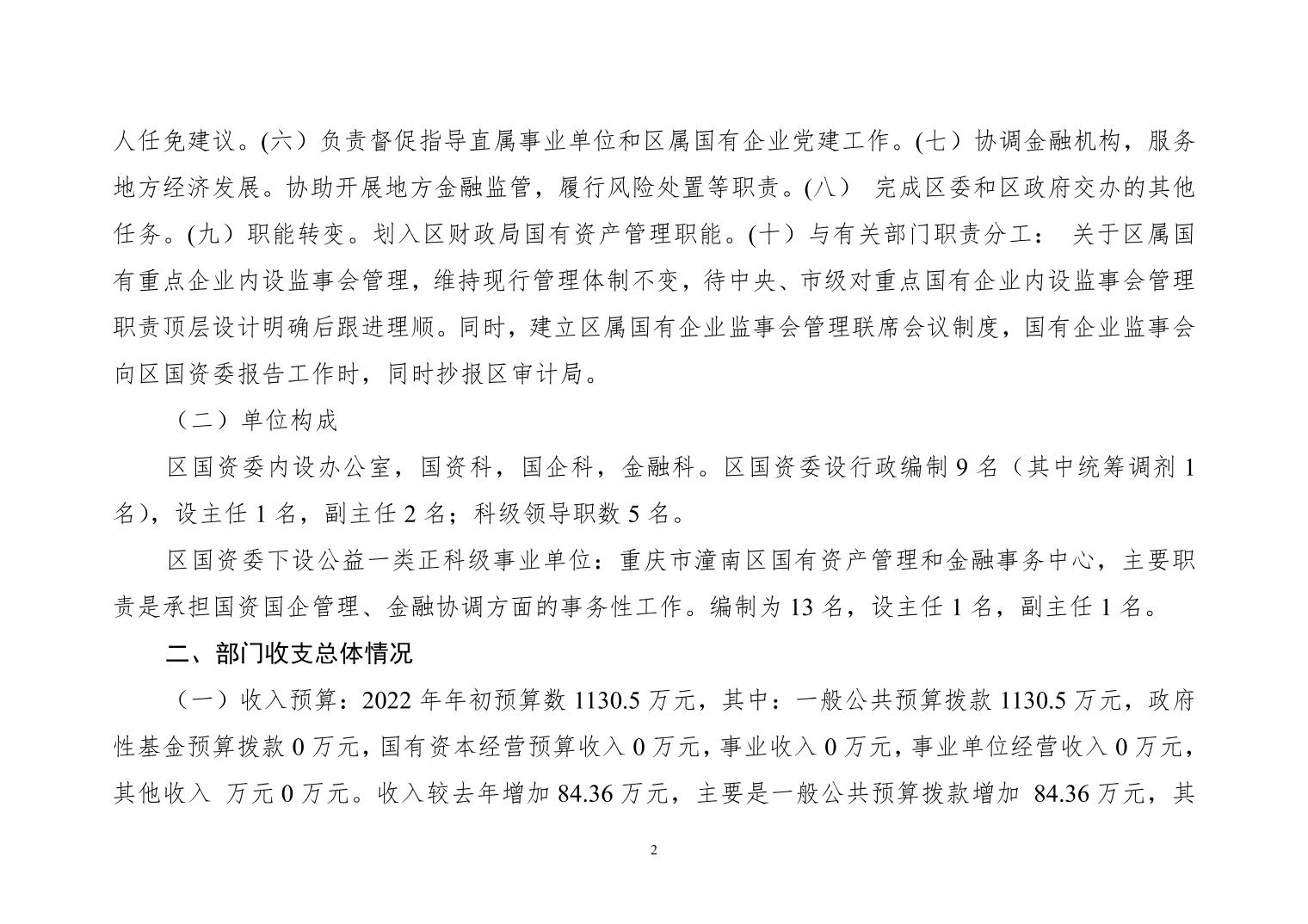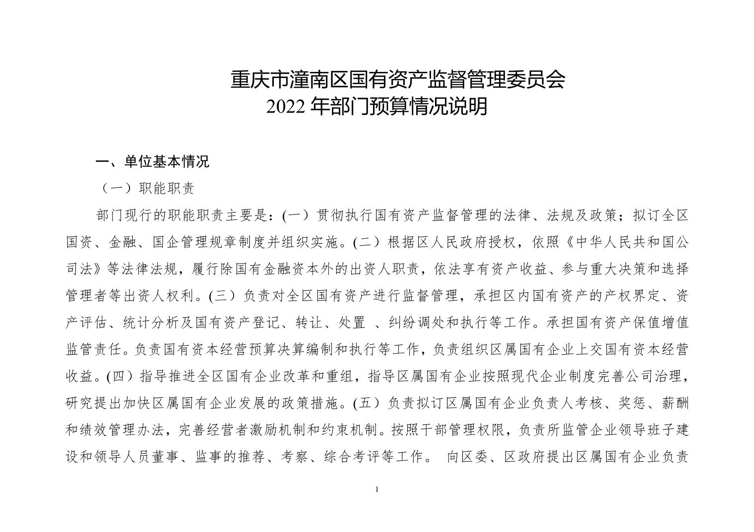 重庆市潼南区国有资产监督管理委员会 2022年部门预算公开