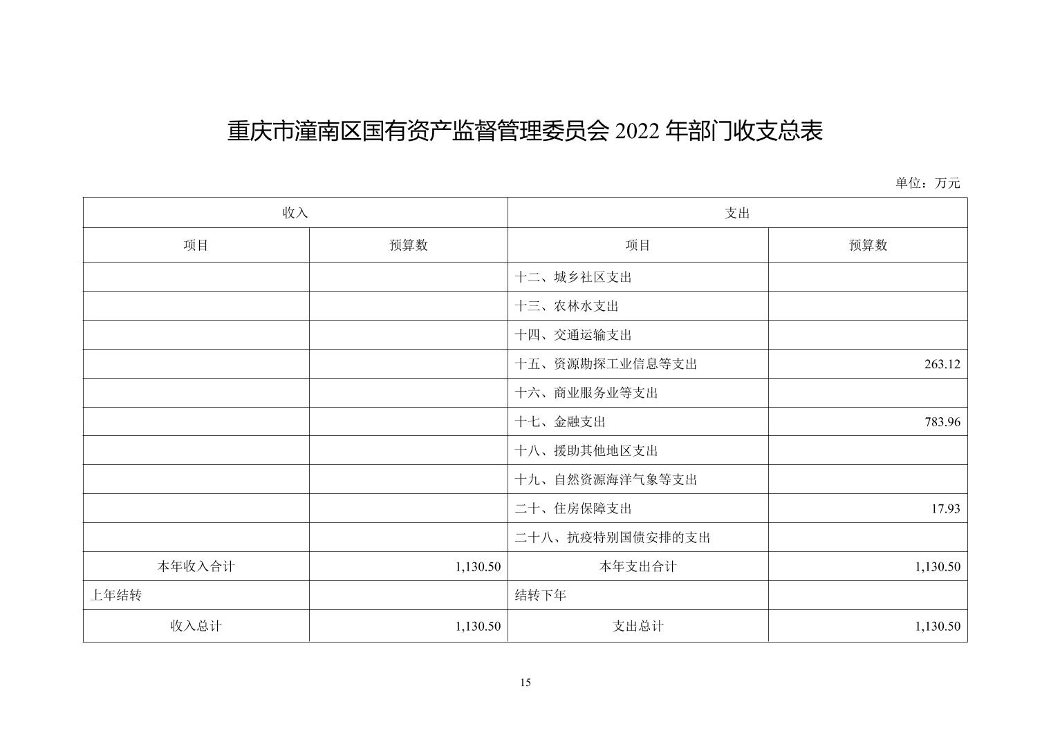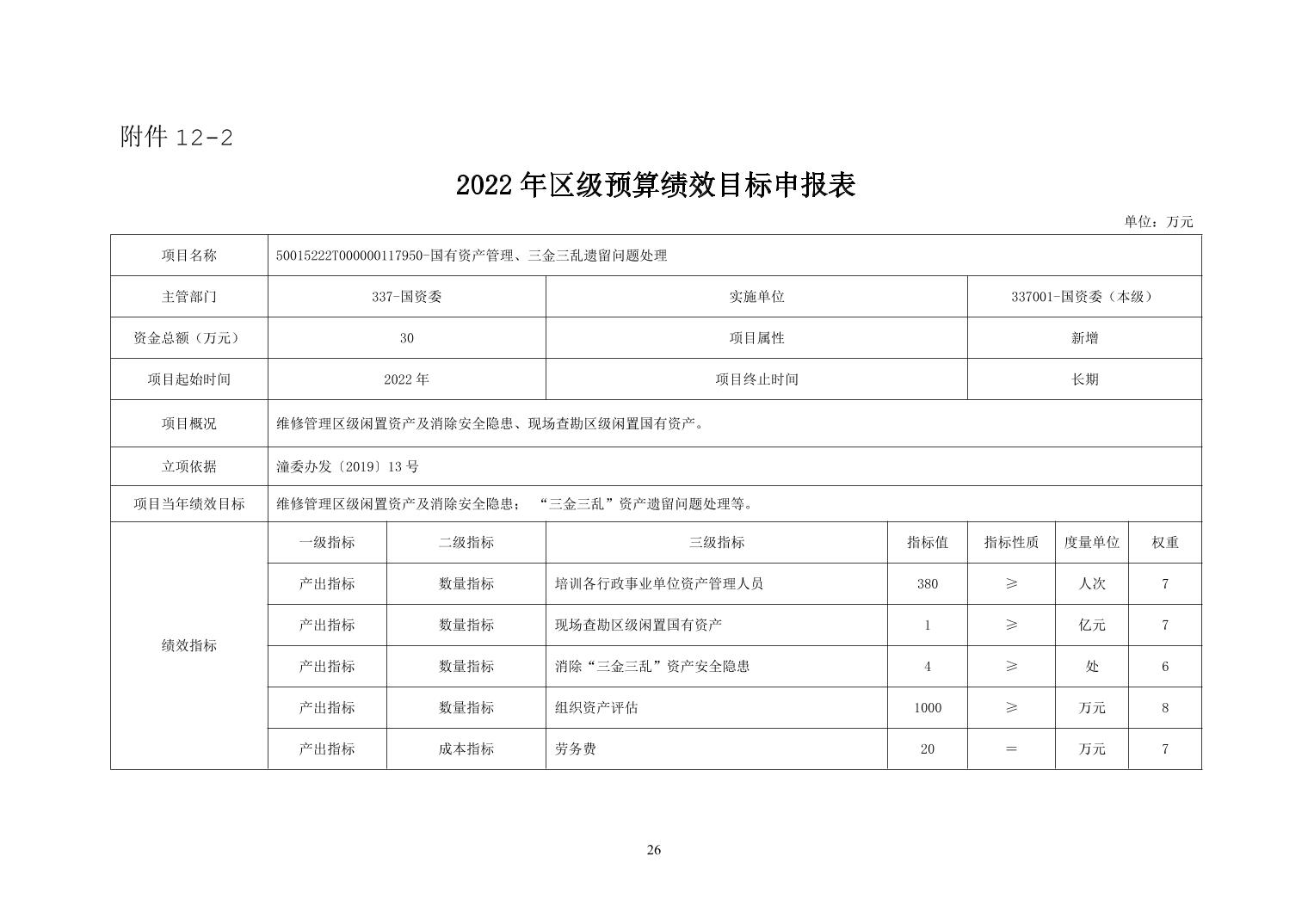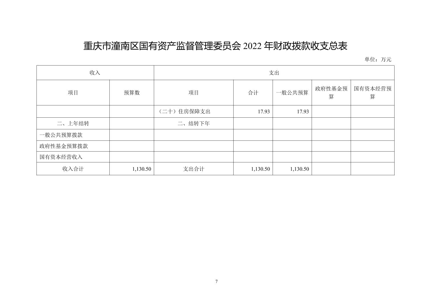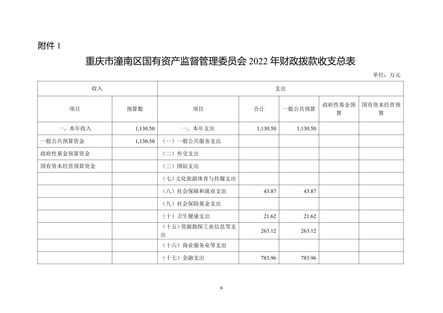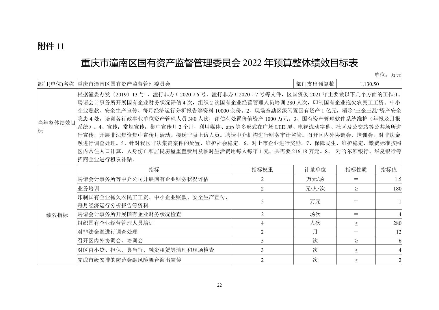 重庆市潼南区国有资产监督管理委员会 2022年部门预算公开
