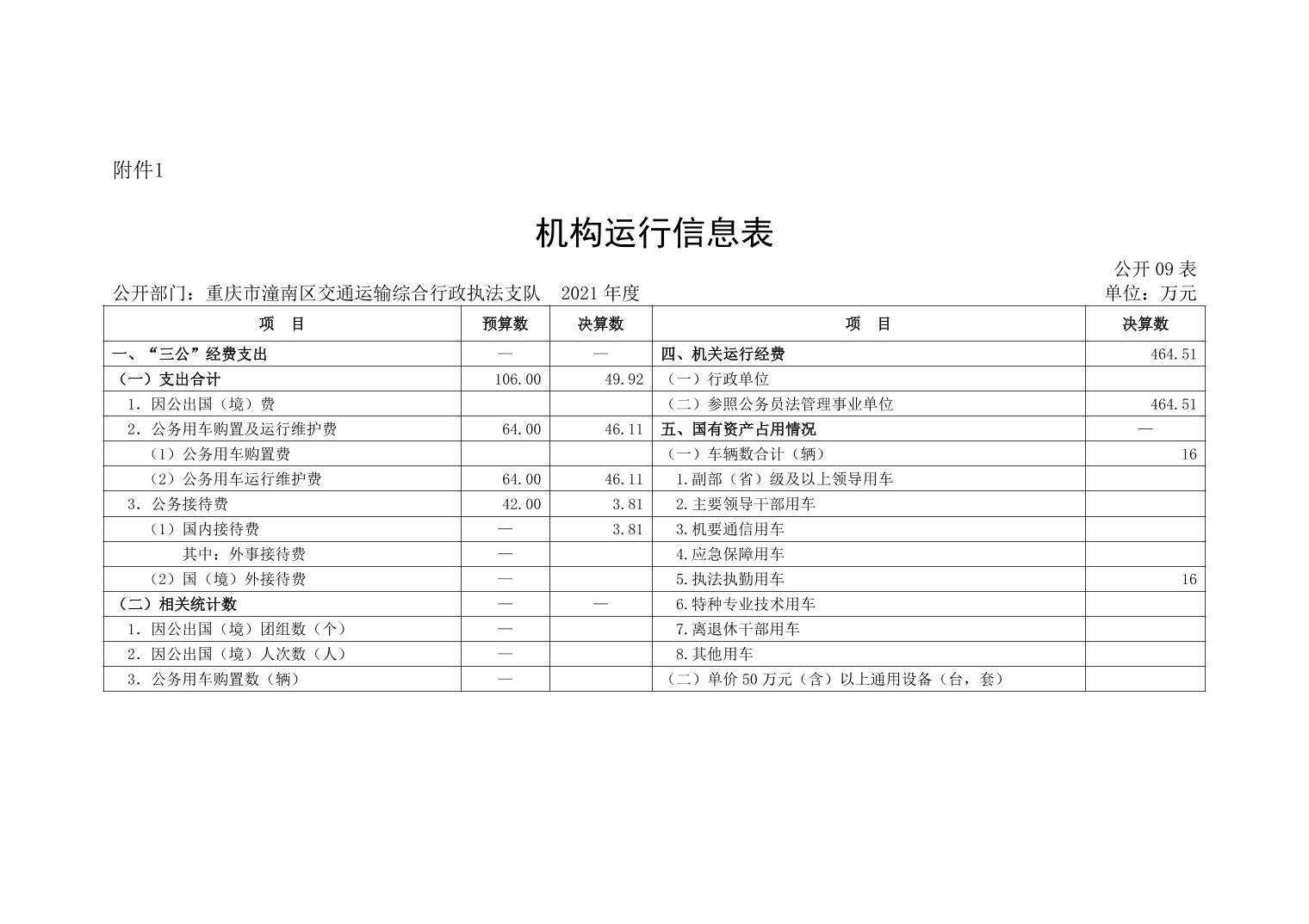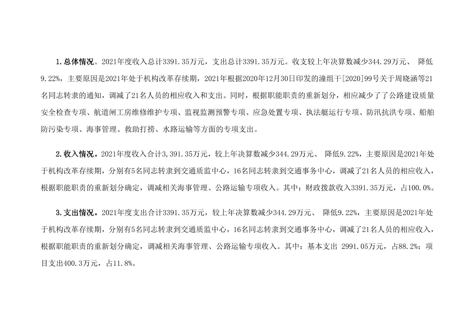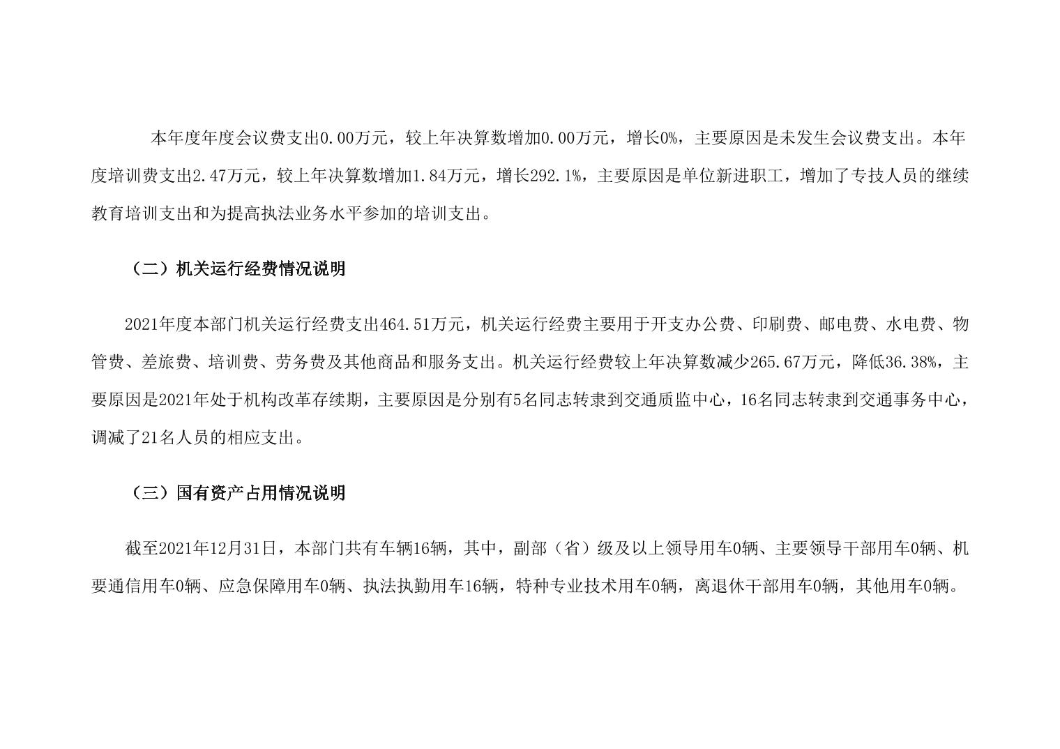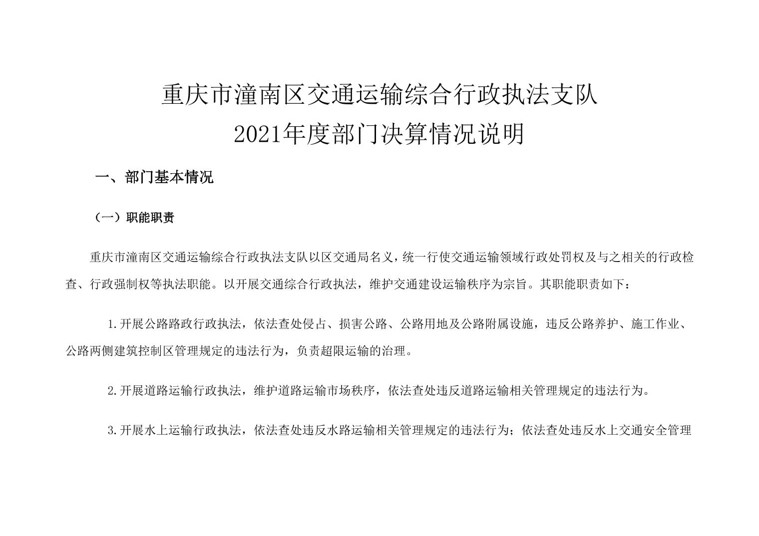 重庆市潼南区交通运输综合行政执法支队2021年部门决算公开