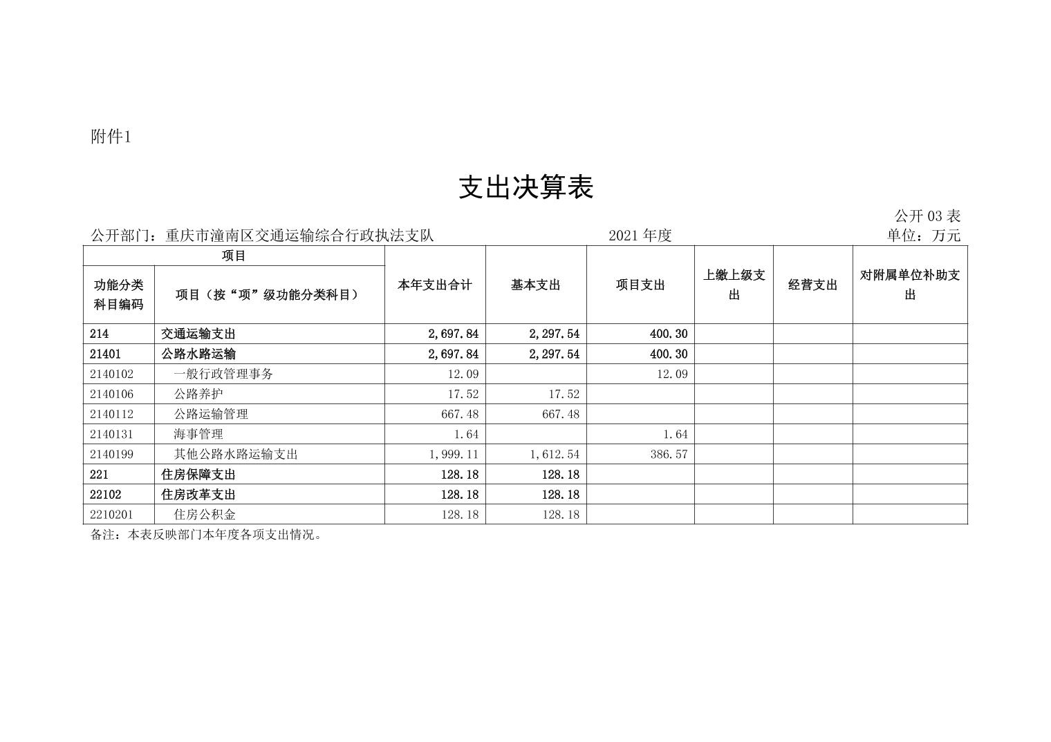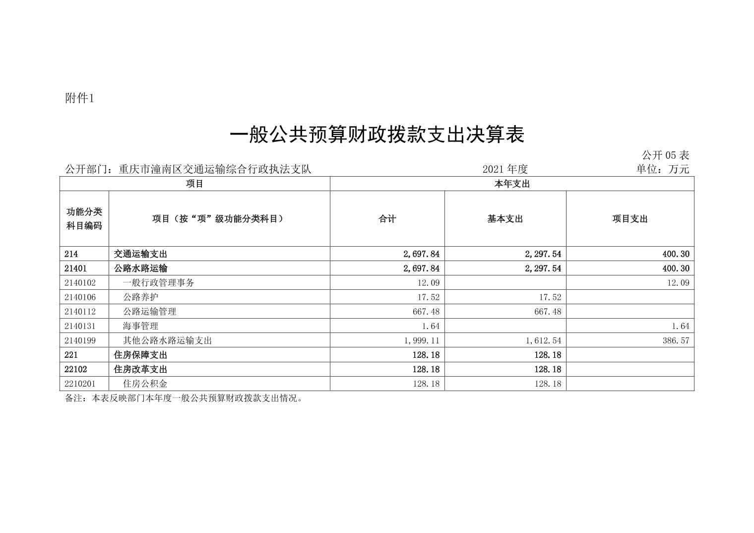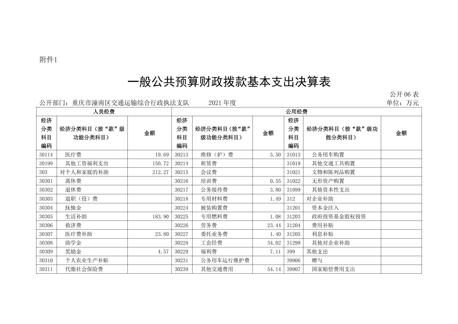 重庆市潼南区交通运输综合行政执法支队2021年部门决算公开