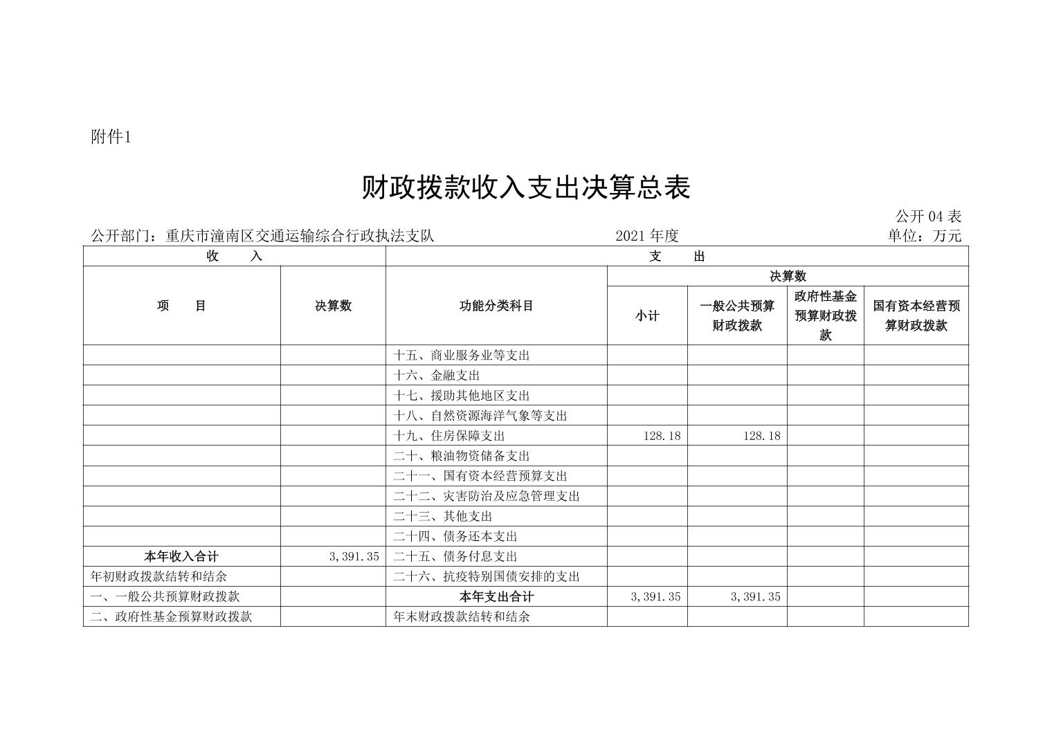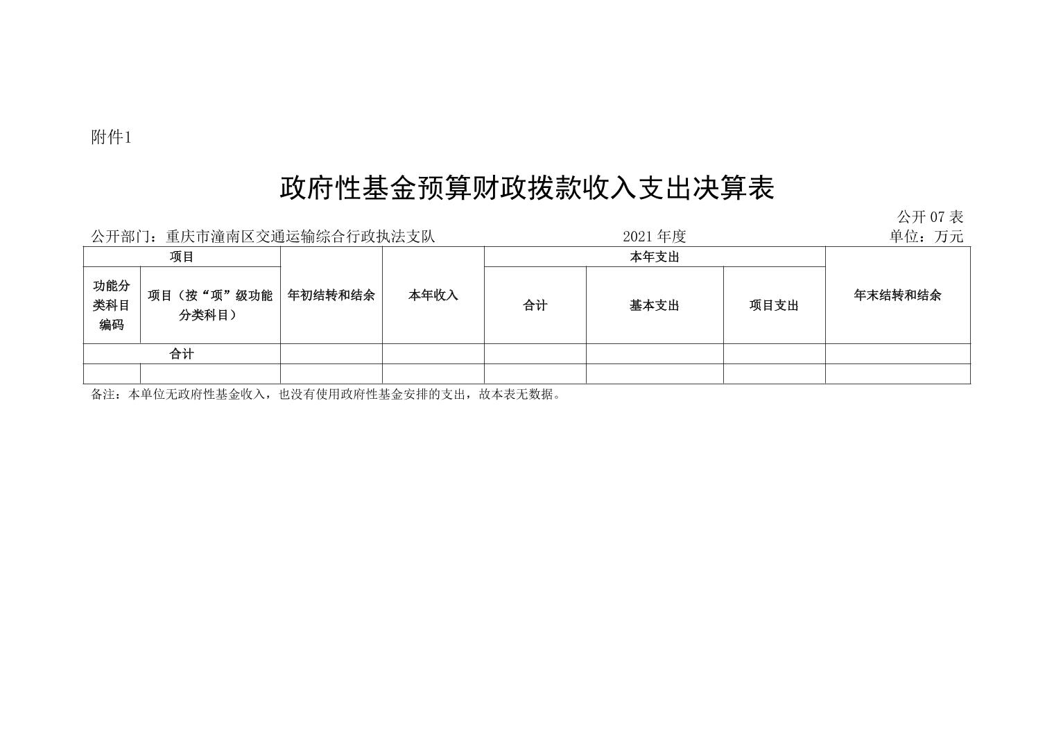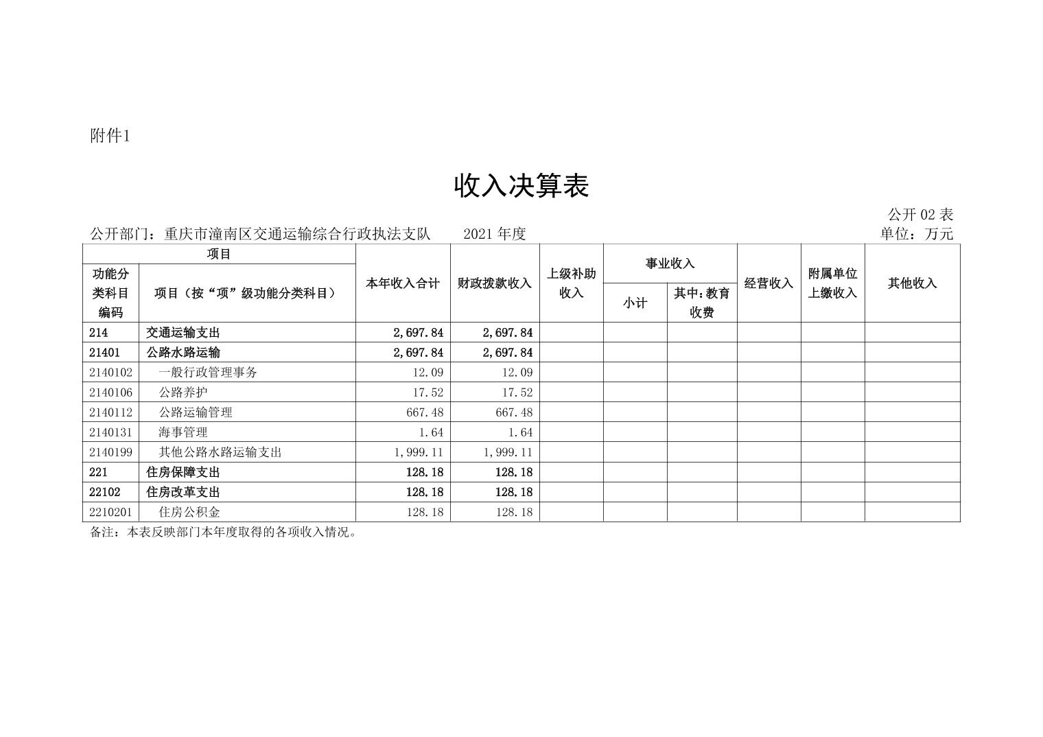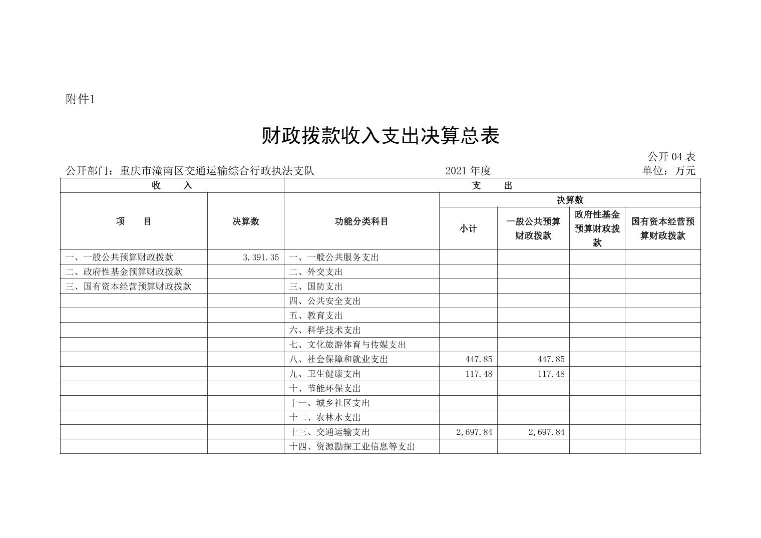 重庆市潼南区交通运输综合行政执法支队2021年部门决算公开