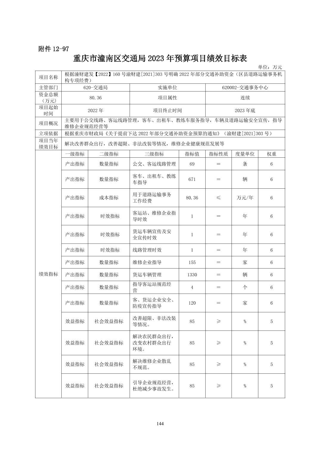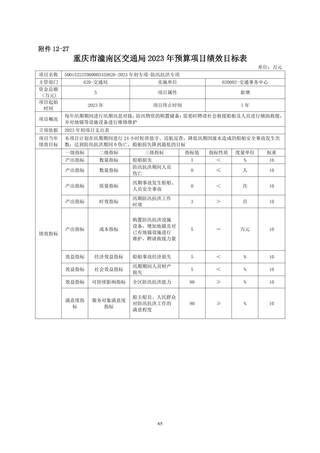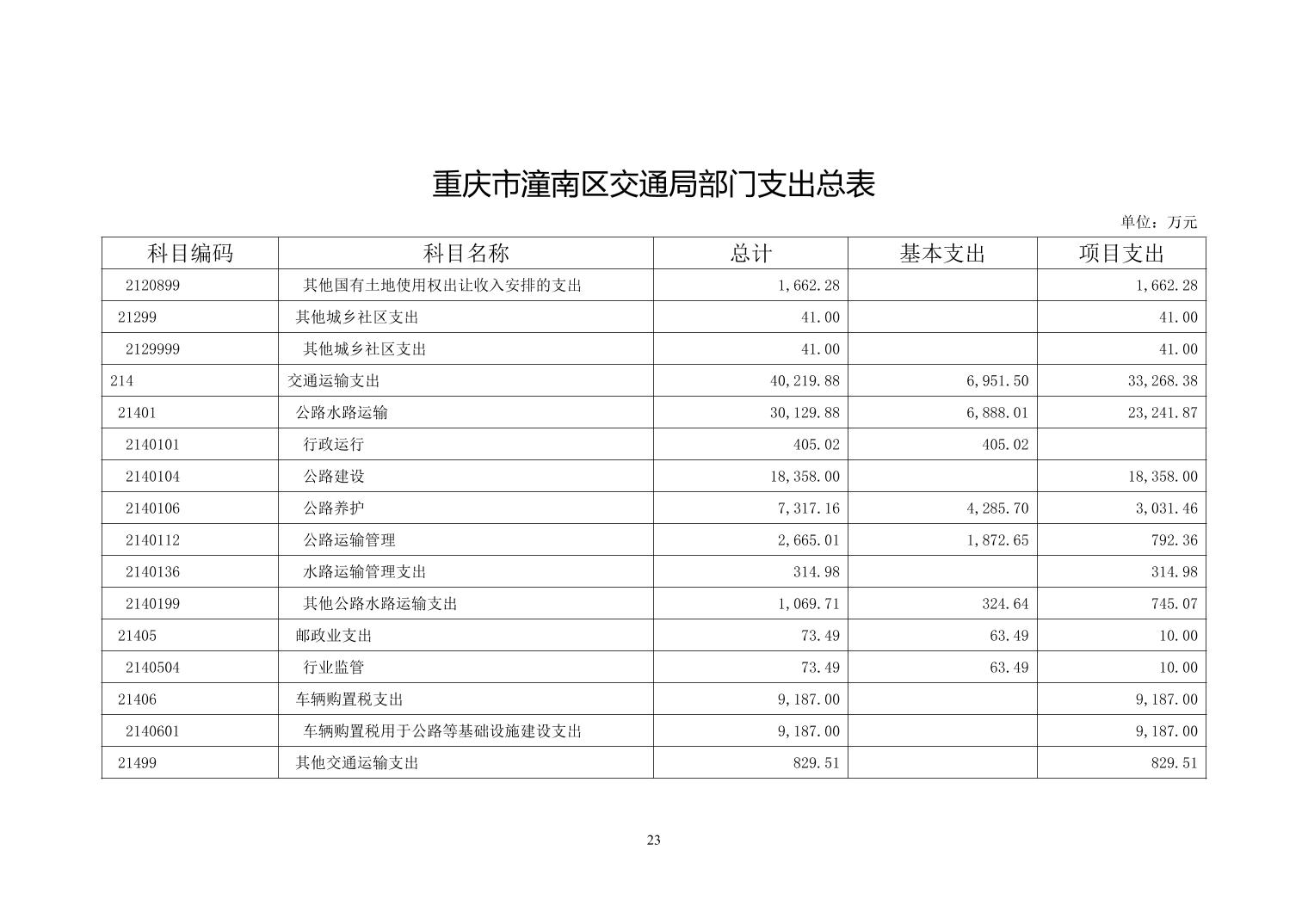 重庆市潼南区交通局2023年部门预算公开