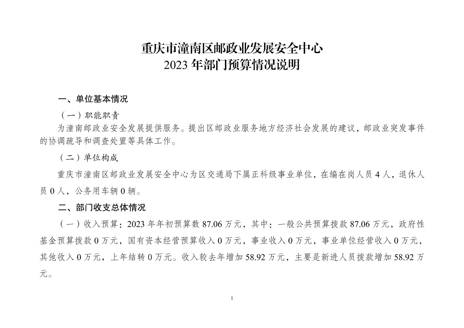 重庆市潼南区邮政业发展安全中心2023年部门预算情况说明