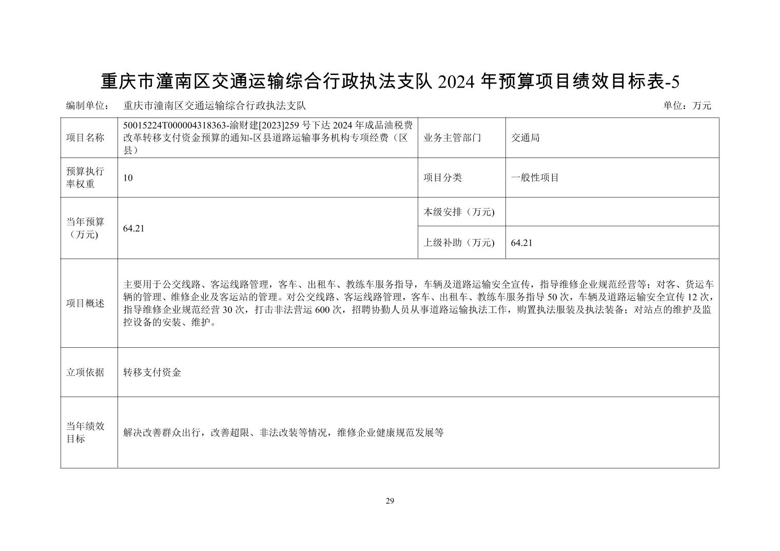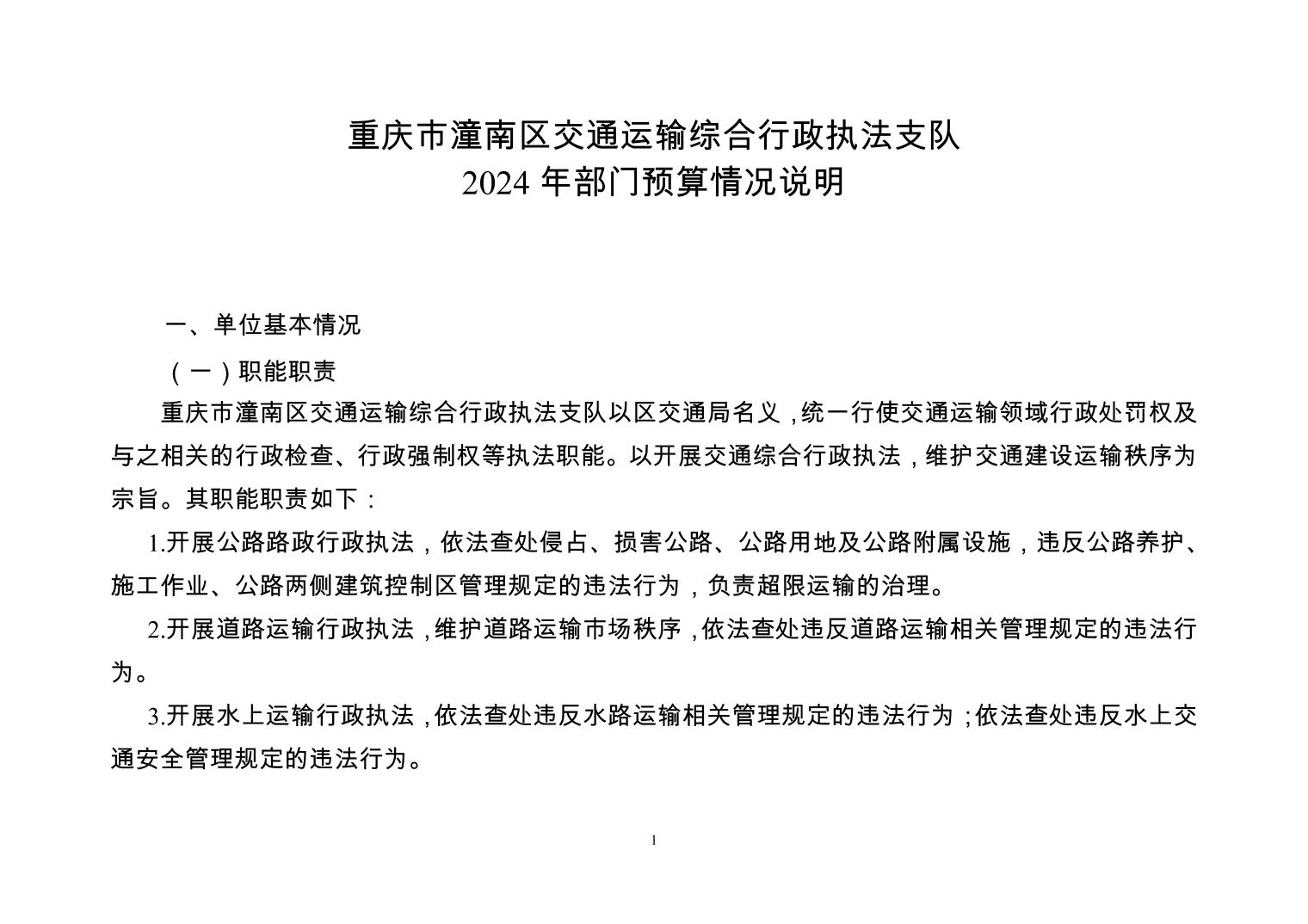 重庆市潼南区交通运输综合行政执法支队2024年部门预算公开