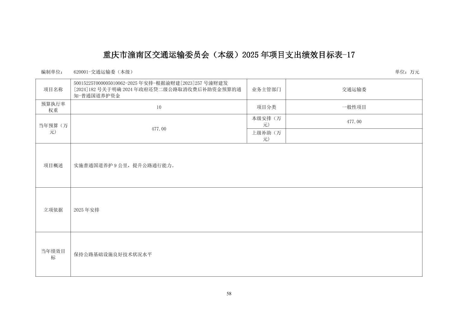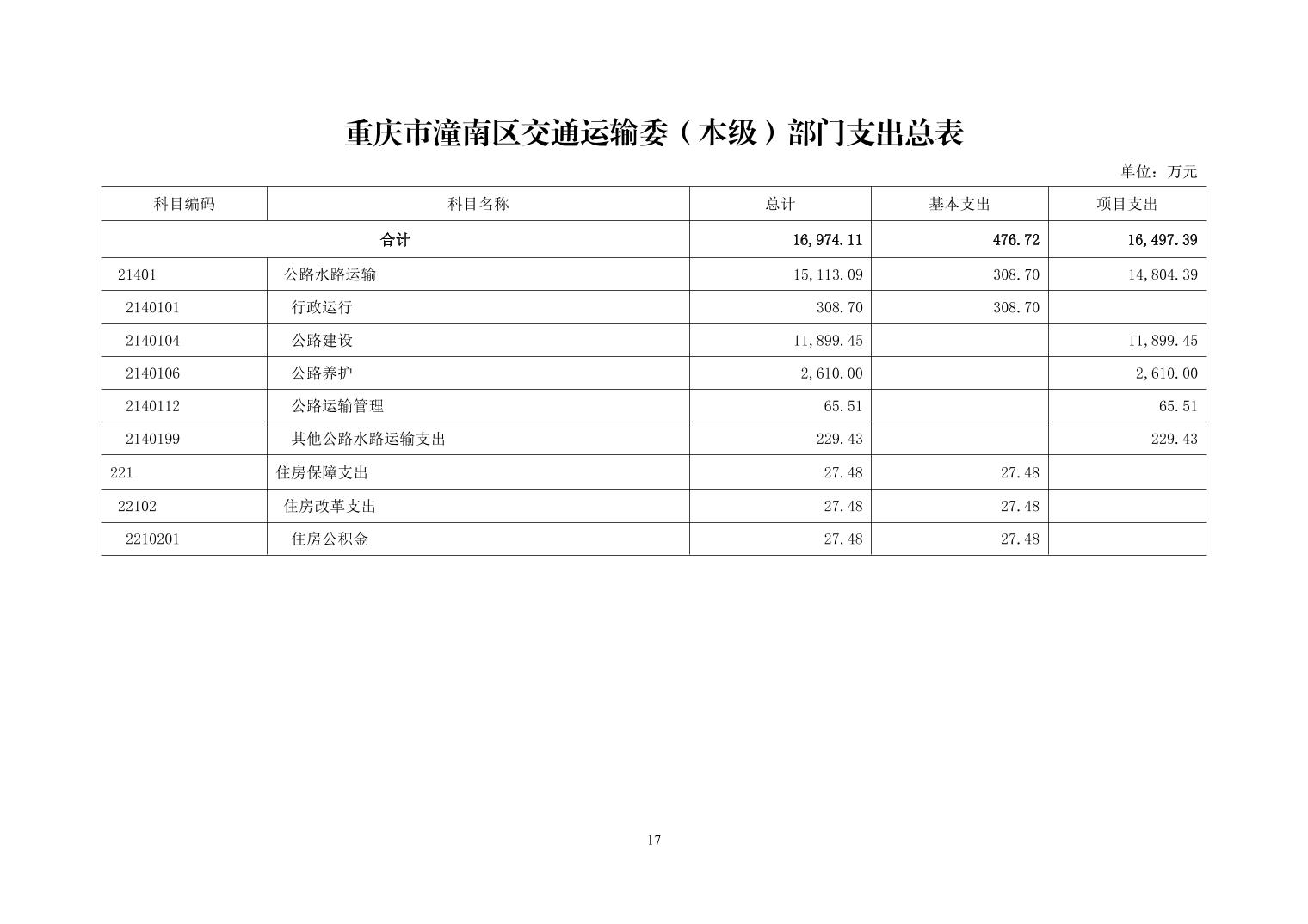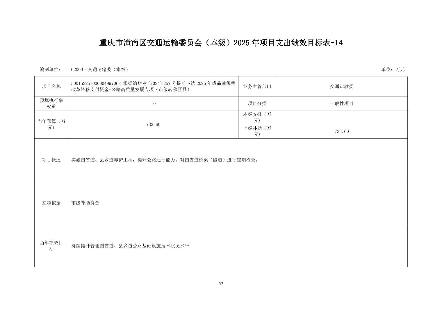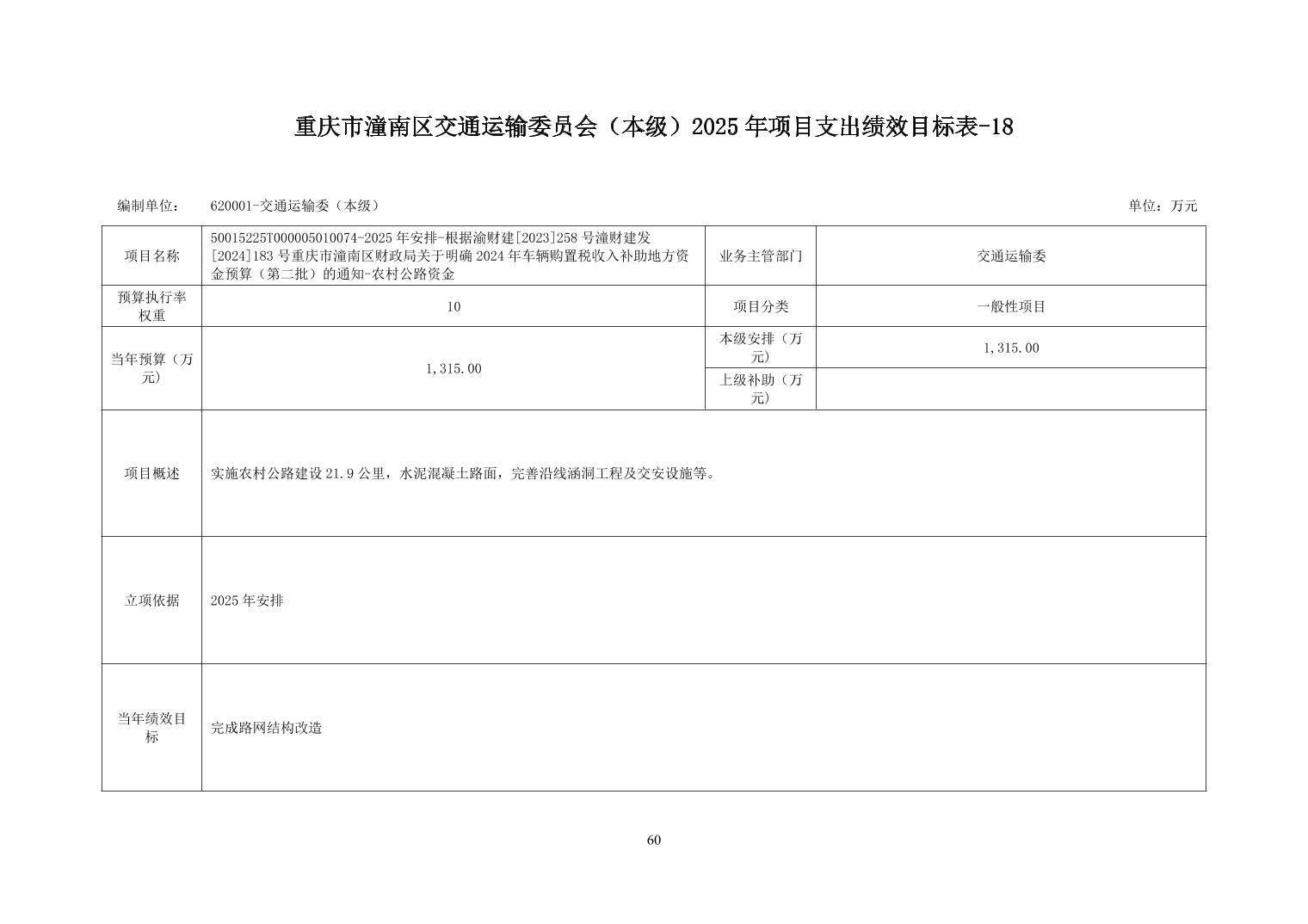 重庆市潼南区交通运输委员会(本级)2025年预算公开
