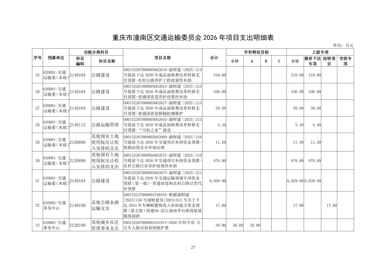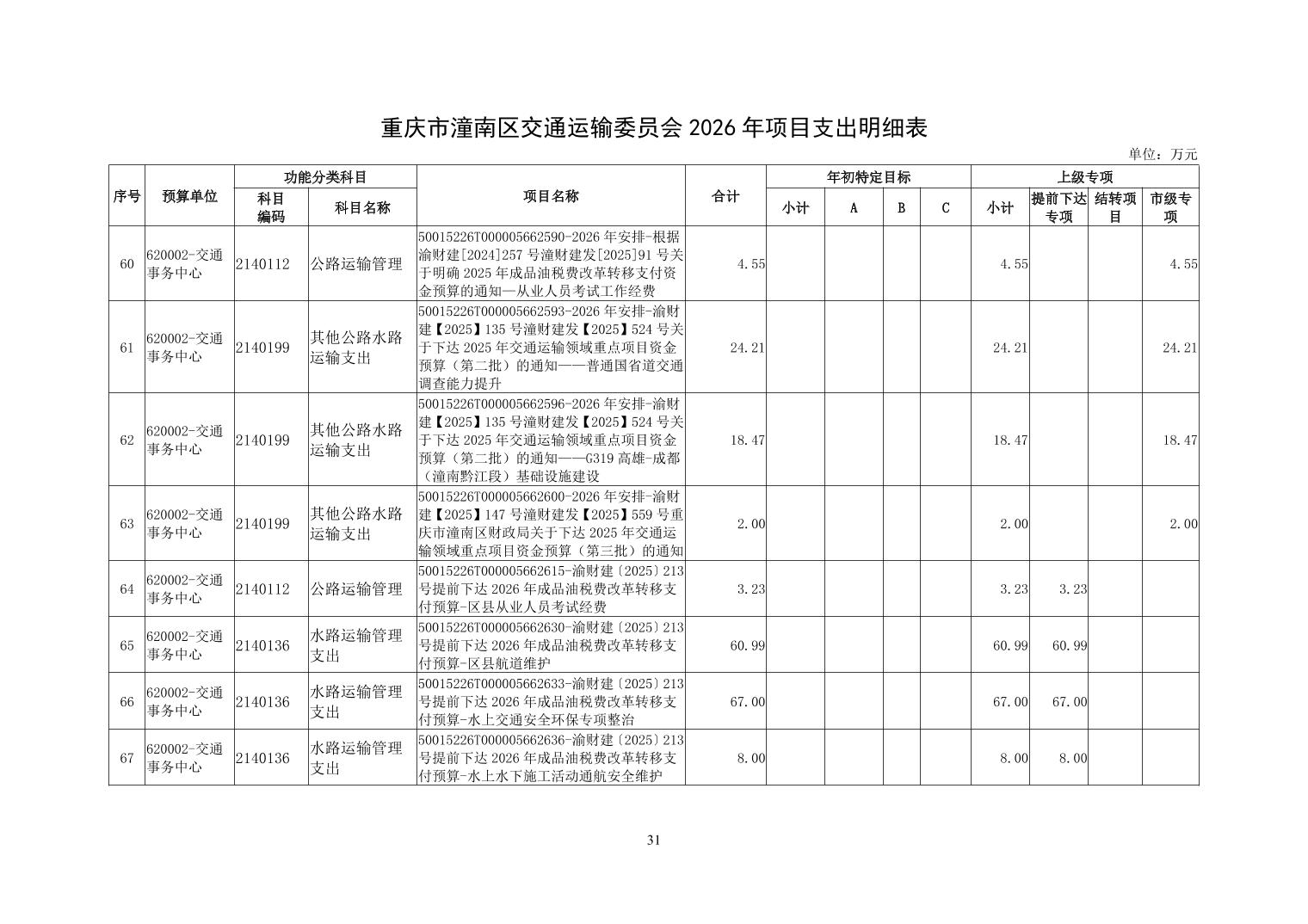 重庆市潼南区交通运输委员会2026年部门预算公开