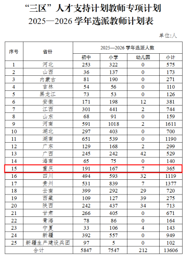 “三区”人才支持计划教师专项计划重庆计划选派教师365名