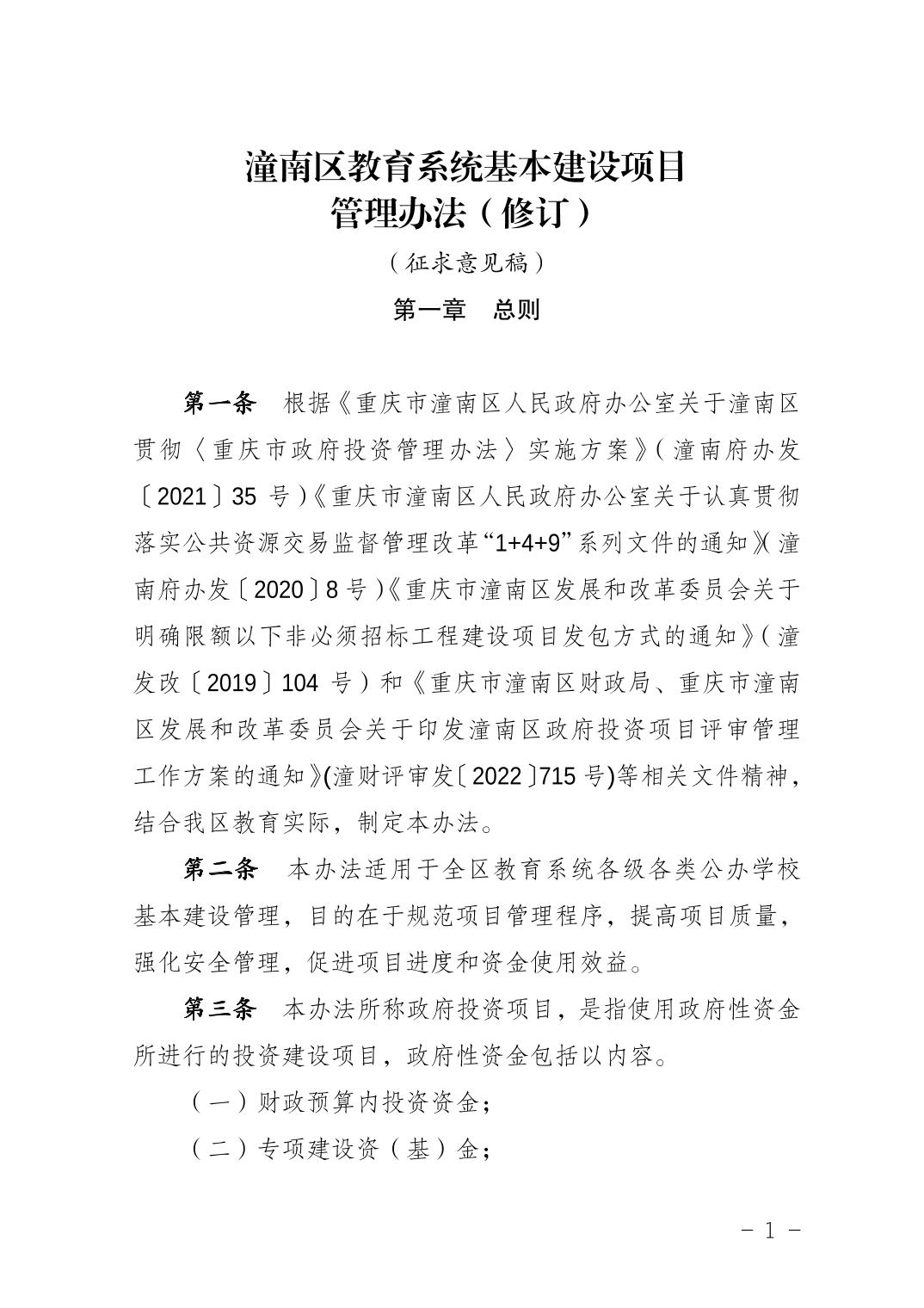 重庆市潼南区教育委员会关于征求《潼南区教育系统基本建设项目管理办法(修订)》意见建议的公告.docx