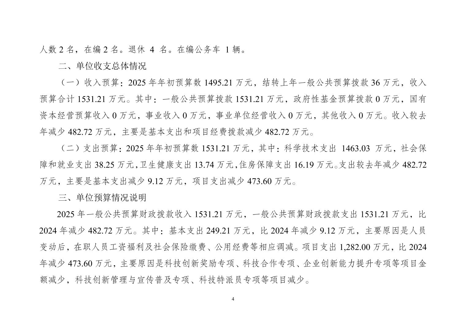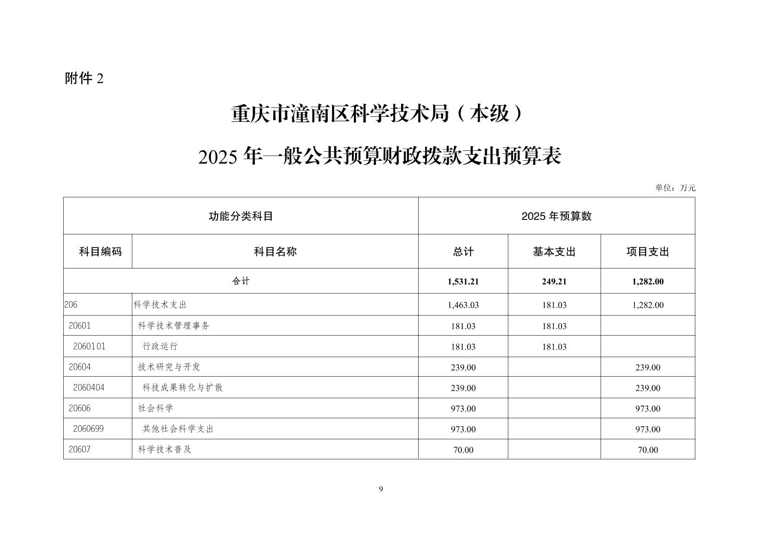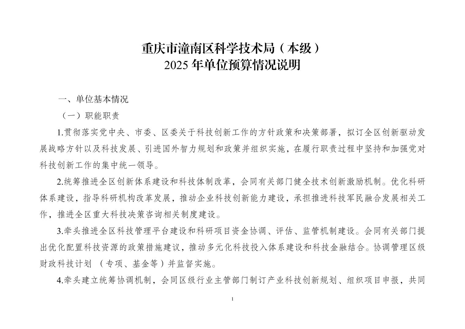 重庆市潼南区科学技术局(本级)2025年单位预算情况说明