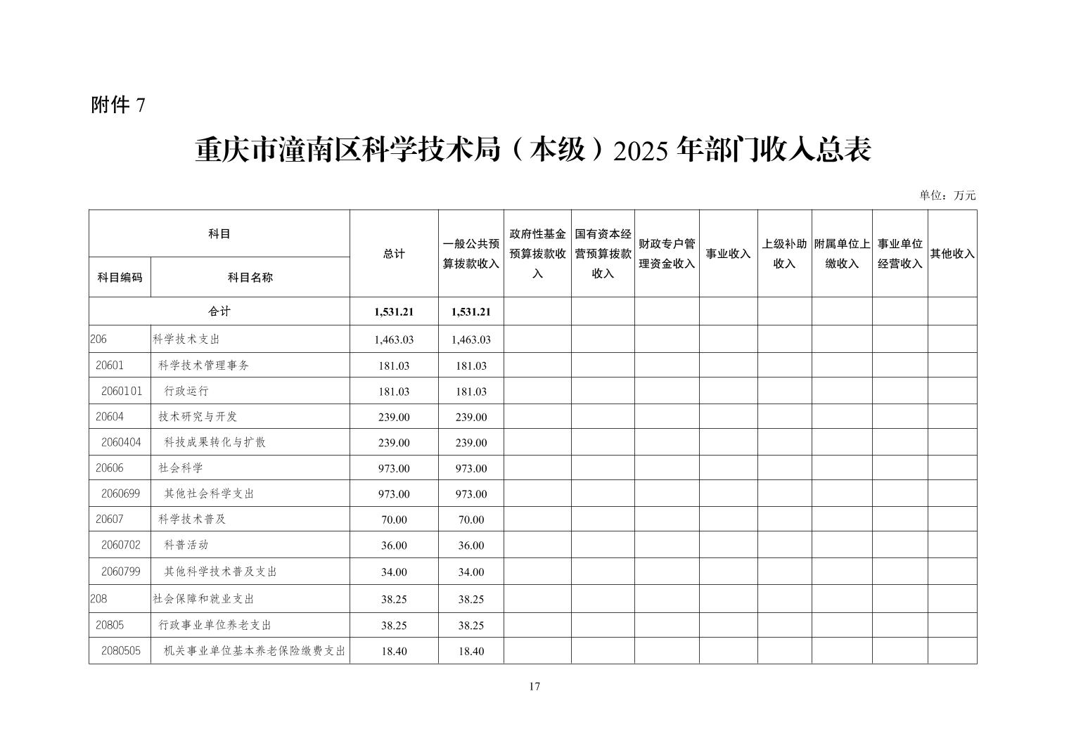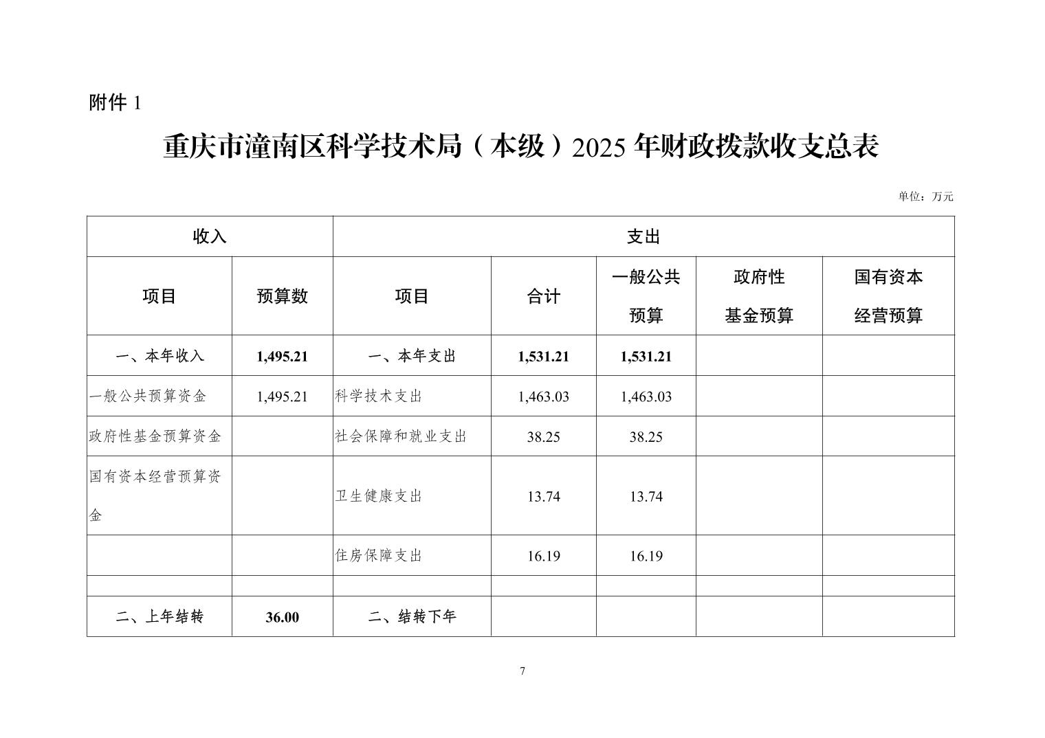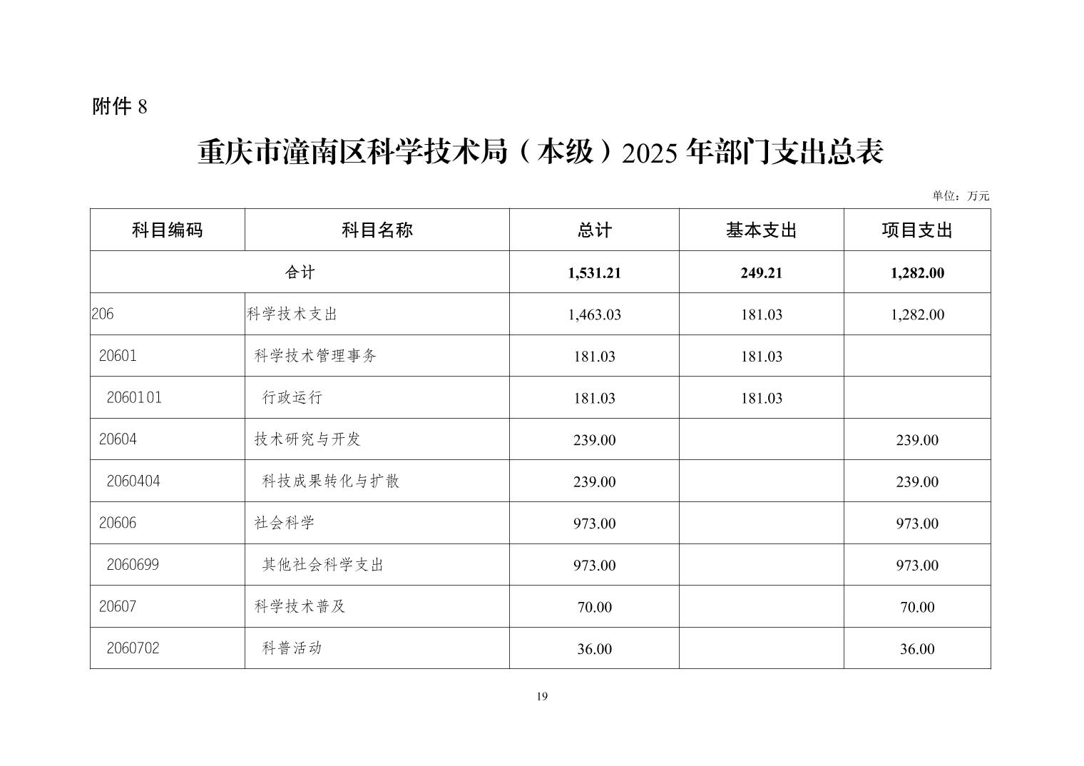 重庆市潼南区科学技术局(本级)2025年单位预算情况说明