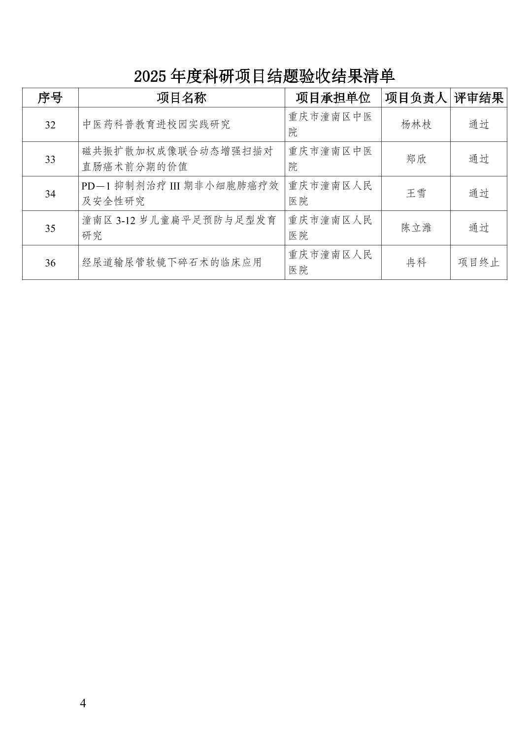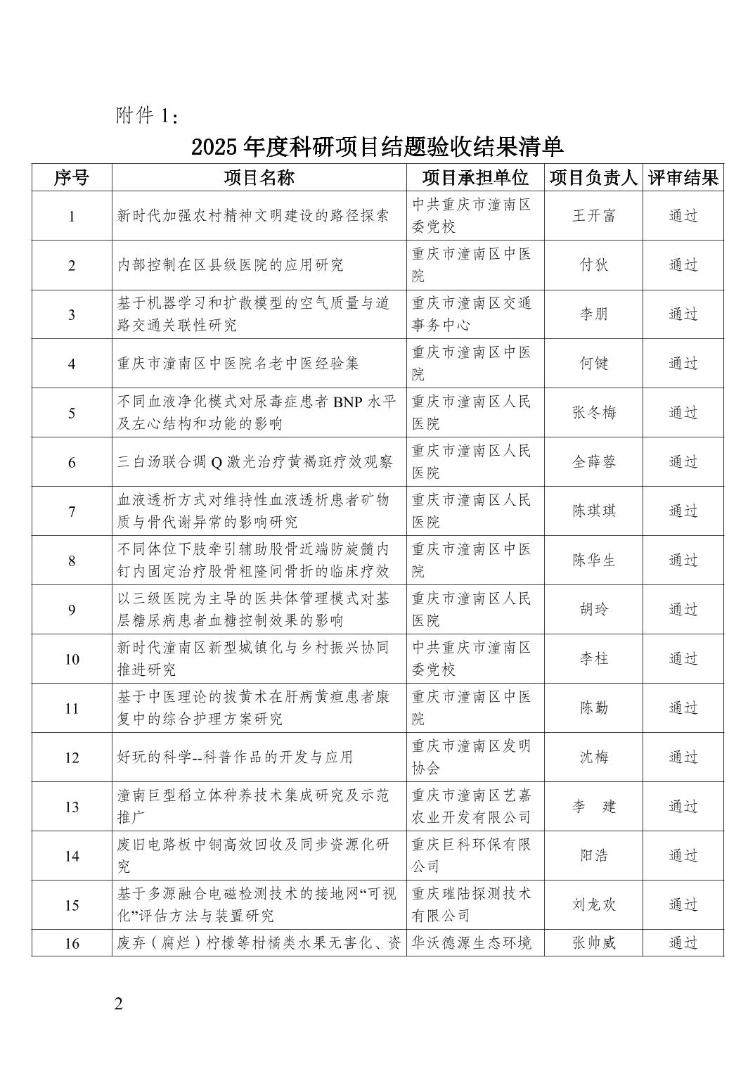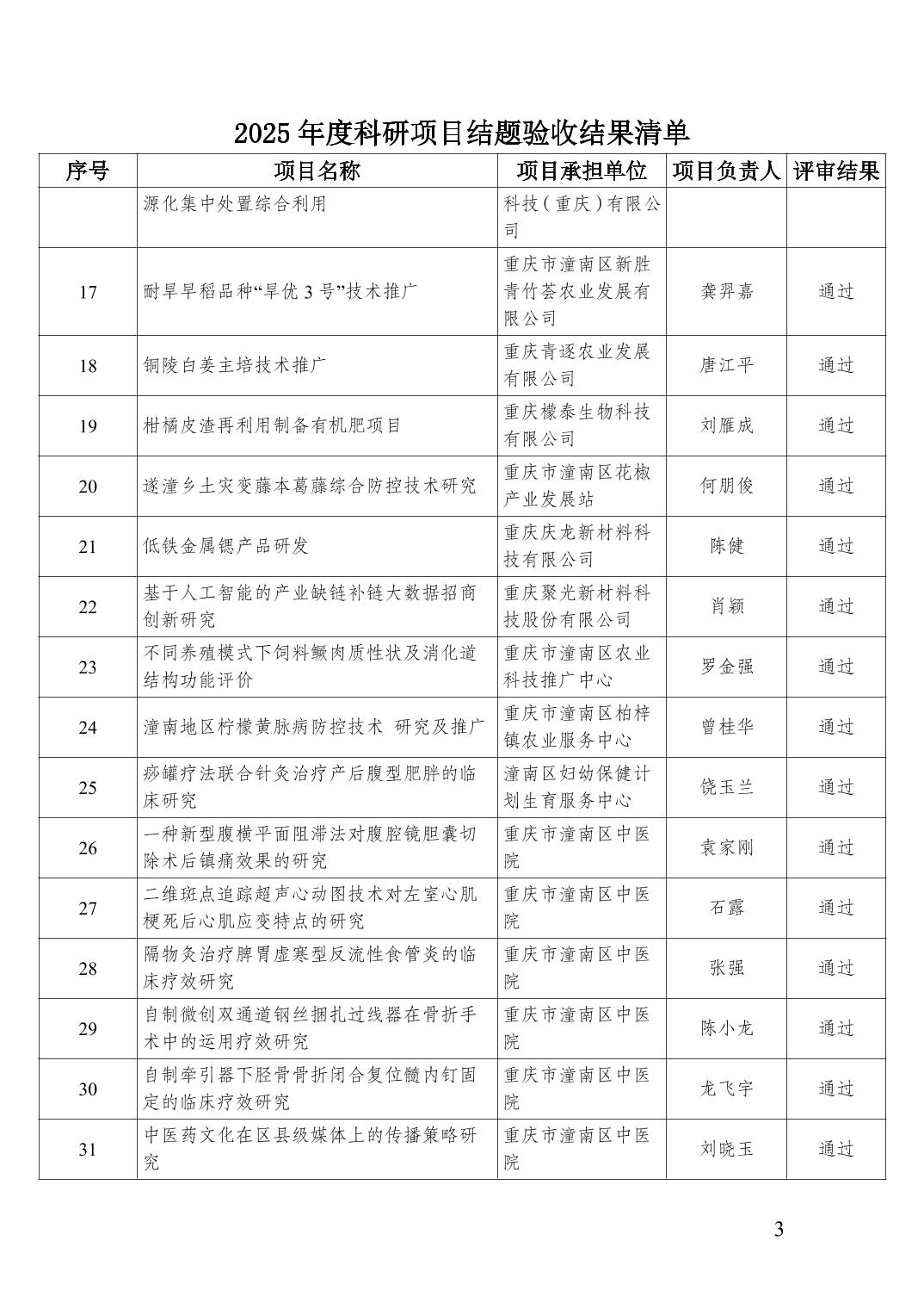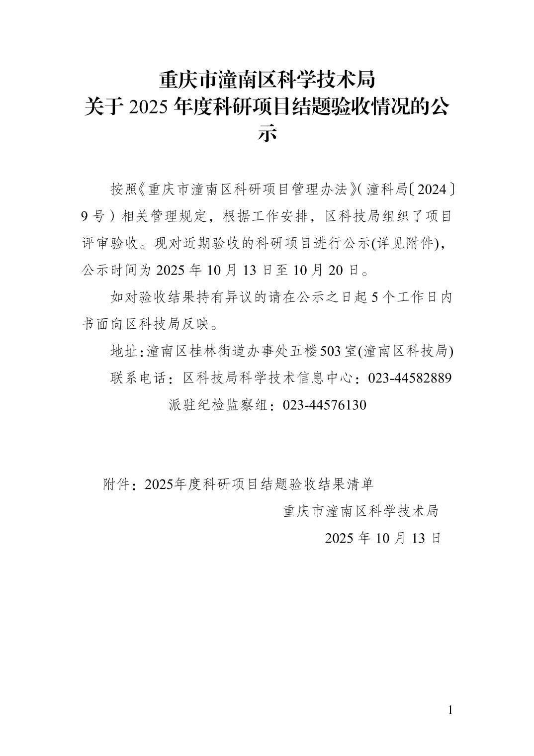重庆市潼南区科学技术局关于2025年度科研项目结题验收情况的公示