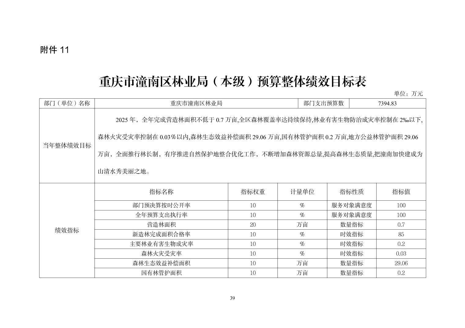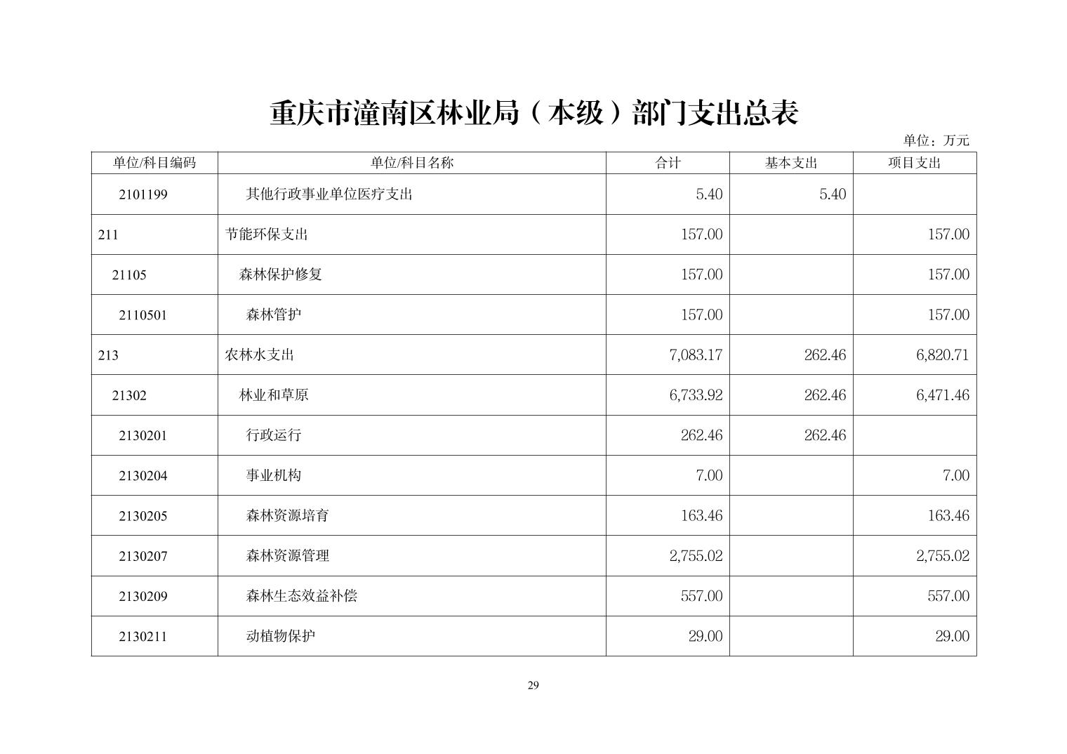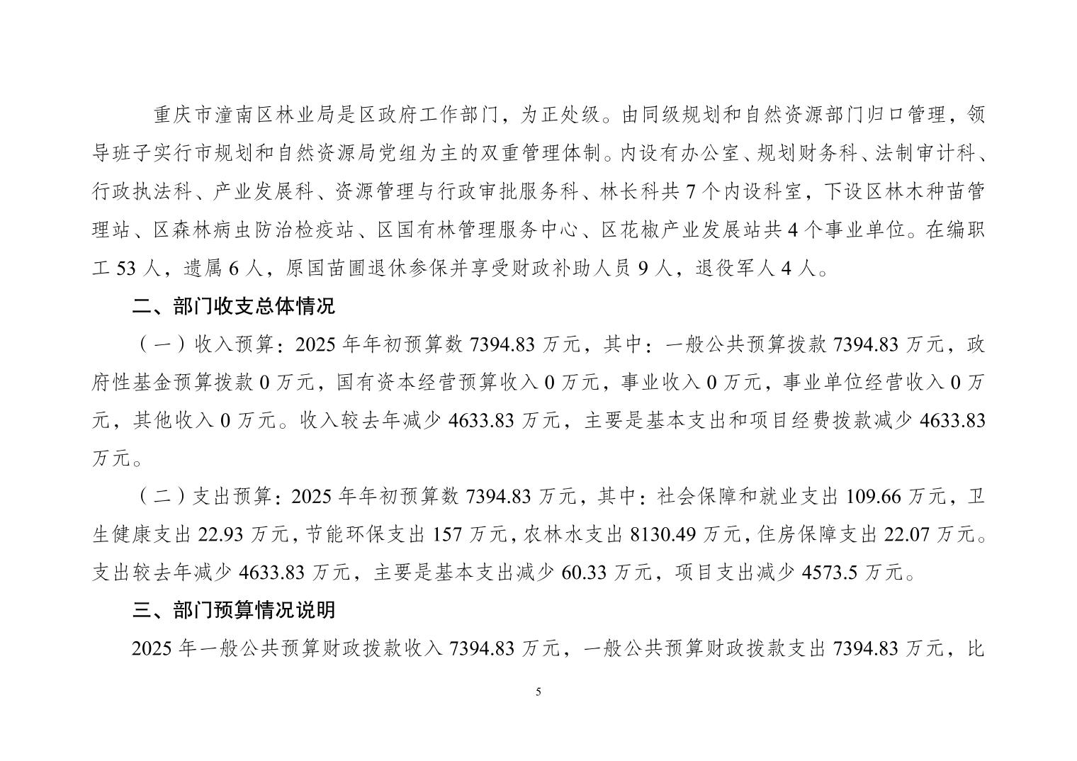 重庆市潼南区林业局(本级)2025年部门预算公开