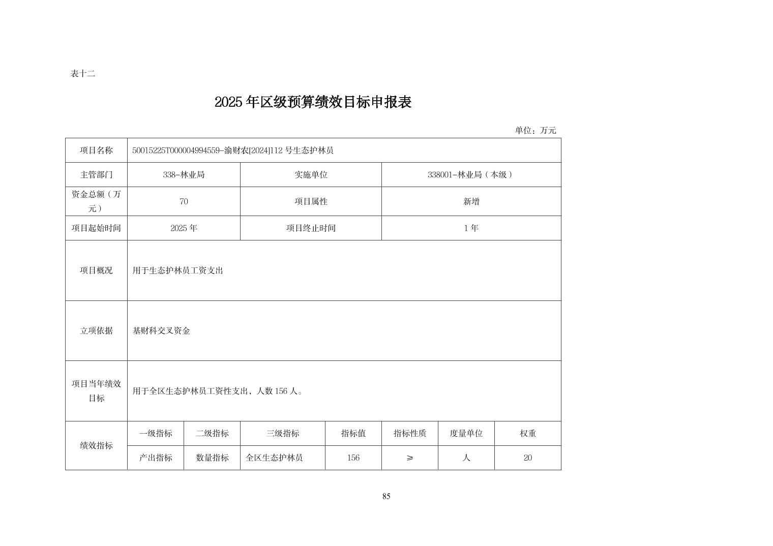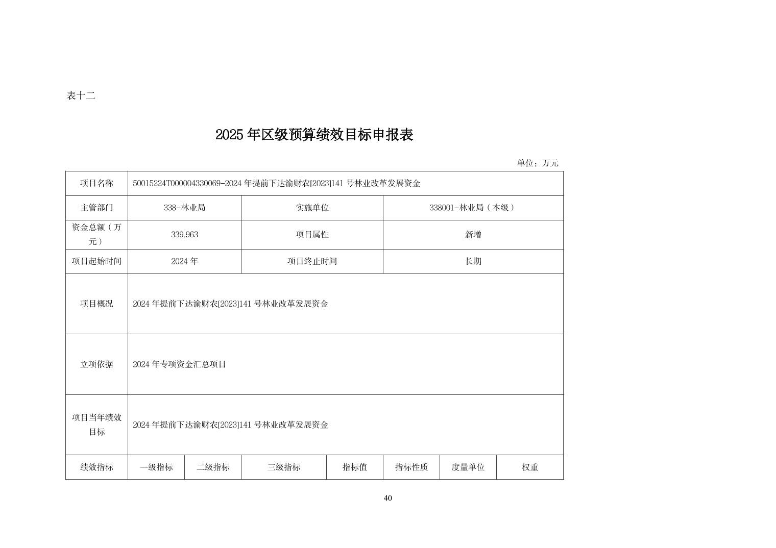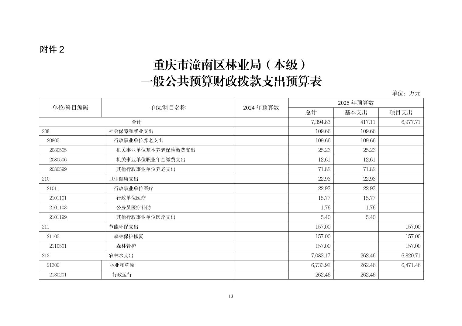 重庆市潼南区林业局(本级)2025年部门预算公开