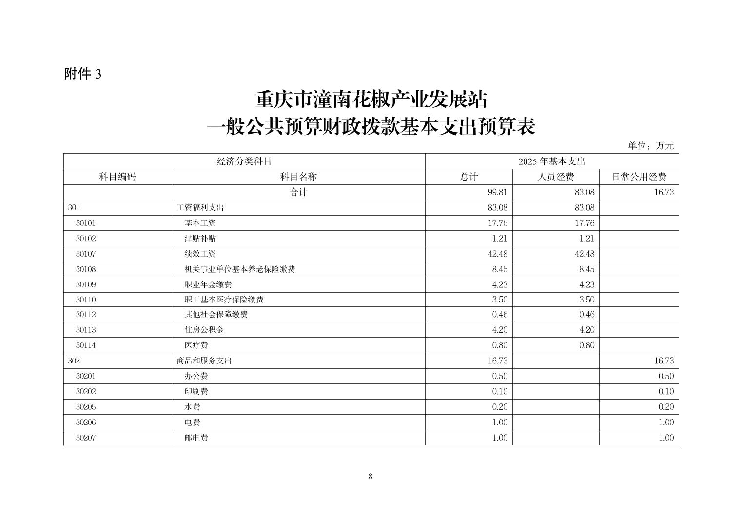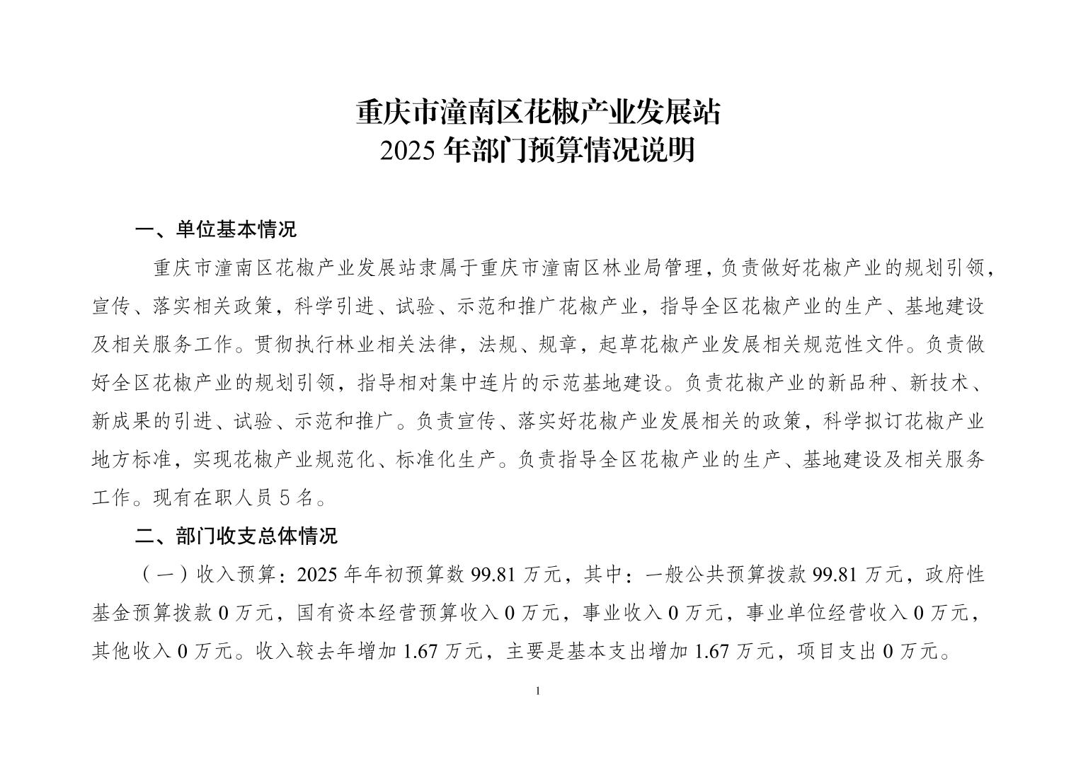 重庆市潼南区花椒产业发展站2025年部门预算公开