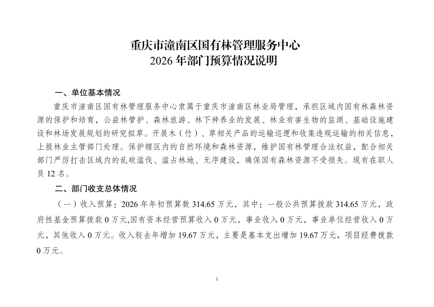 重庆市潼南区国有林管理服务中心2026年部门预算公开