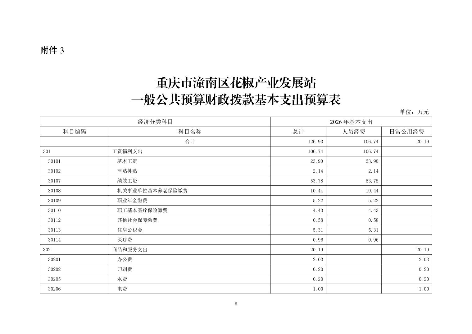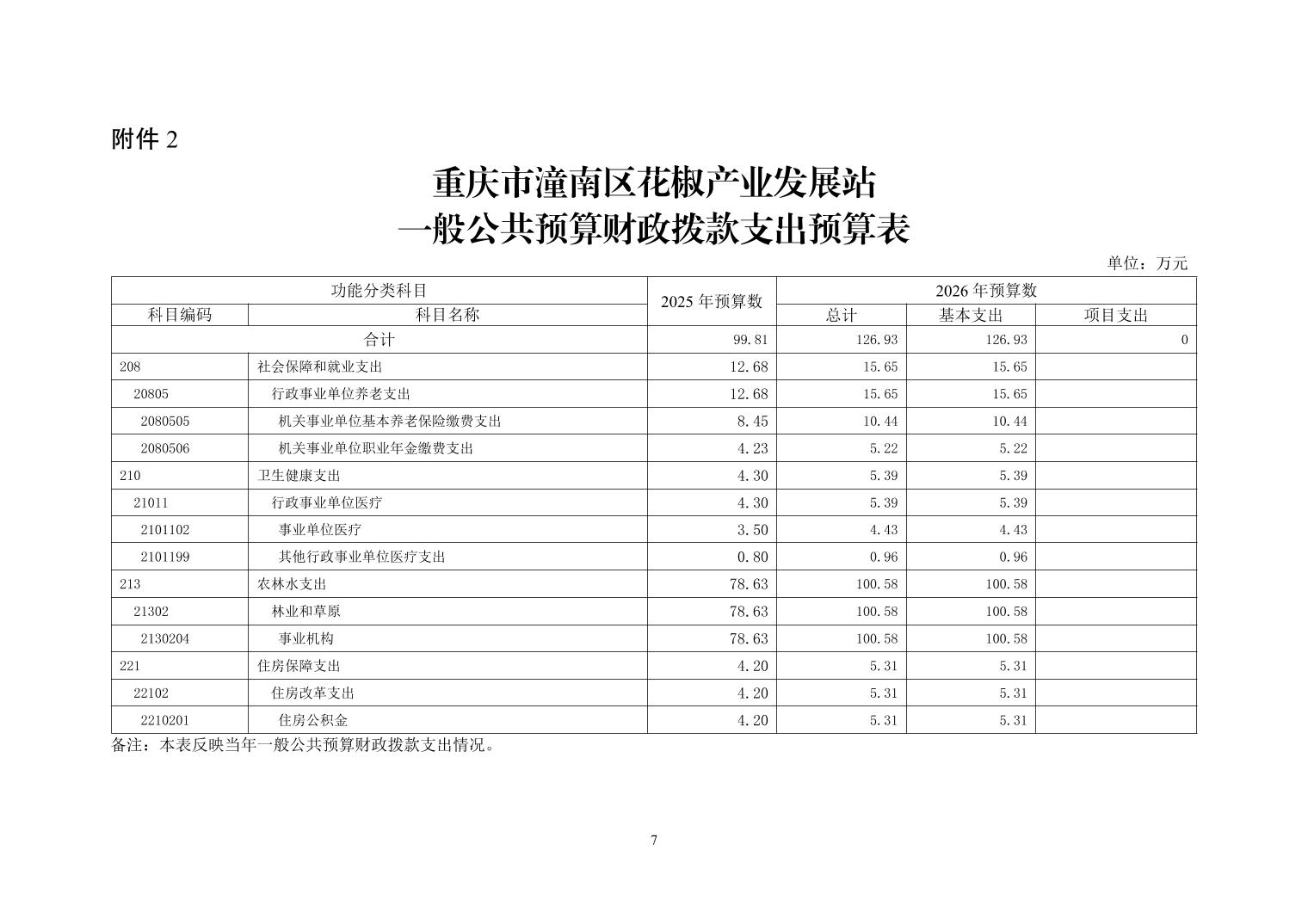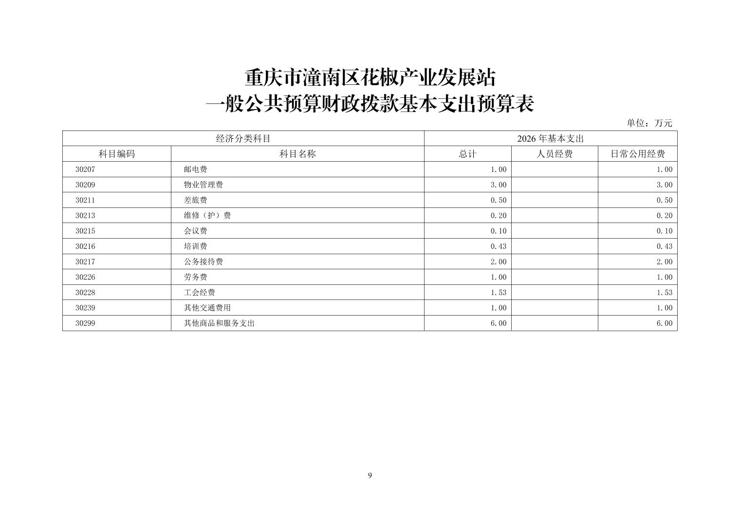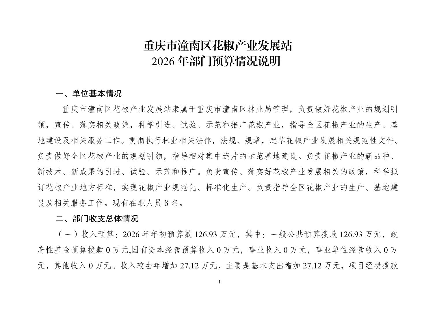 重庆市潼南区花椒产业发展站2026年部门预算公开