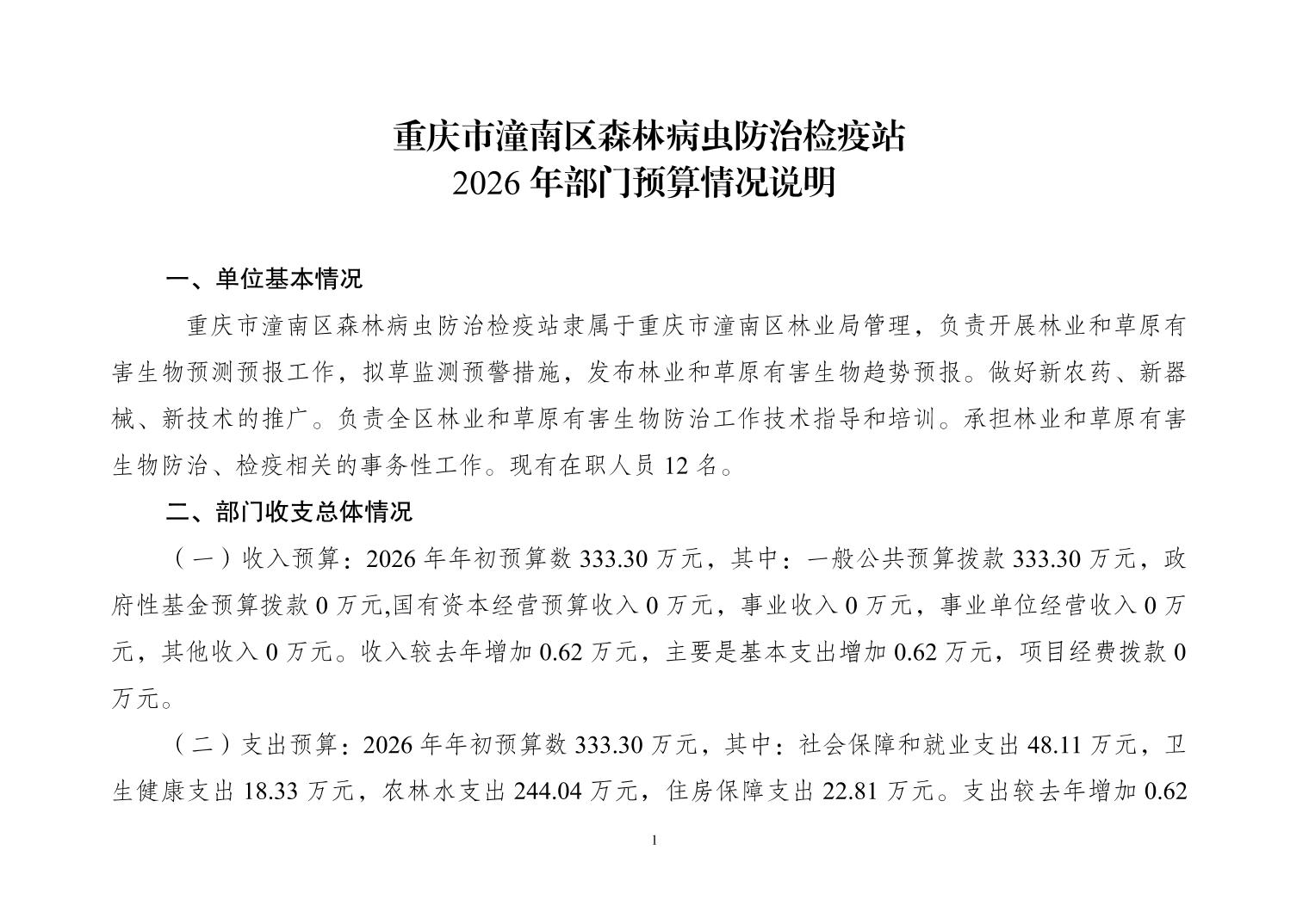重庆市潼南区森林病虫防治检疫站2026年部门预算公开