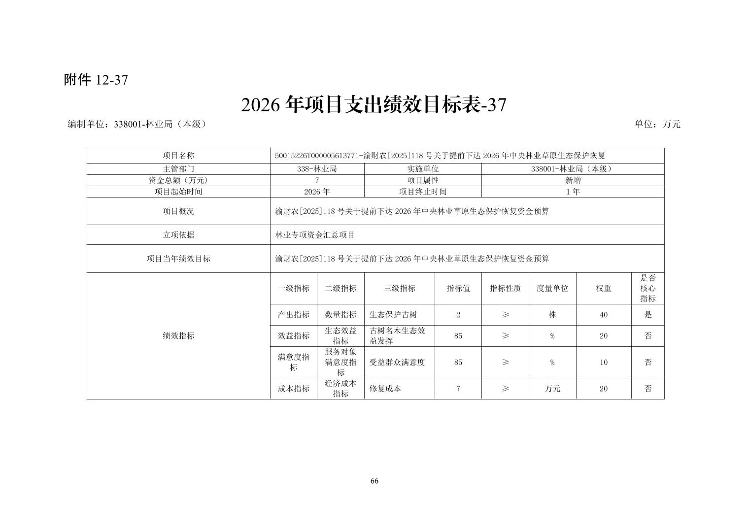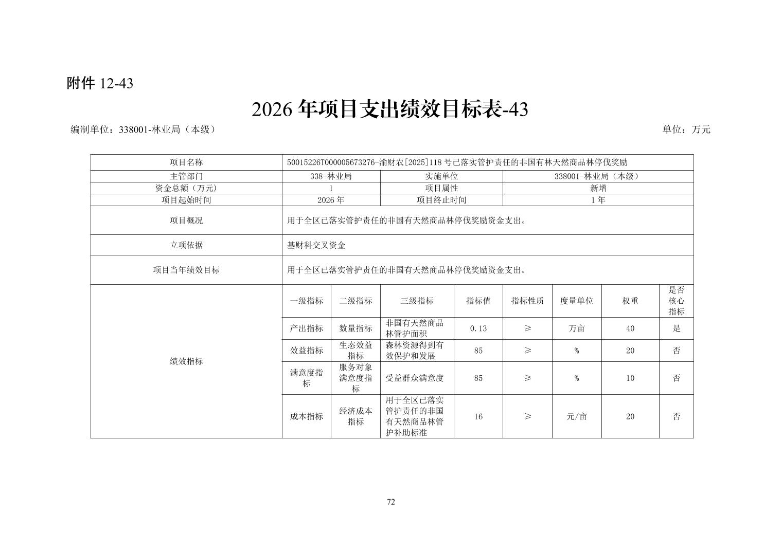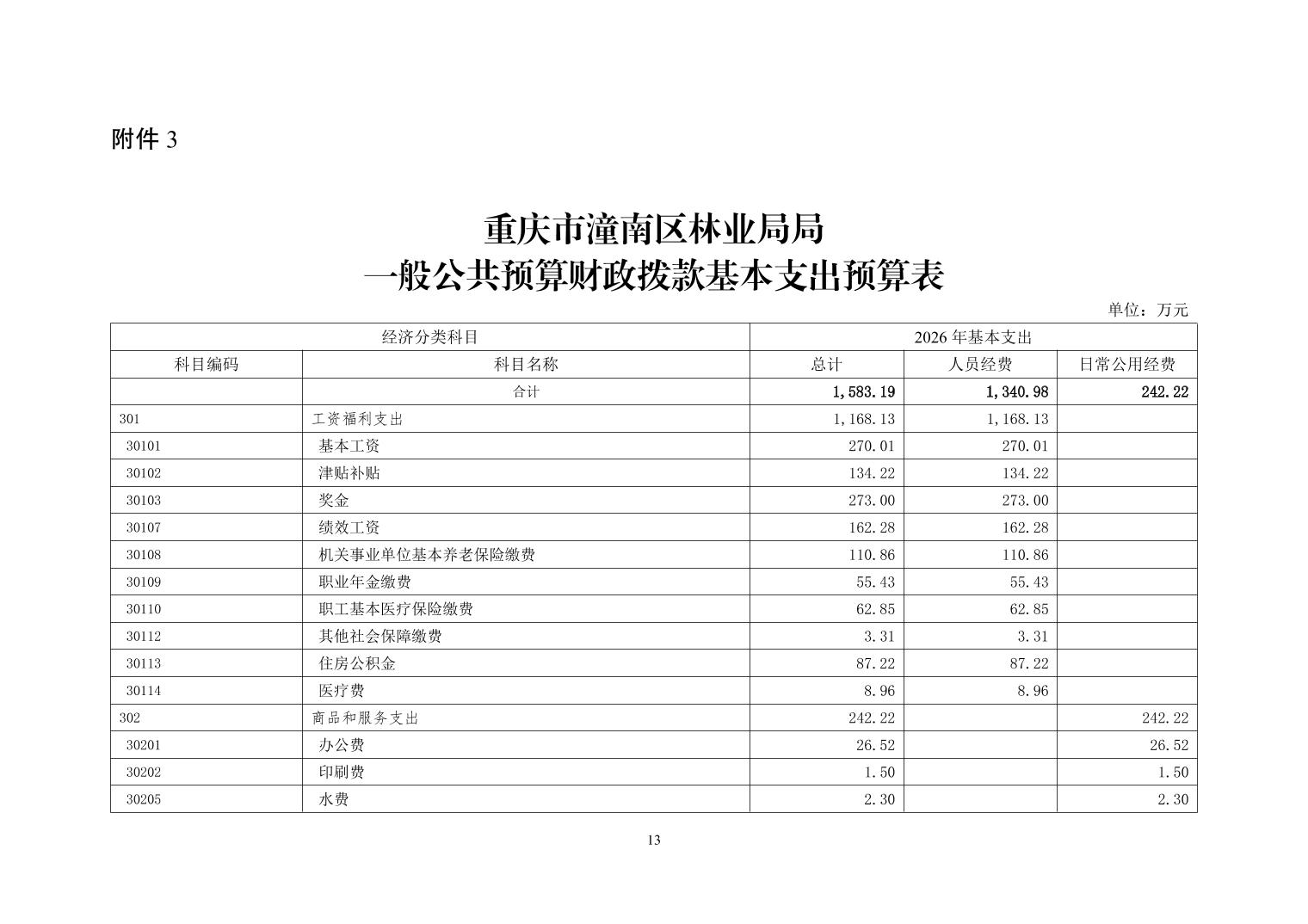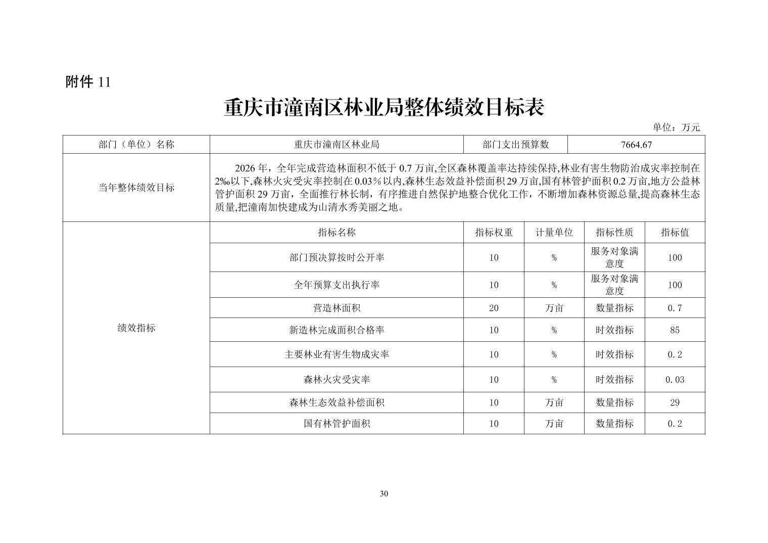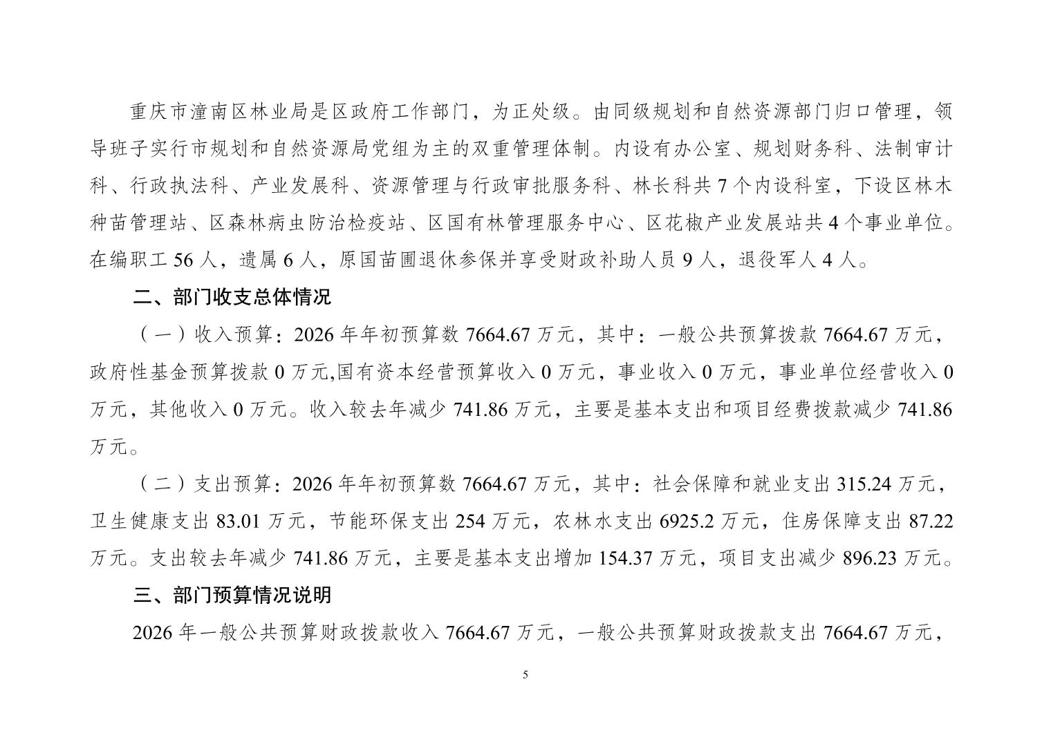 重庆市潼南区林业局2026年部门预算公开
