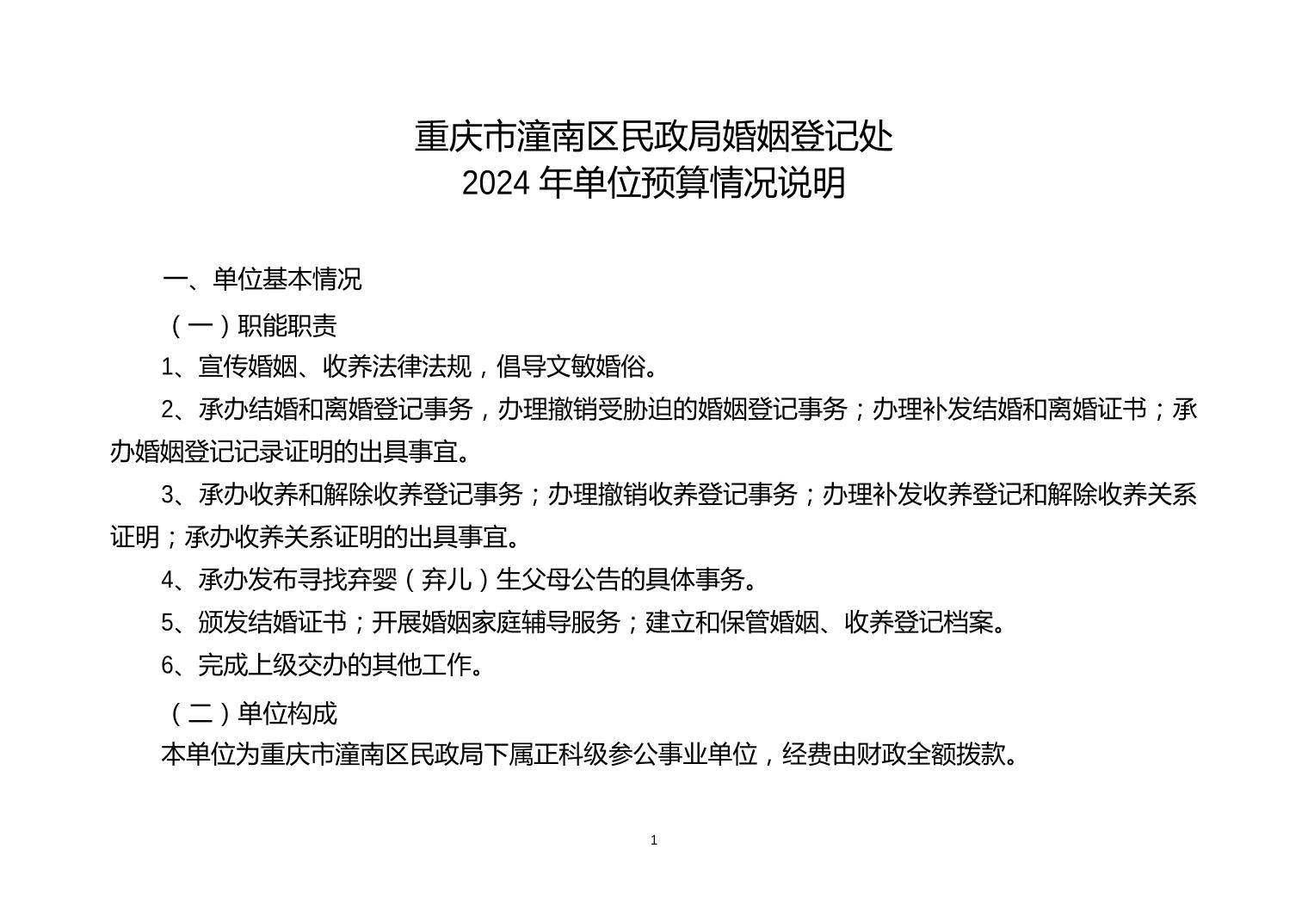 重庆市潼南区民政局婚姻登记处2024年单位预算公开