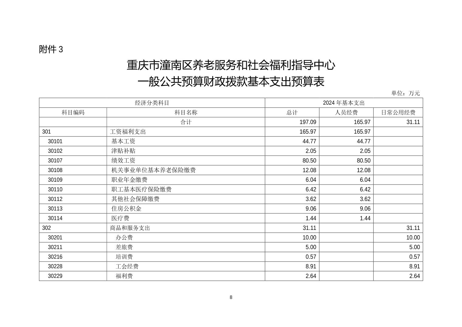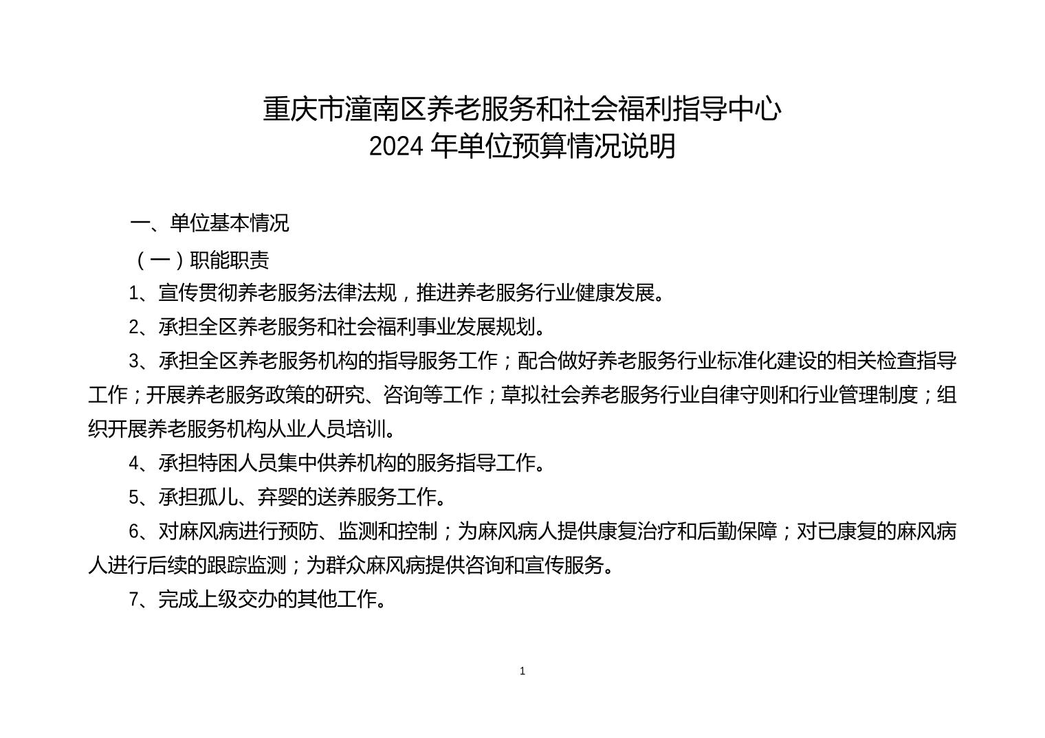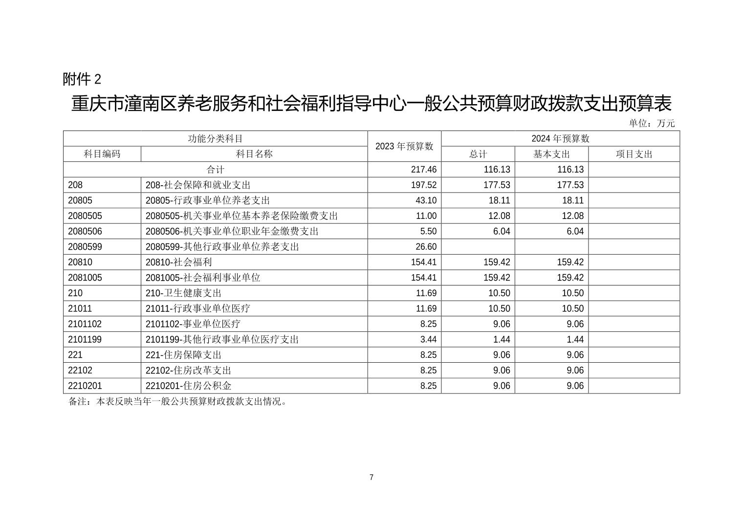 重庆市潼南区养老服务和社会福利指导中心2024年单位预算公开