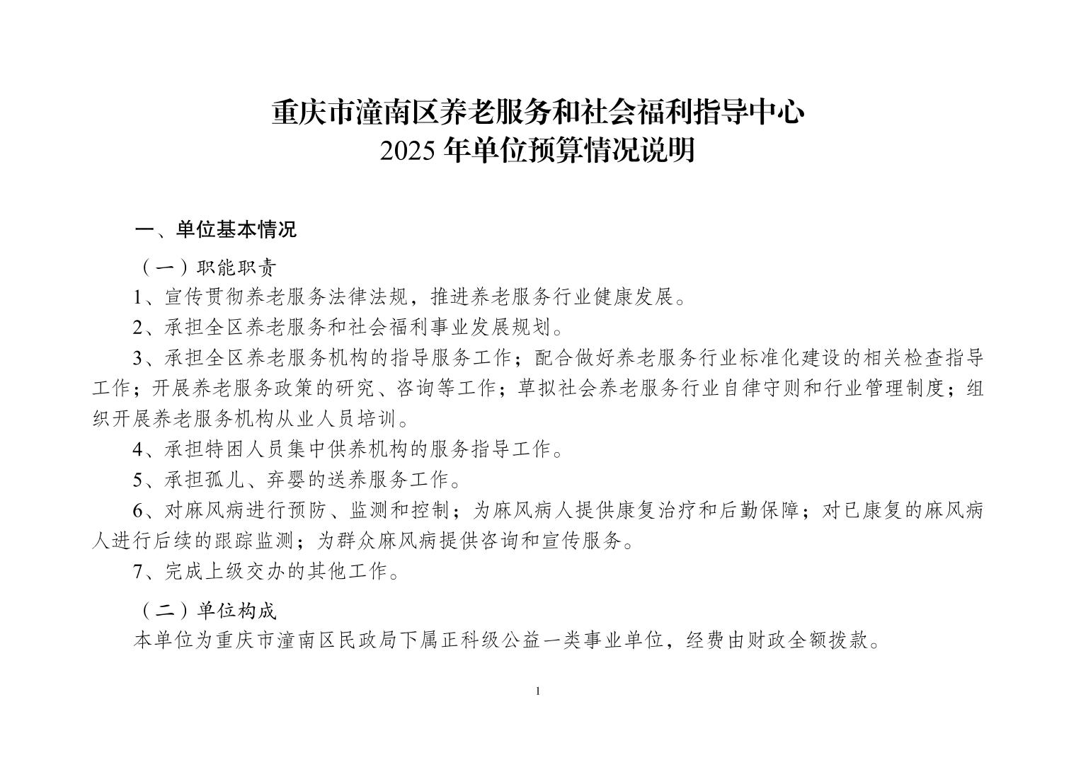重庆市潼南区养老服务和社会福利指导中心2025年单位预算情况说明