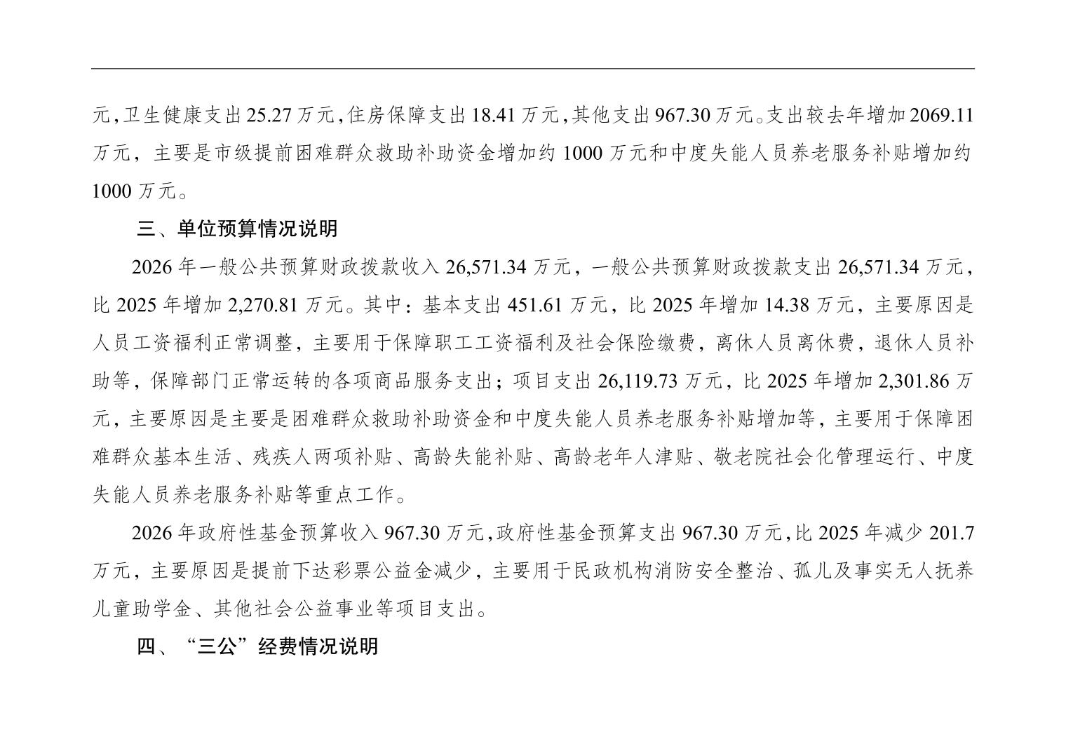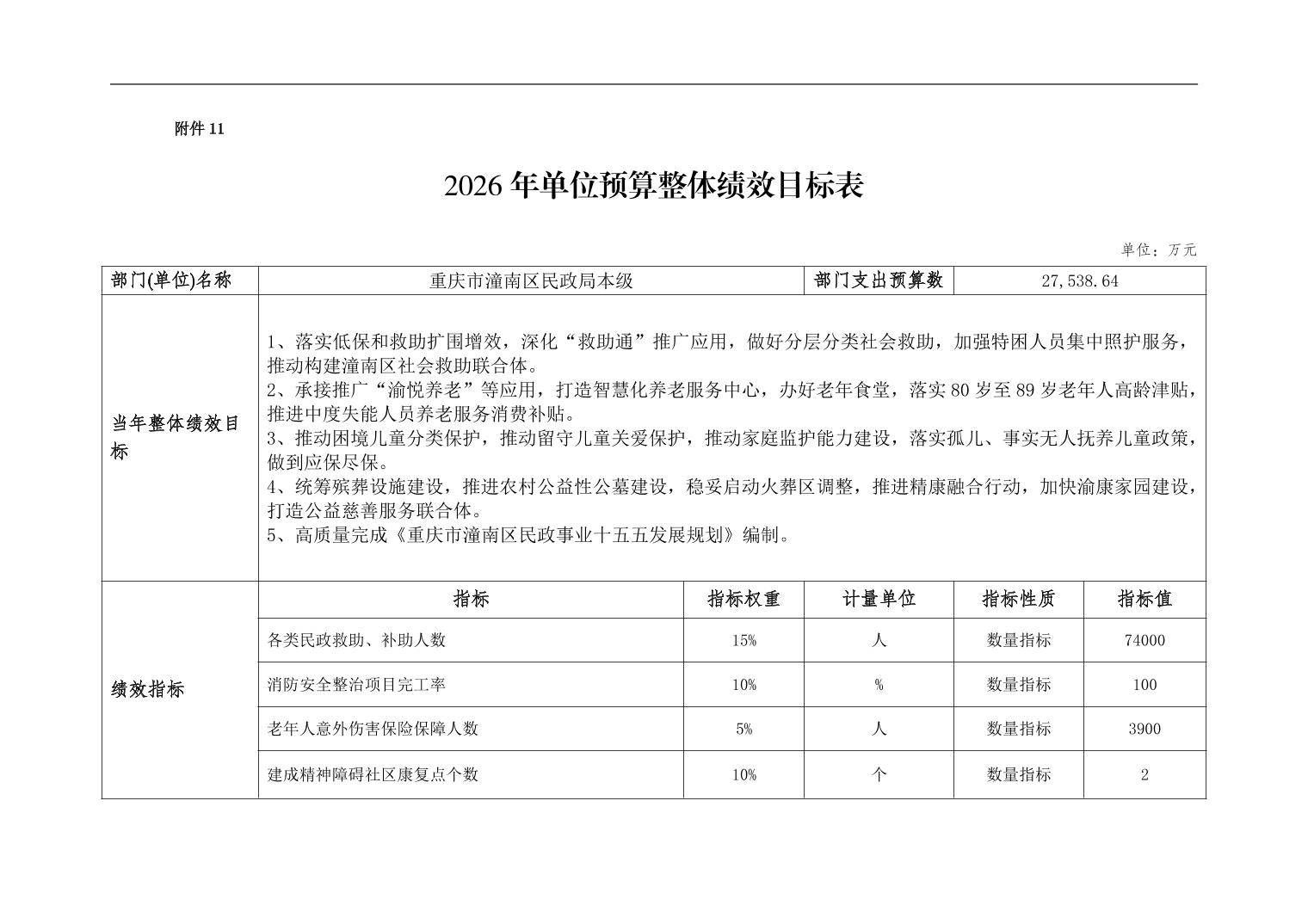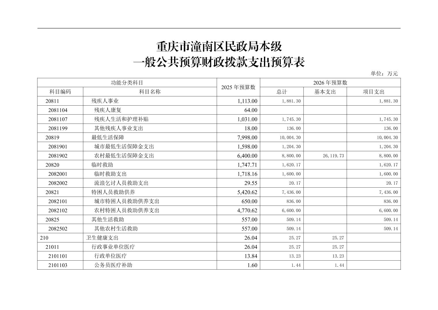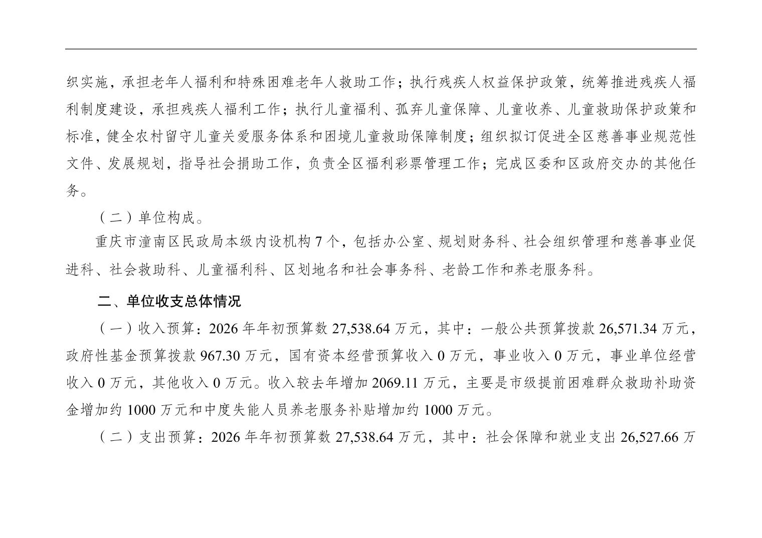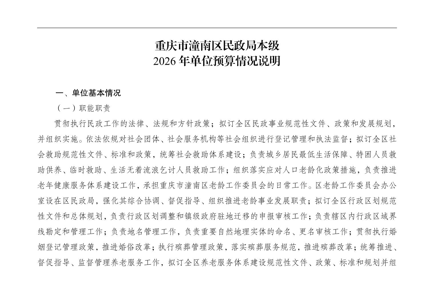 重庆市潼南区民政局本级2026年单位预算情况说明