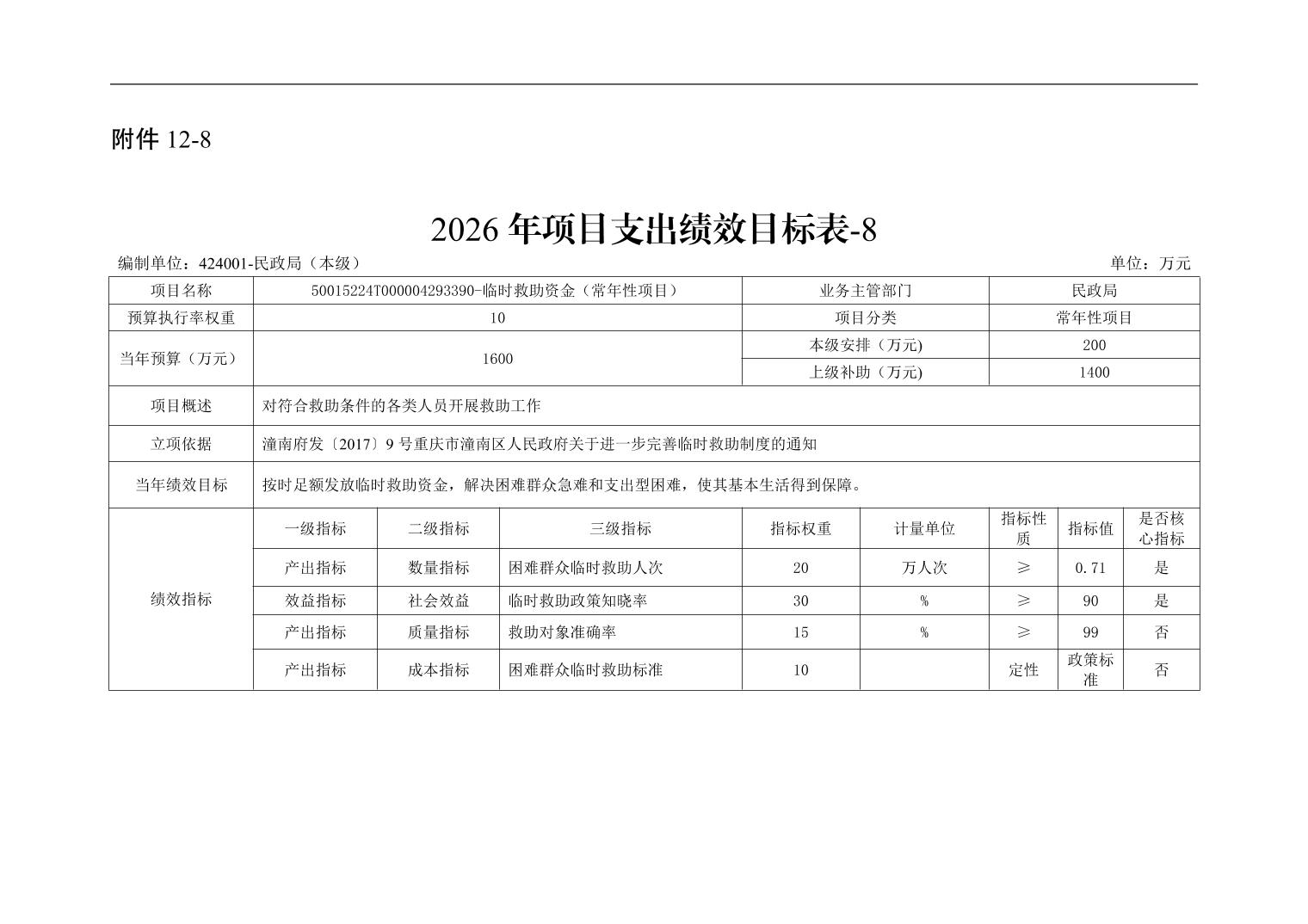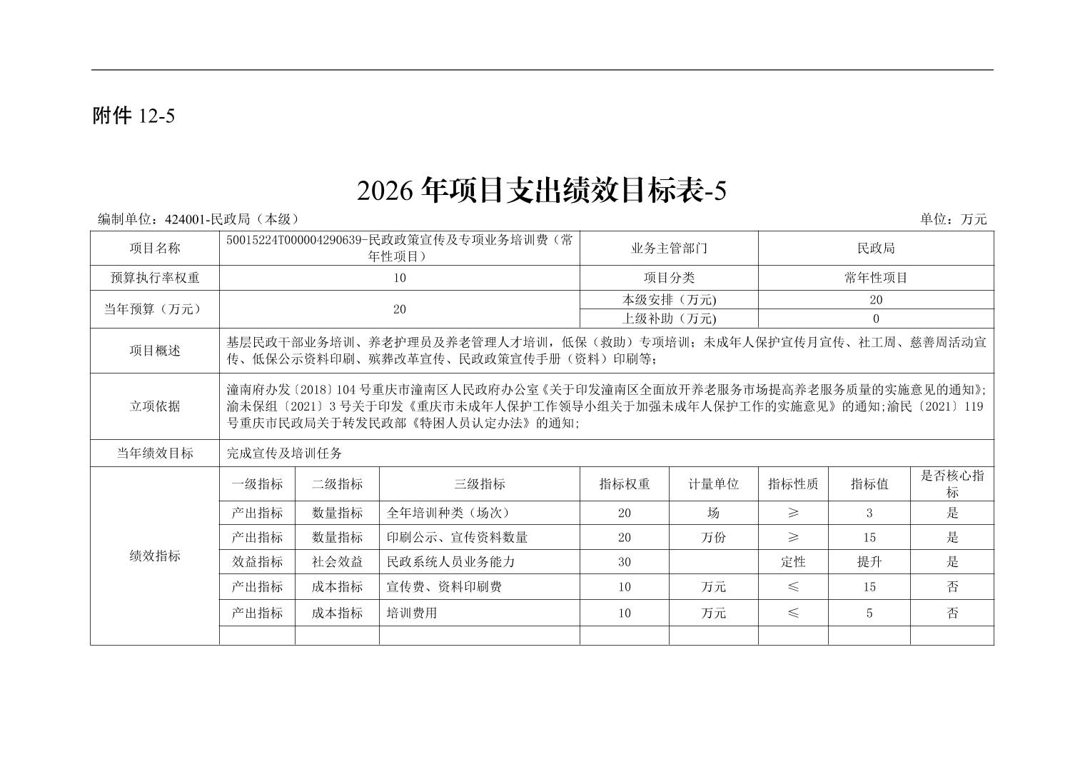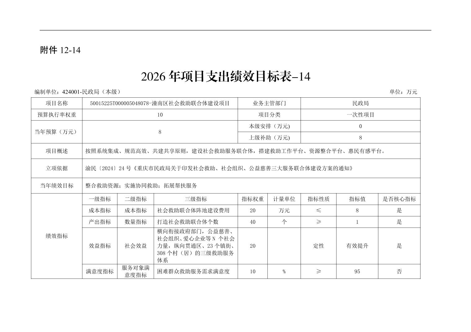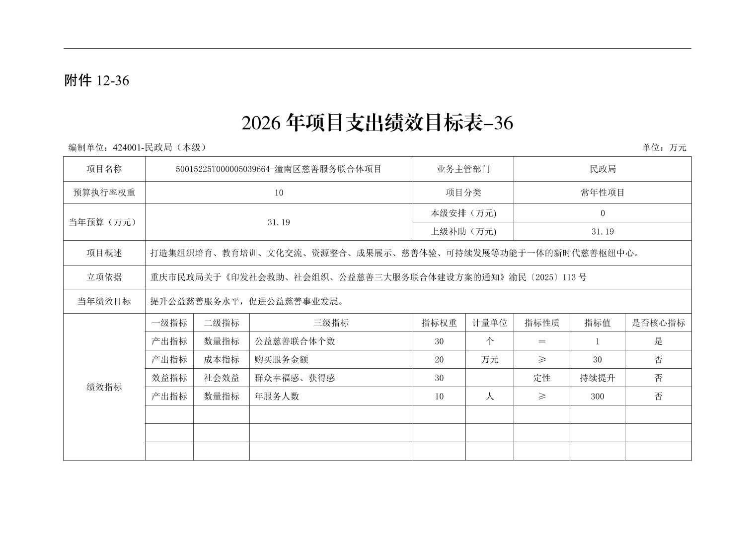 重庆市潼南区民政局本级2026年单位预算情况说明